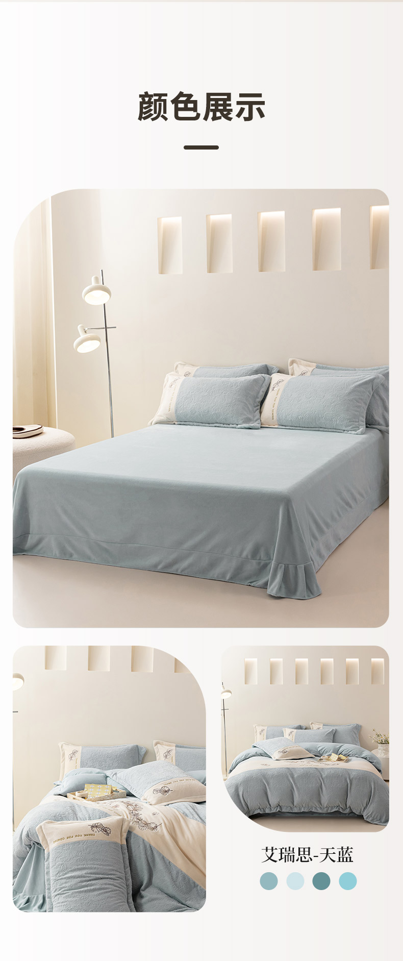 卡初 2024秋冬新款立体雕花牛奶绒四件套-艾瑞斯系列 艾瑞思-天蓝