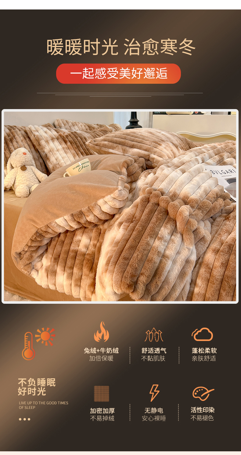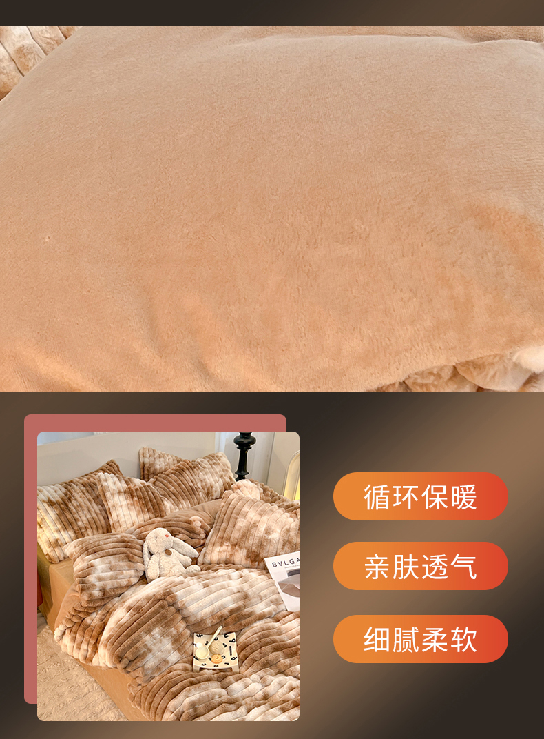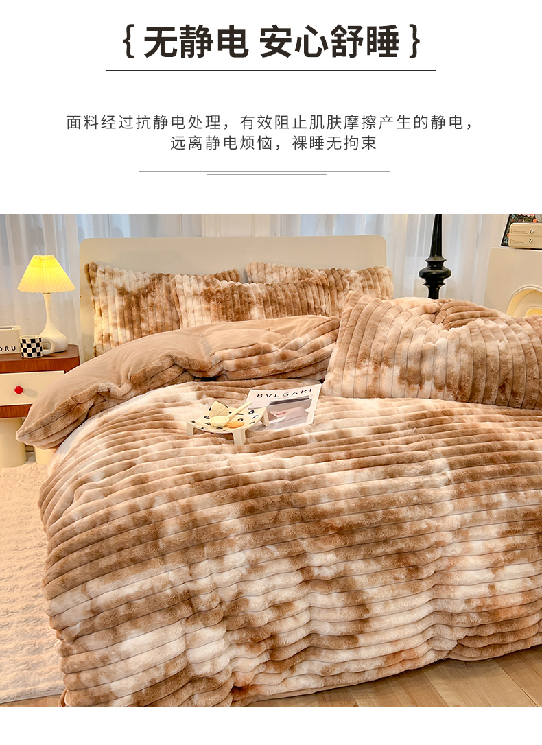 商品名称:慕晨 2023新款兔绒牛奶绒晕彩保暖四件套 兔绒-晕彩棕
