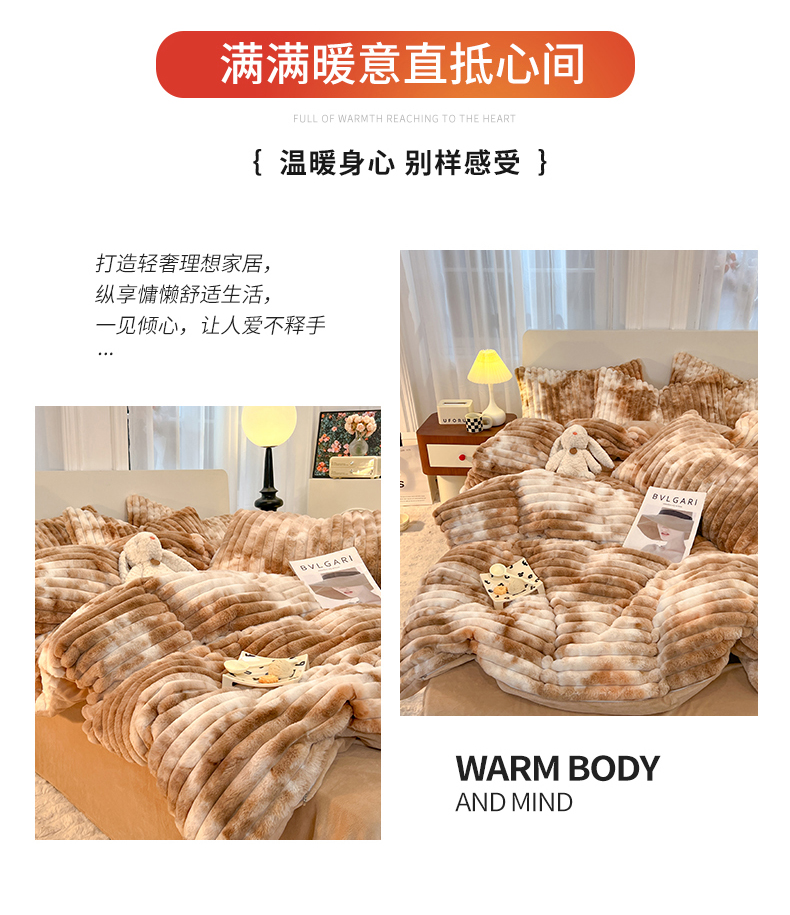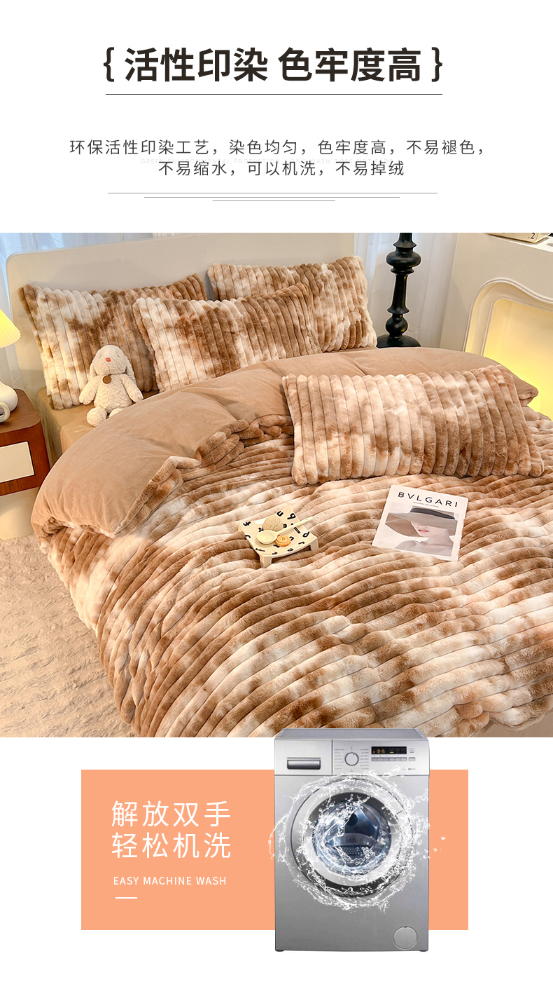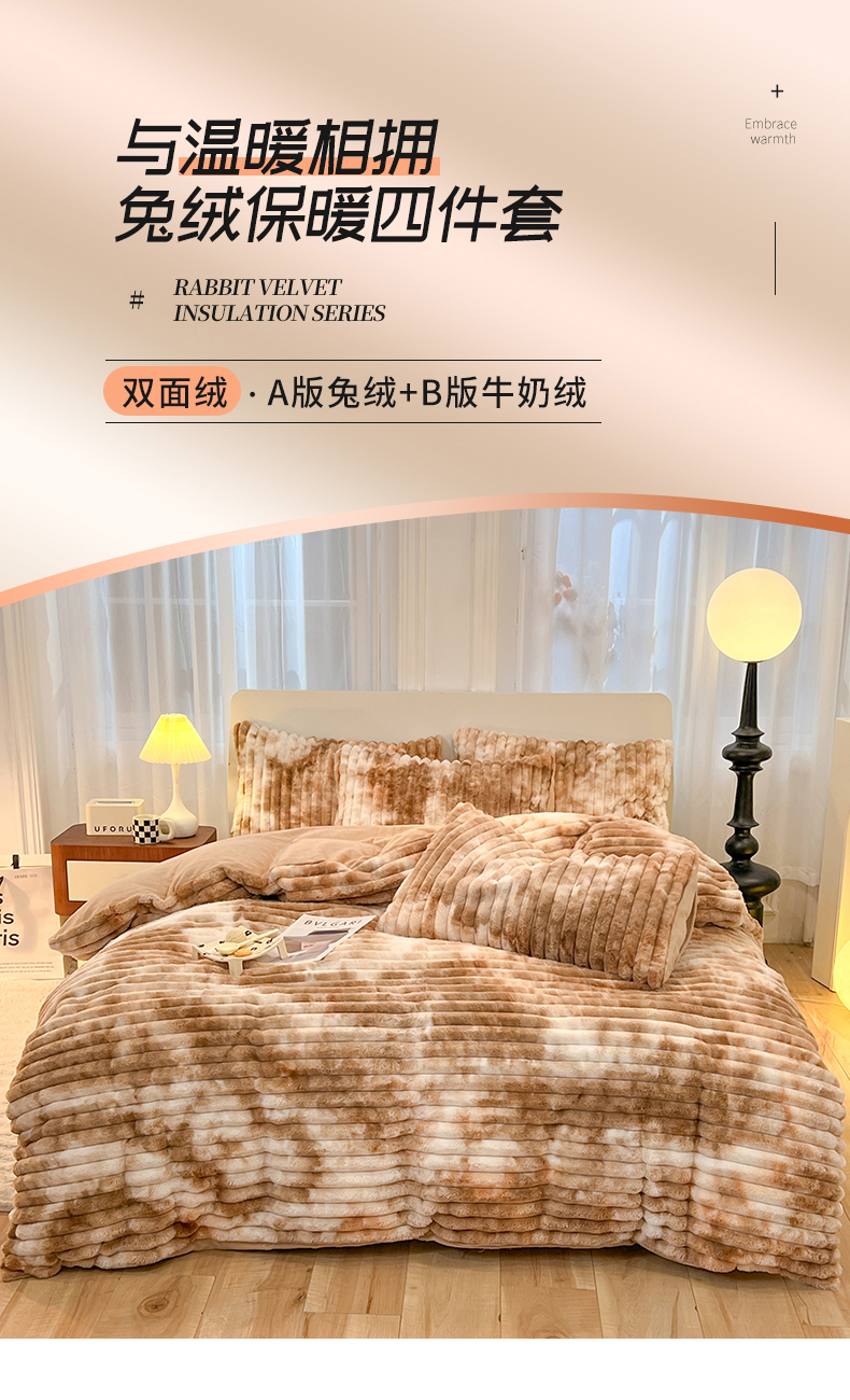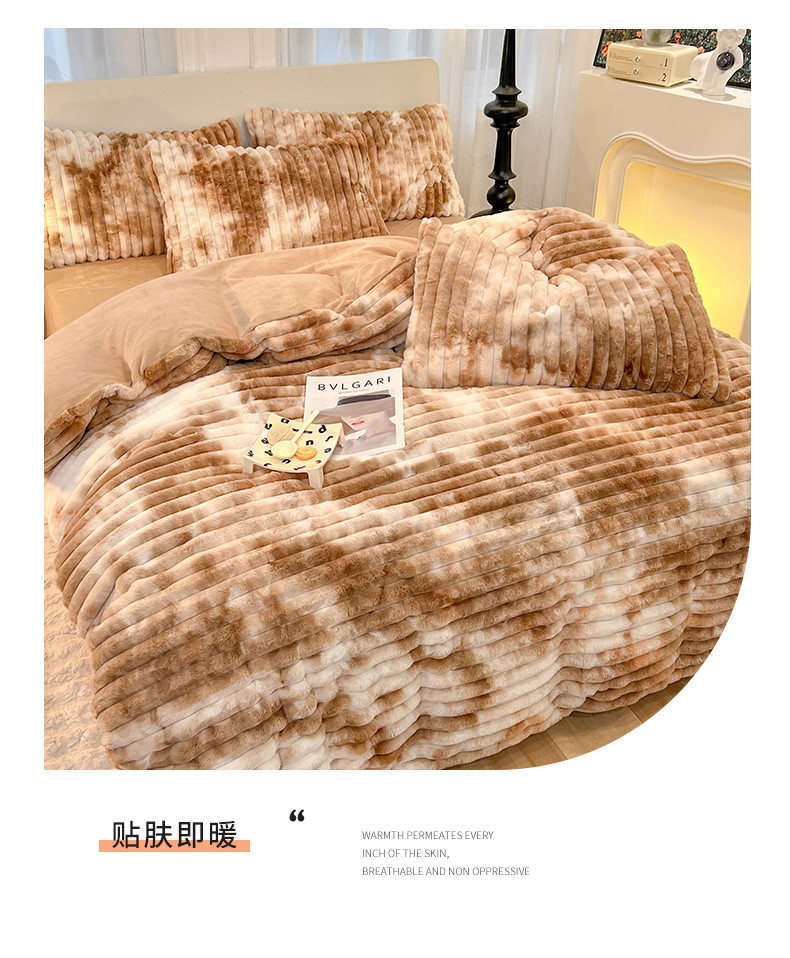 商品名称:慕晨 2023新款兔绒牛奶绒晕彩保暖四件套 兔绒-晕彩棕