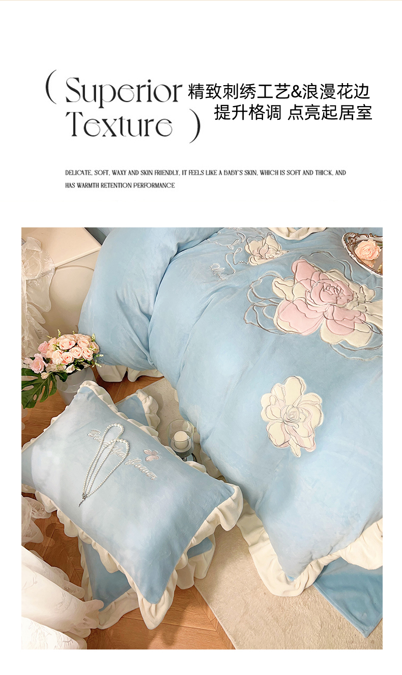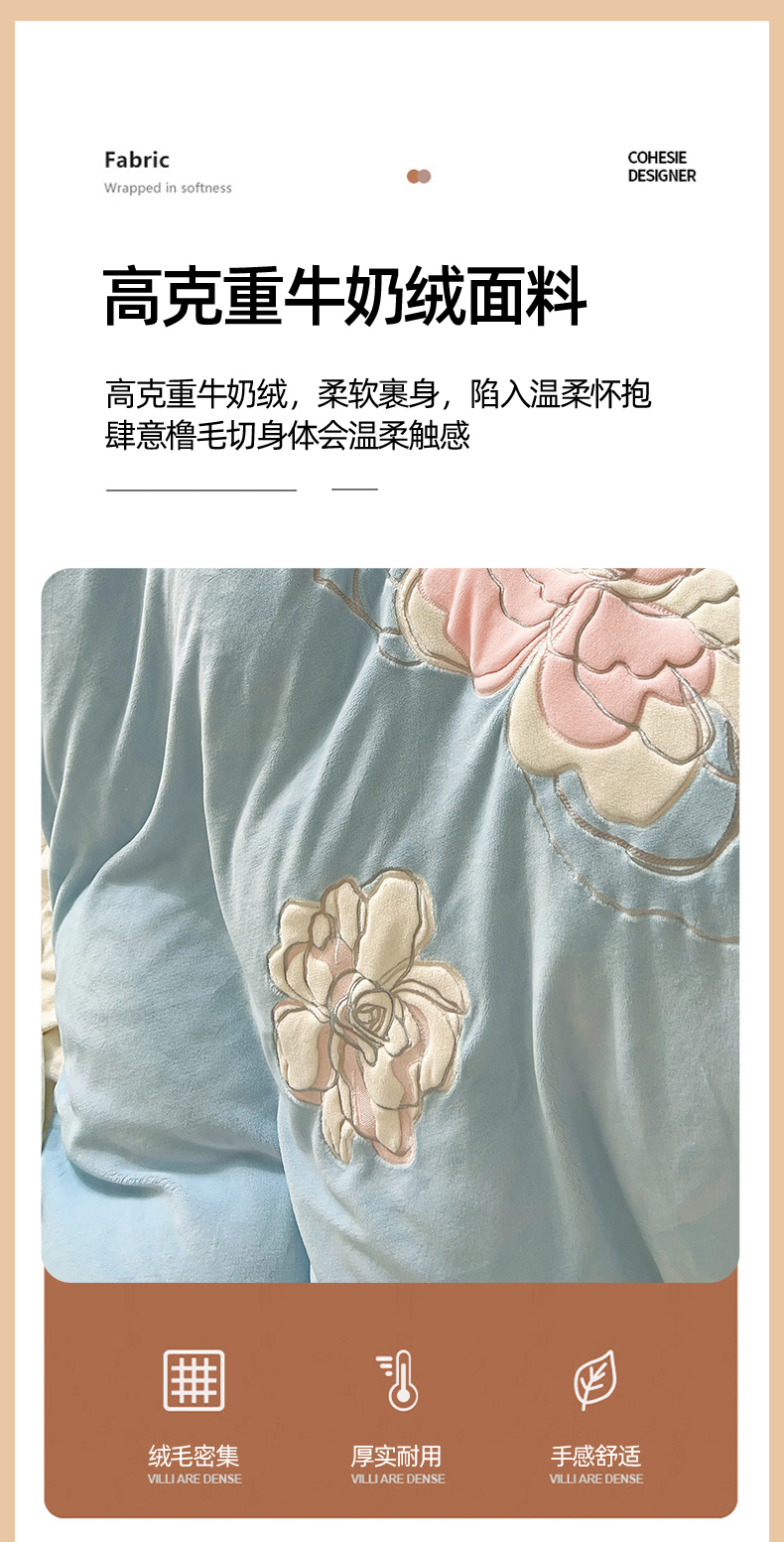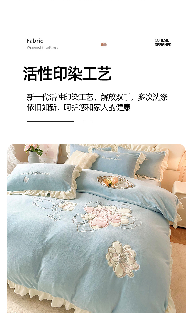 云锦家居 2023秋冬新品花梦--230克全消光牛奶绒四件套 花梦-梦幻兰