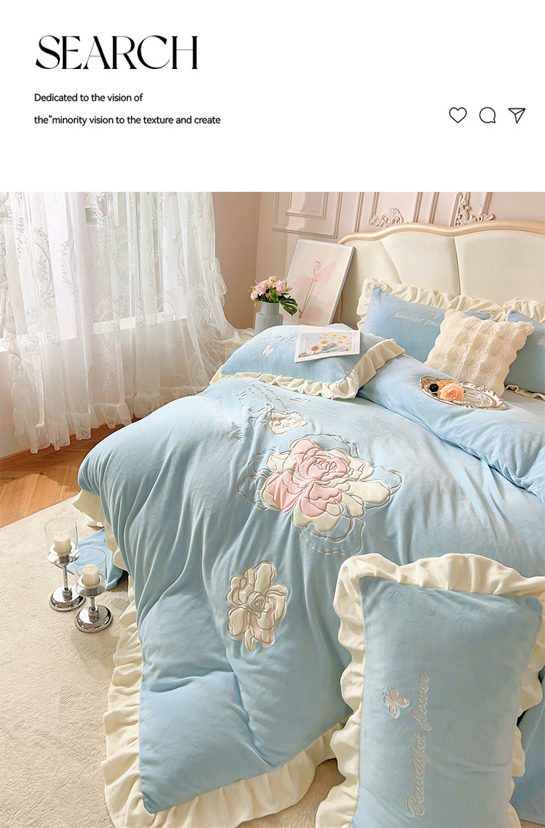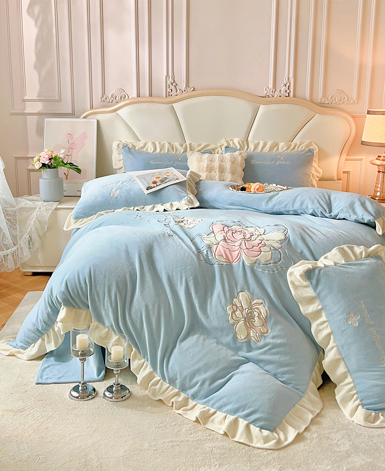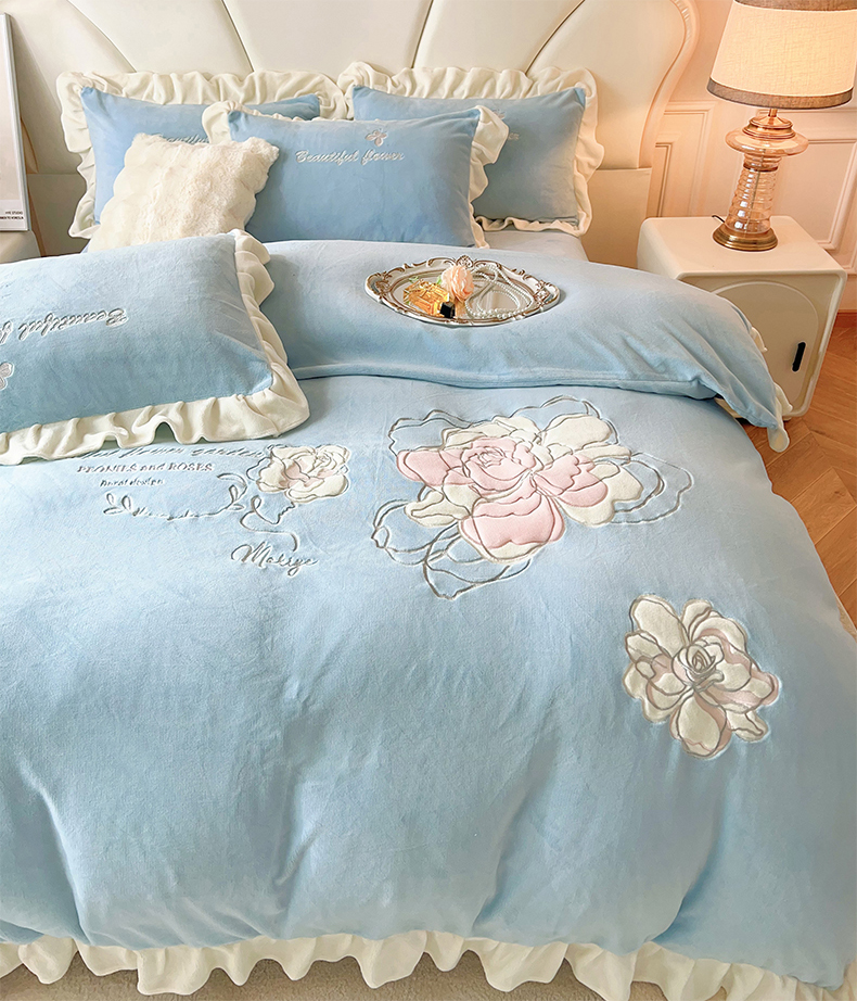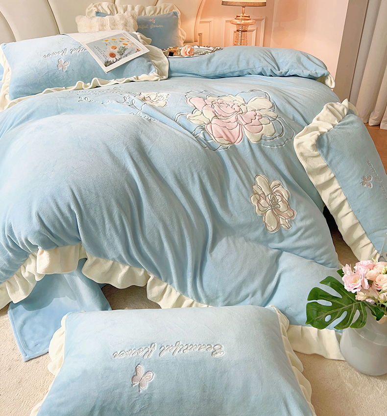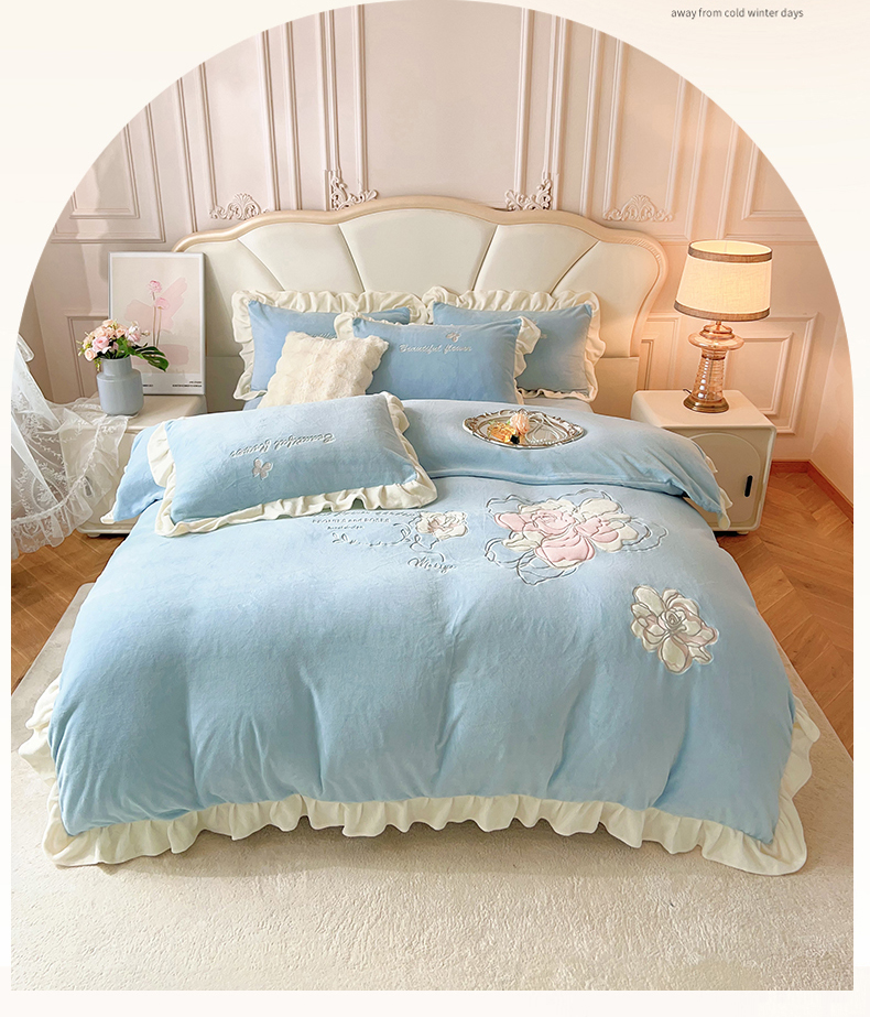 云锦家居 2023秋冬新品花梦--230克全消光牛奶绒四件套 花梦-梦幻兰