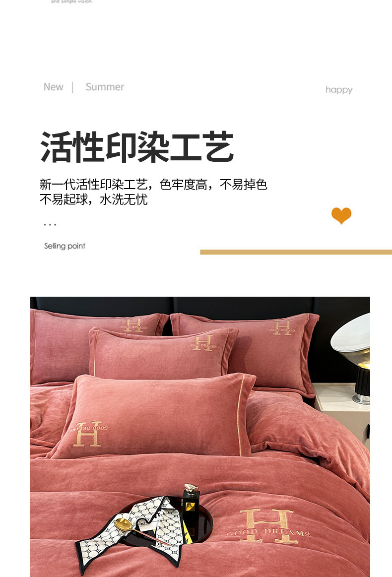 商品名称:宇彬家纺 2023新款母婴级牛奶婴儿绒刺绣四件套枕套宽边一字绣-H款 H-豆沙