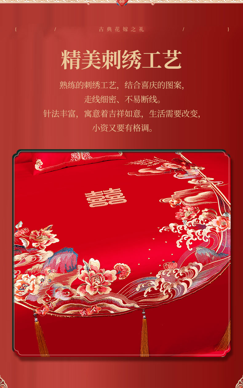 (总)皇潮婚庆馆 2025新款婚庆牛奶绒刺绣床裙四件套系列,吉祥如意,龙华凤贵,喜嫁,喜事连连,心心相印,新婚快乐