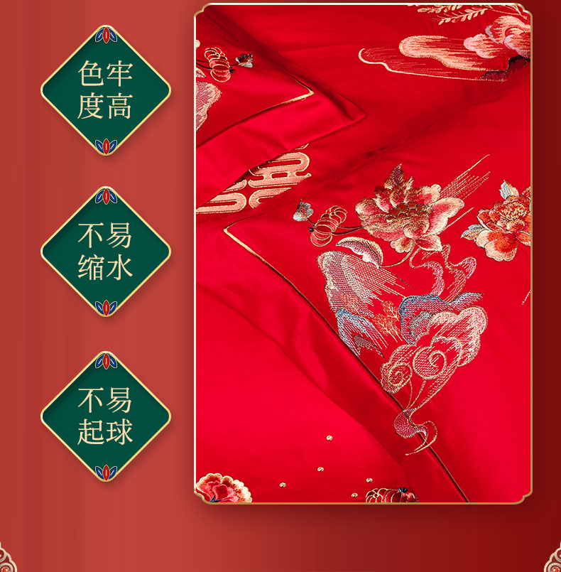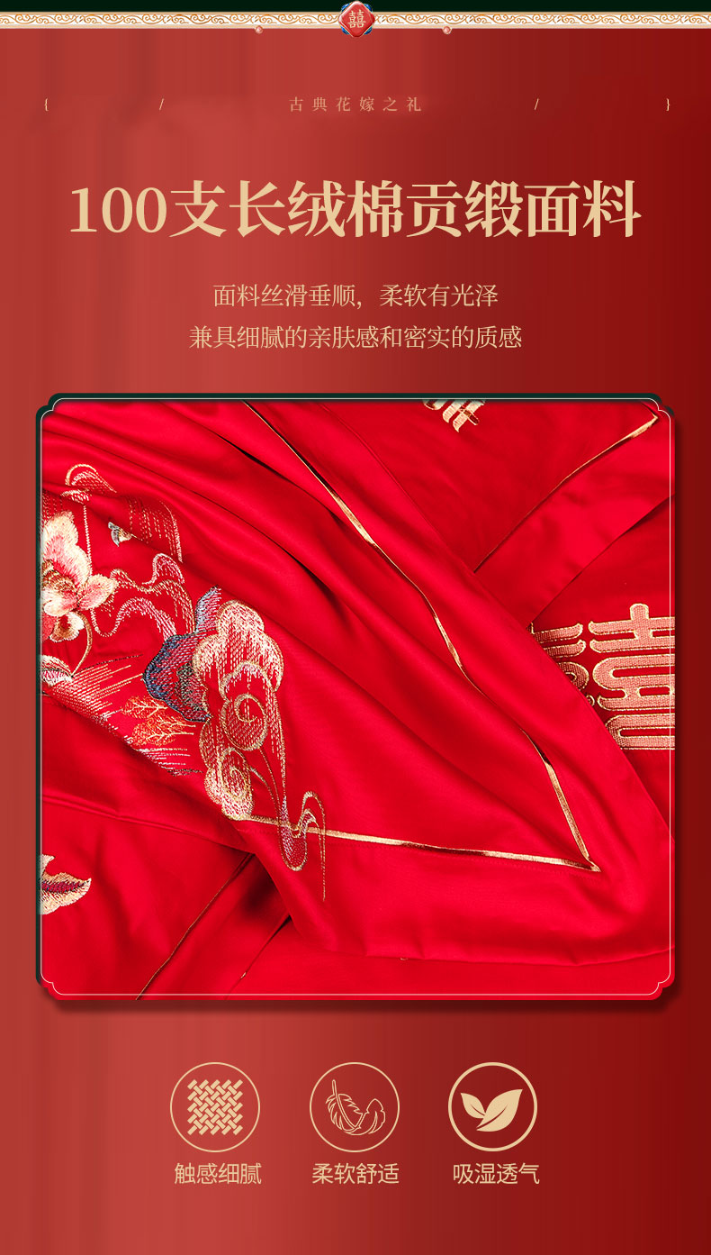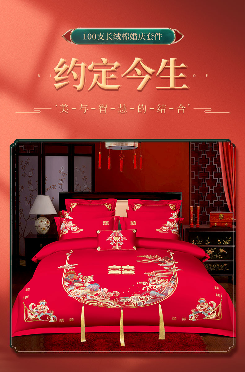 (总)皇潮婚庆馆 2025新款A类布款全棉刺绣婚庆四件套系列,花辰喜盈,百子送喜,龙悦凤鸣,喜事连连,喜迎鸿运