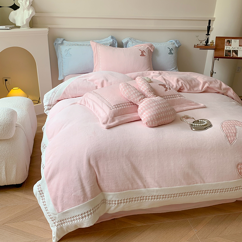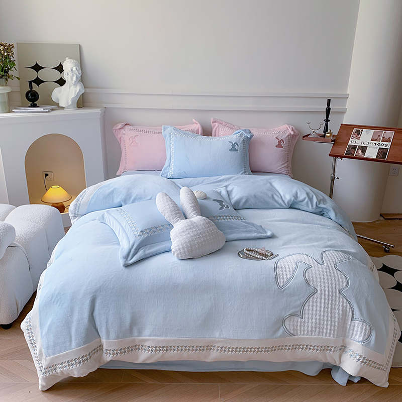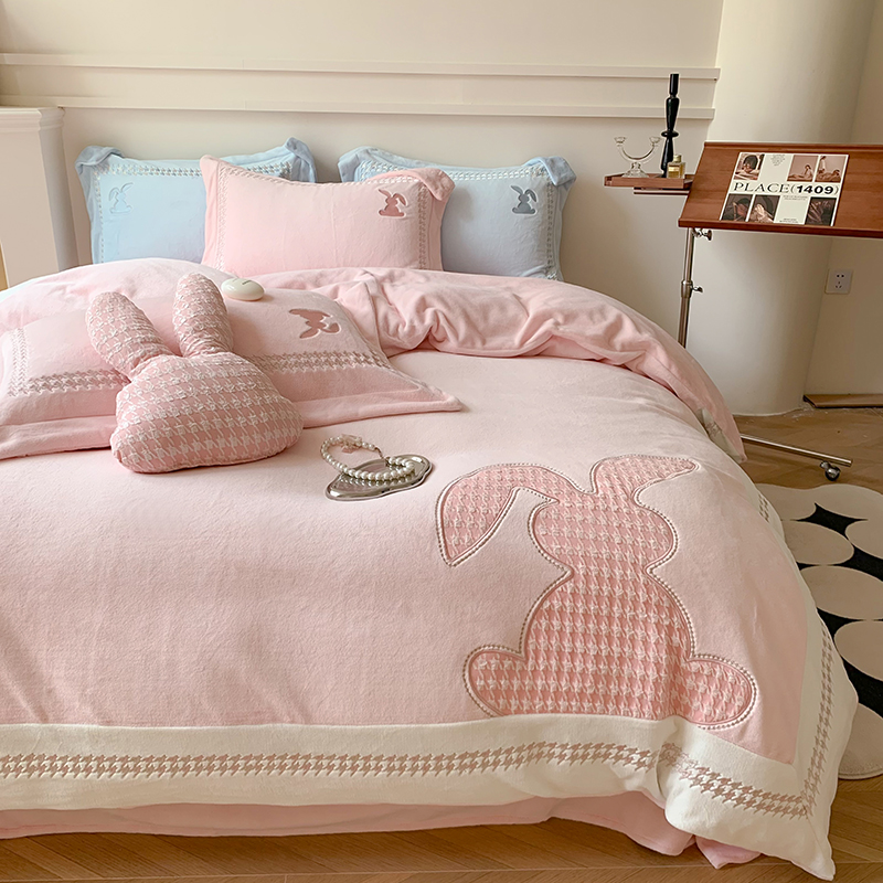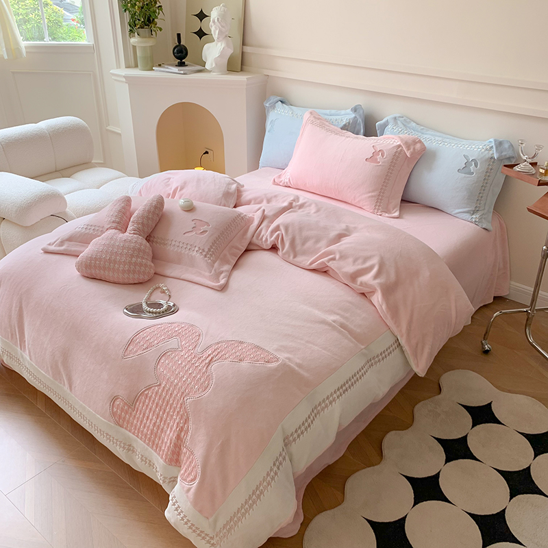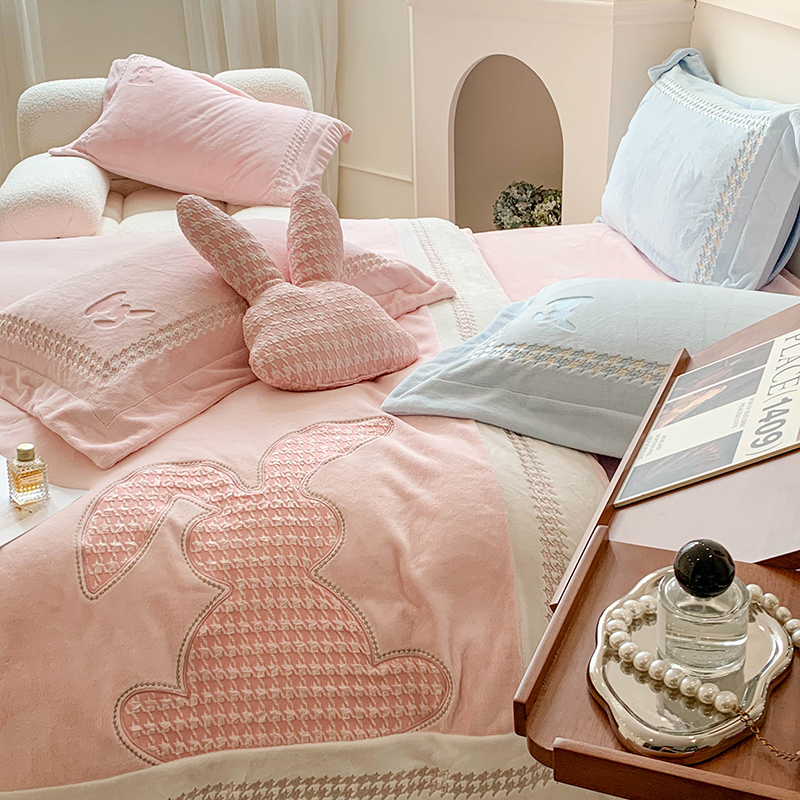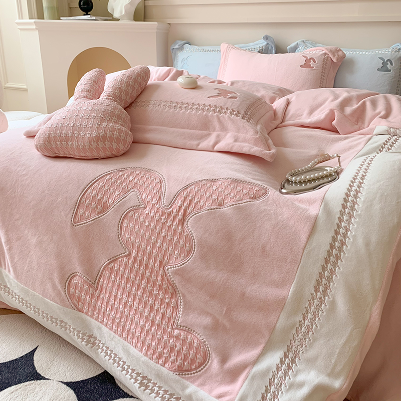 (总)曼布缇 2025新款牛奶绒贴布绣花款四件套-艾娜兔绒(风格一)