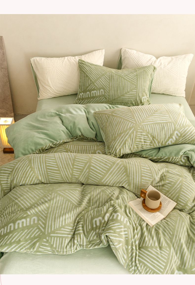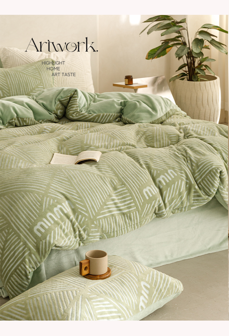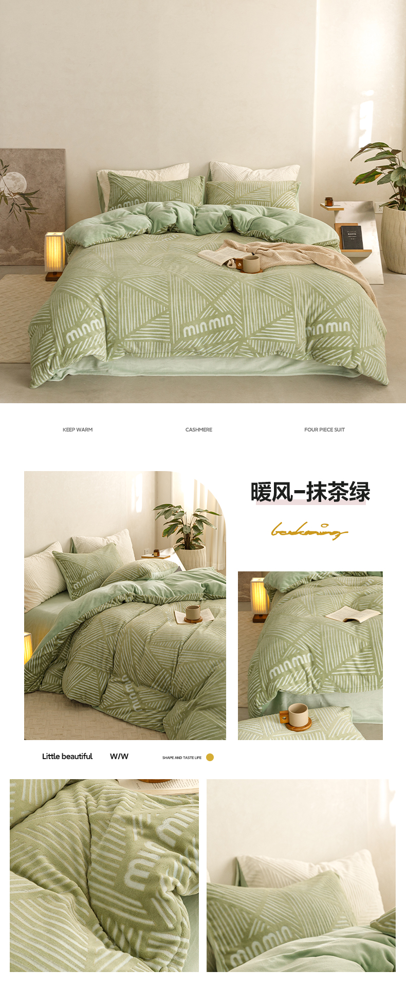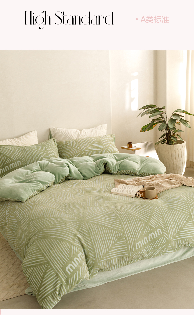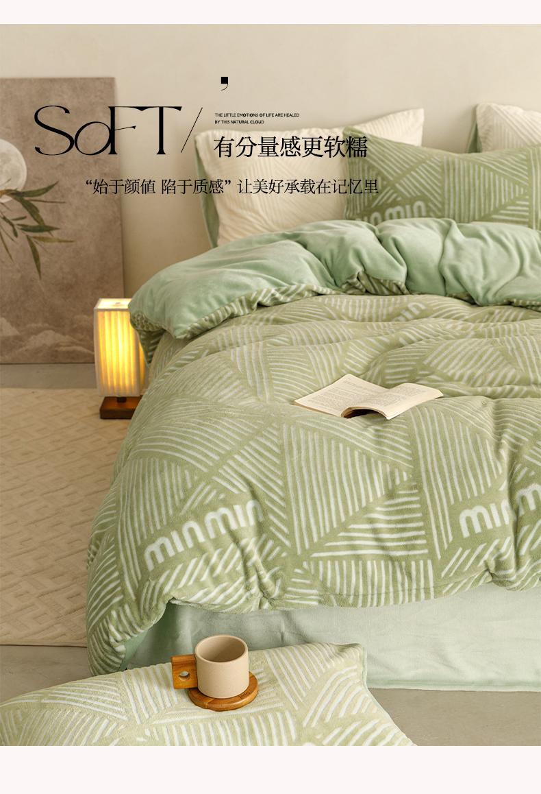商品名称:卡巴伦家纺 2023新款暖风系列A类牛奶绒雕花款四件套 暖风-抹茶绿