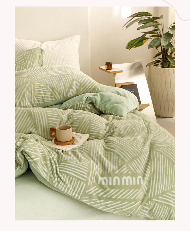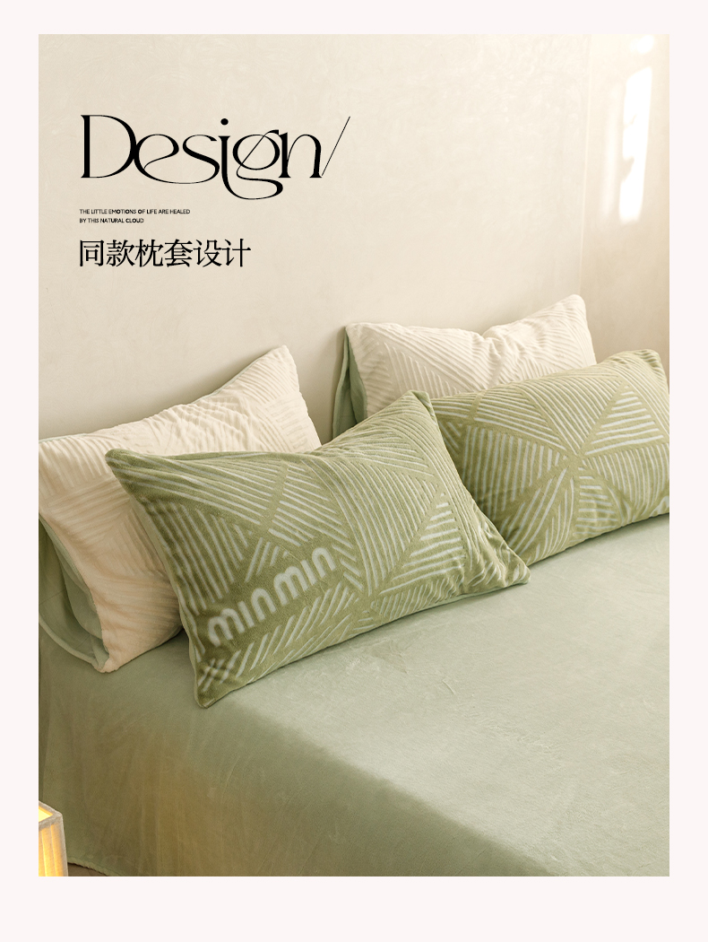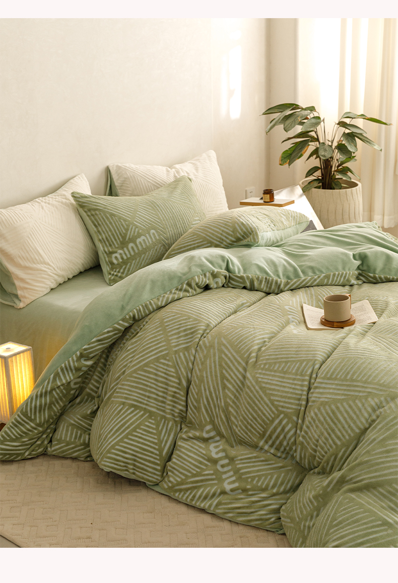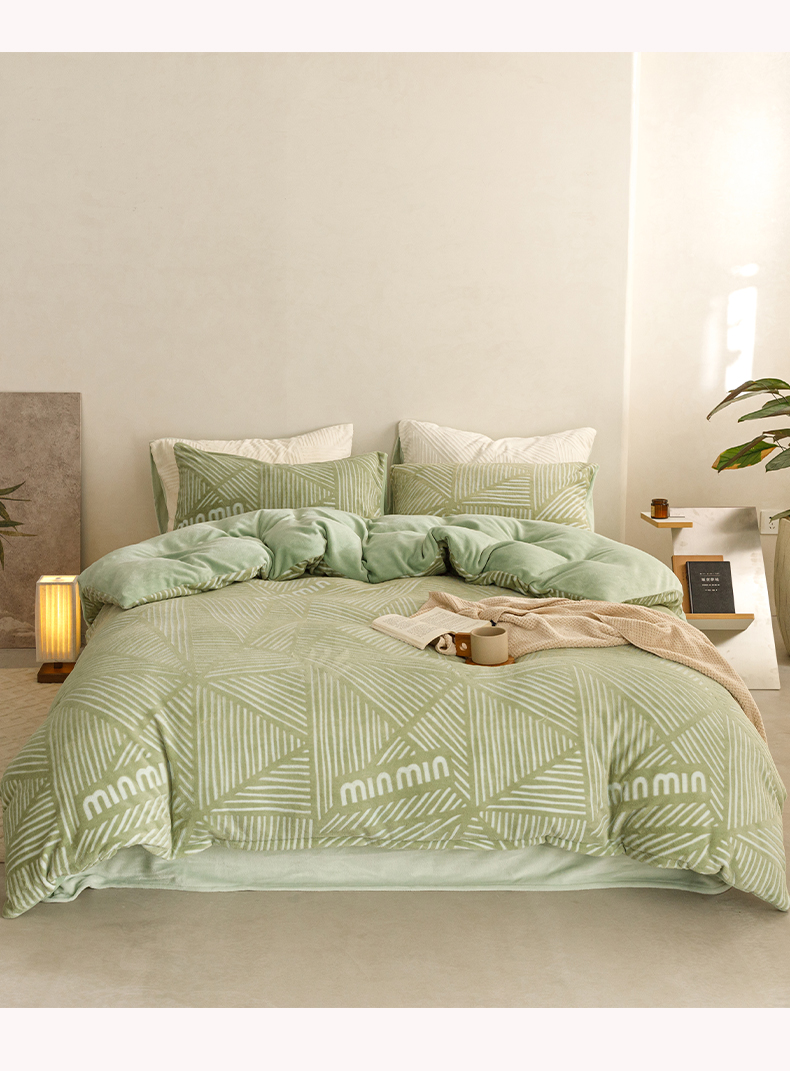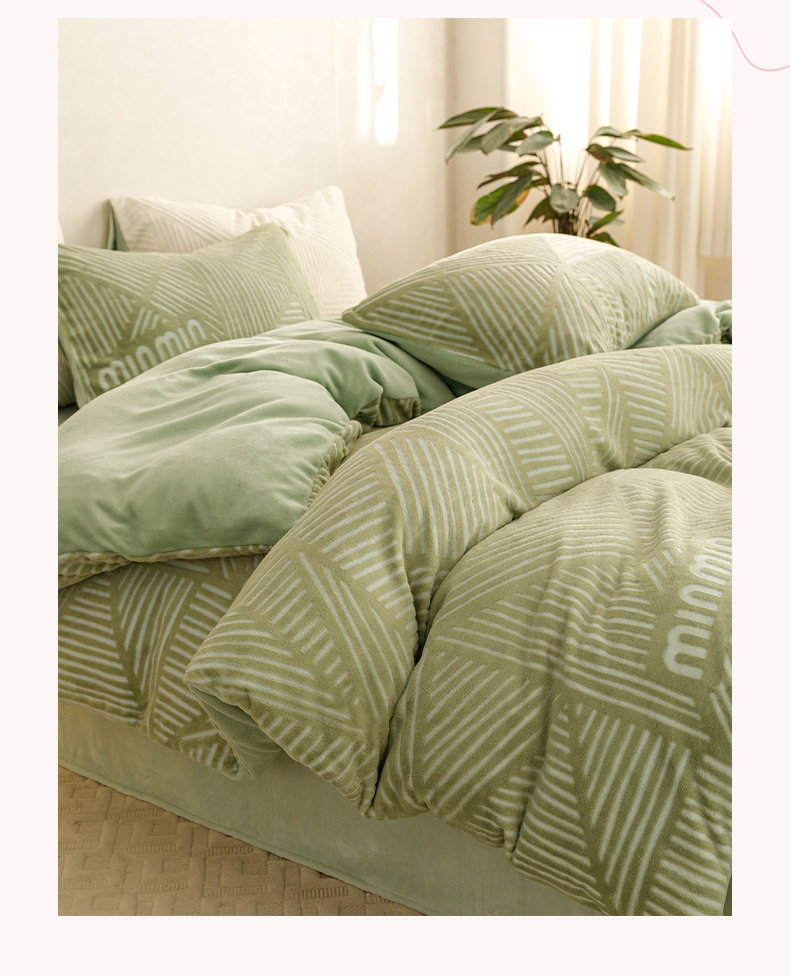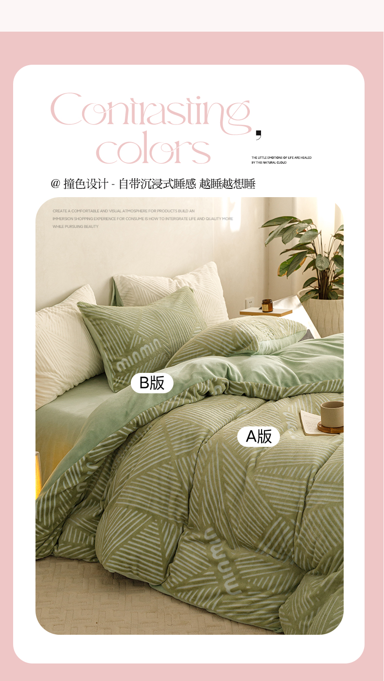 商品名称:卡巴伦家纺 2023新款暖风系列A类牛奶绒雕花款四件套 暖风-抹茶绿