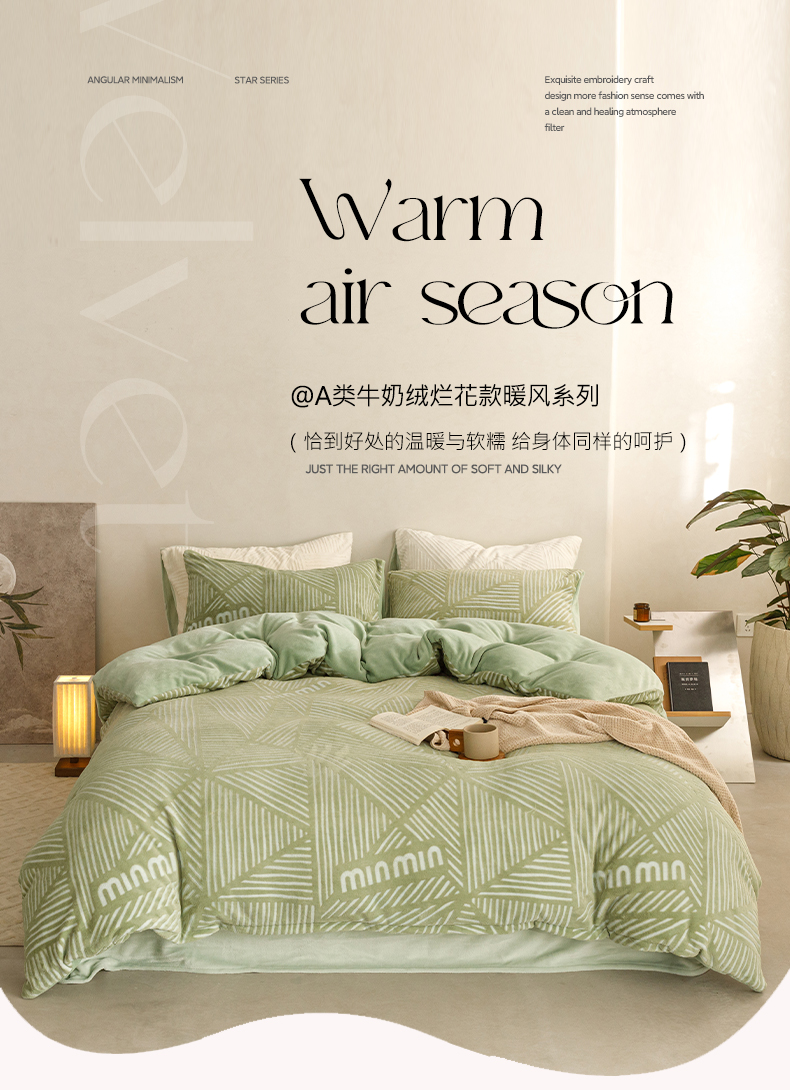 卡巴伦家纺 2023新款暖风系列A类牛奶绒雕花款四件套 暖风-抹茶绿