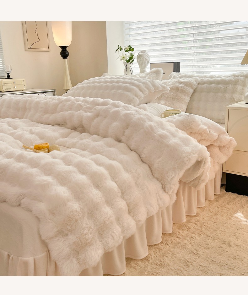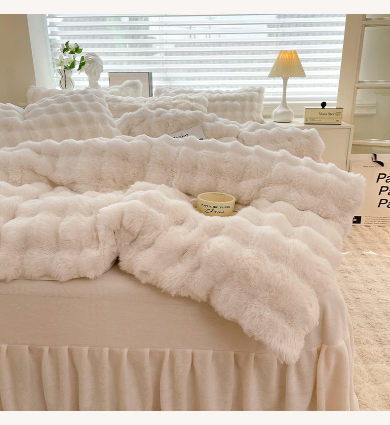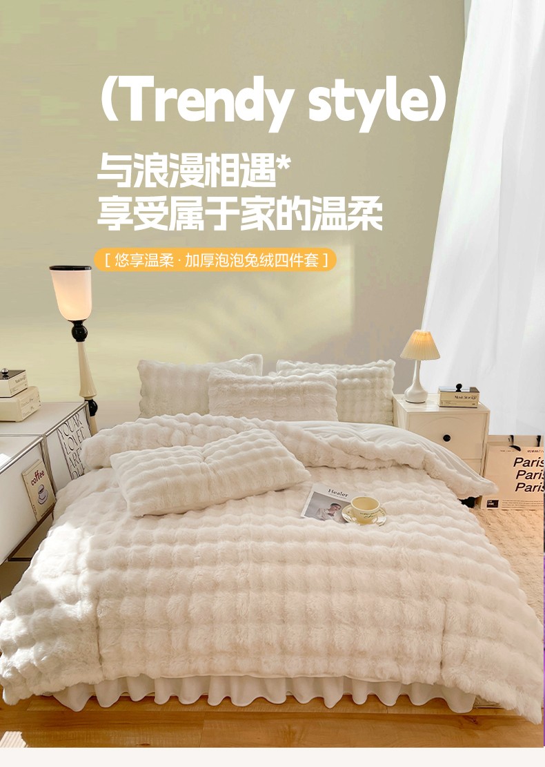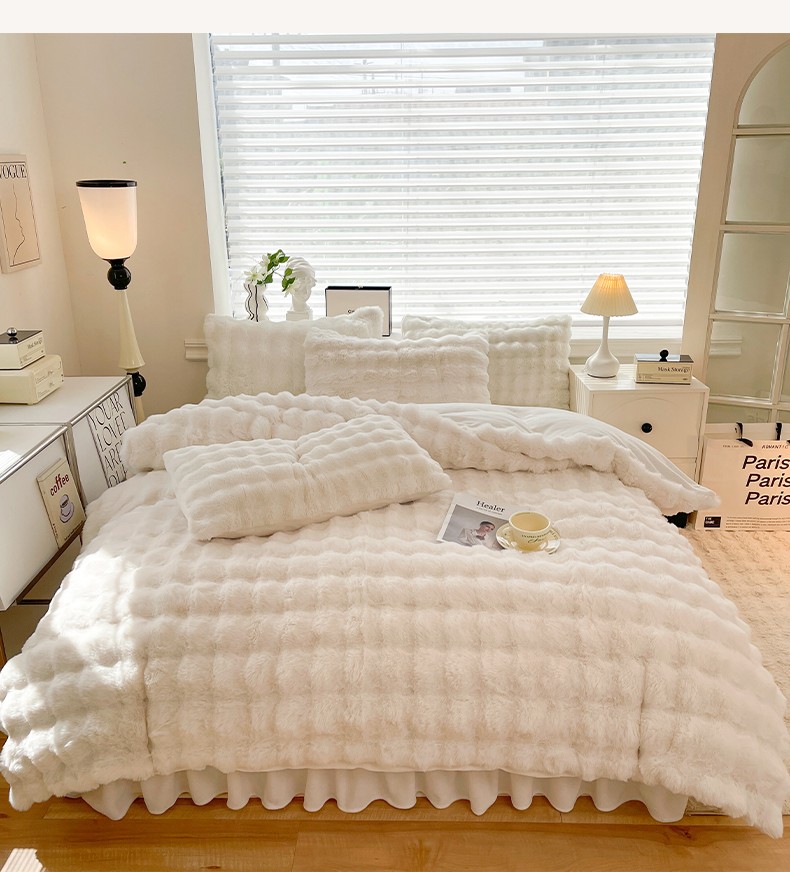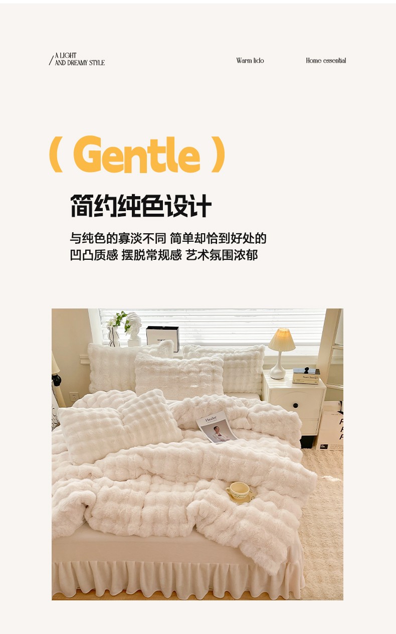 当前位置: 91家纺网 > 商品网购 > 床品套件 > 四件套 > 兔毛绒四件套 > 逸尚阁 2024新款加厚泡泡兔绒四件套 云朵白