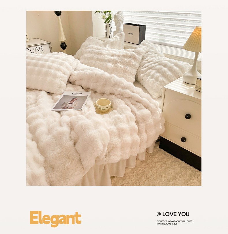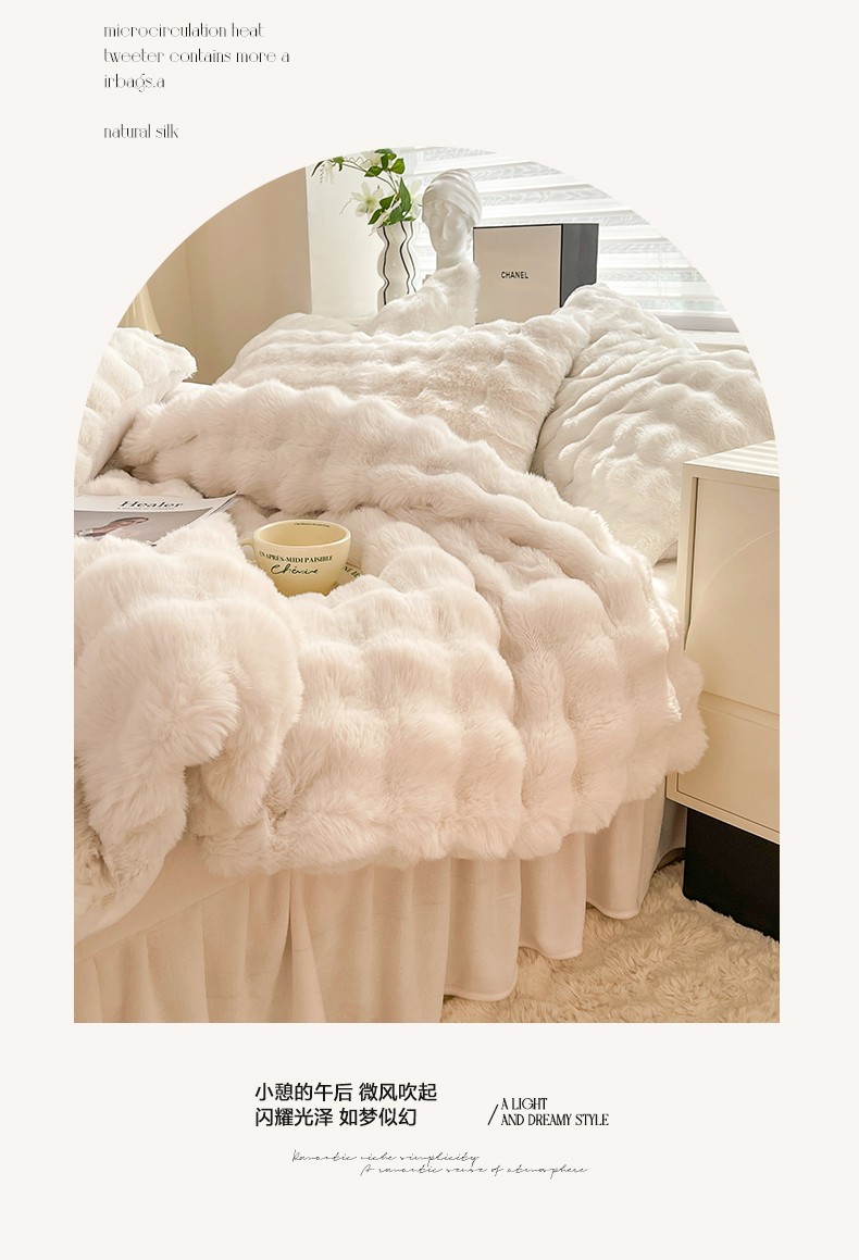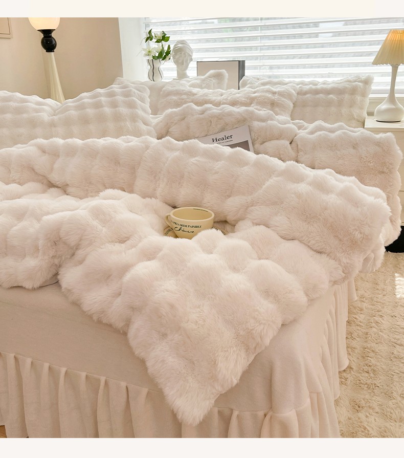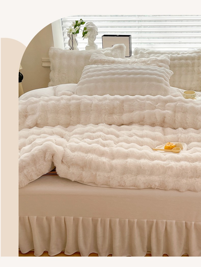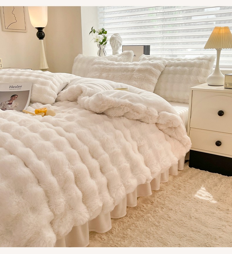 当前位置: 91家纺网 > 商品网购 > 床品套件 > 四件套 > 兔毛绒四件套 > 逸尚阁 2024新款加厚泡泡兔绒四件套 云朵白