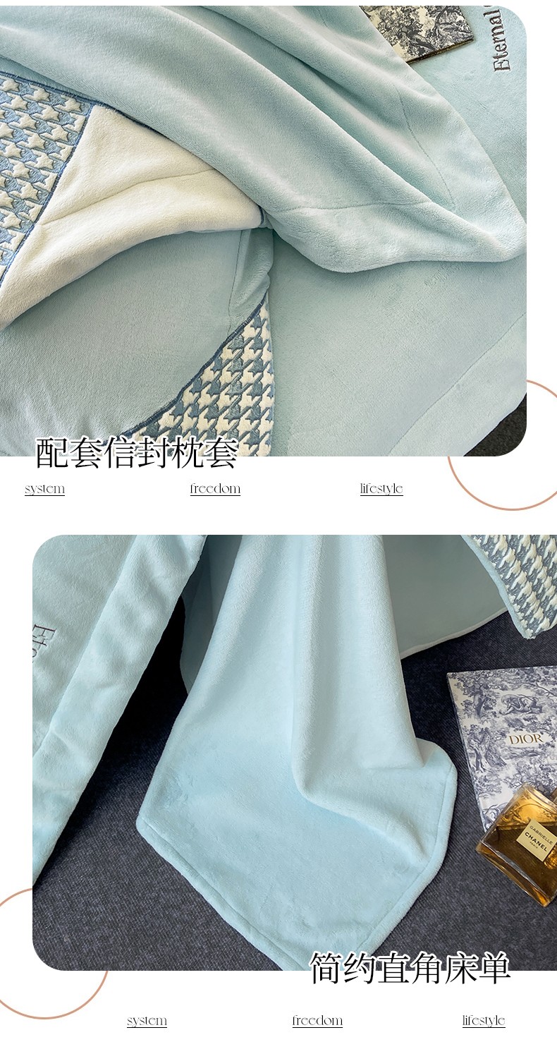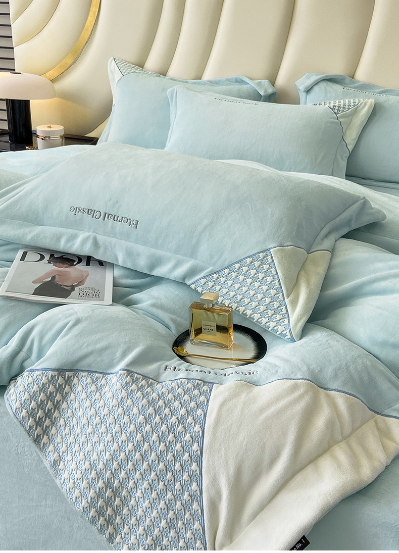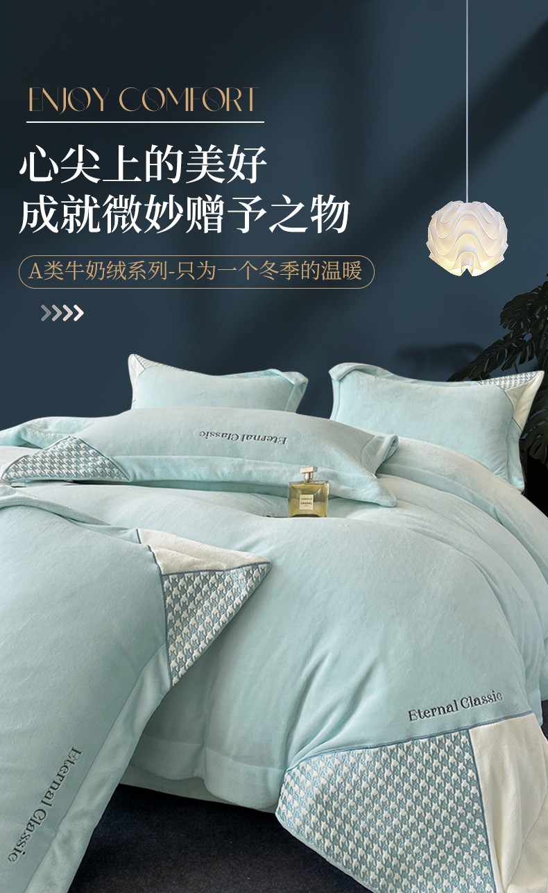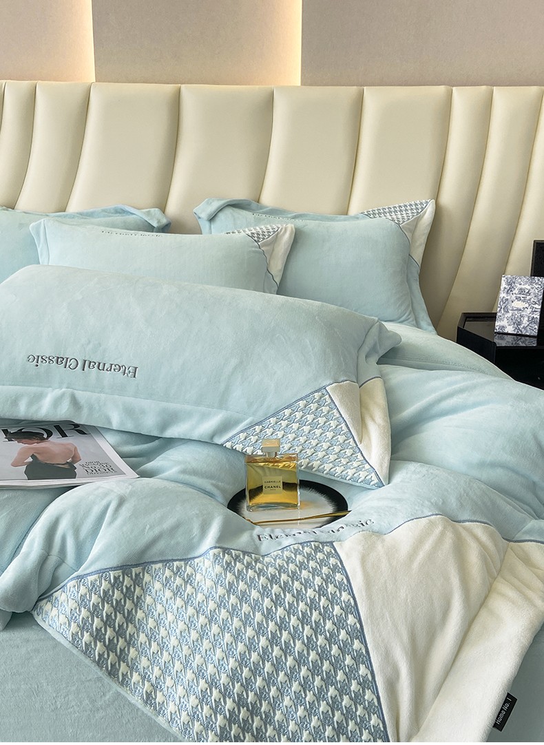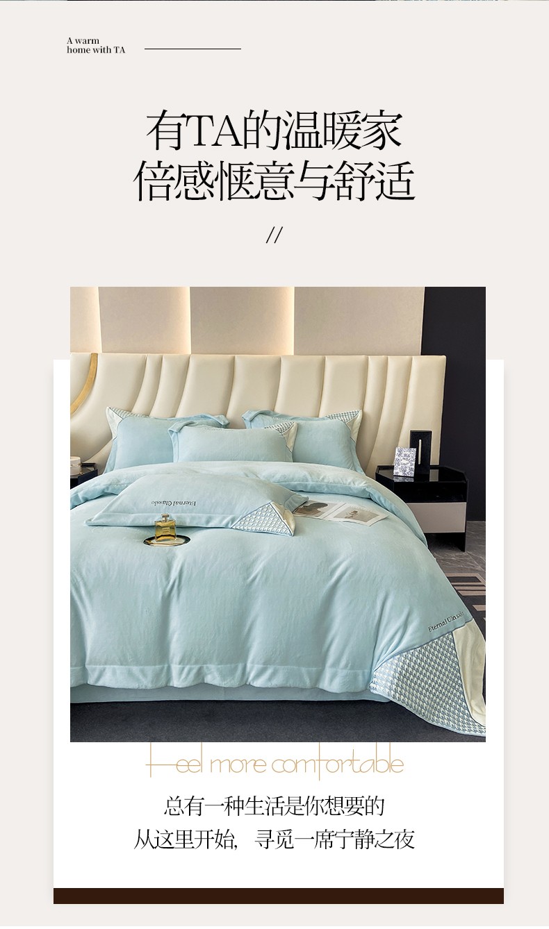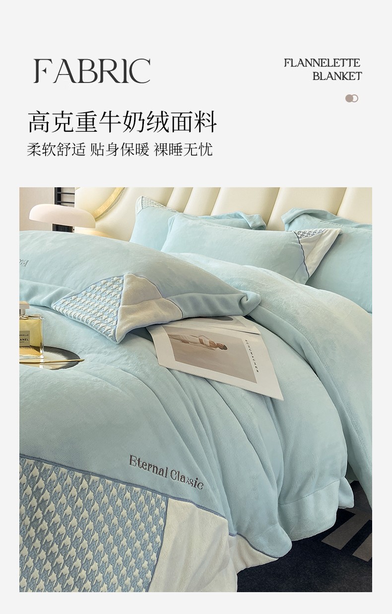 商品名称:家居1号 2024新款高克重牛奶绒四件套-露西系列 露西-星空蓝