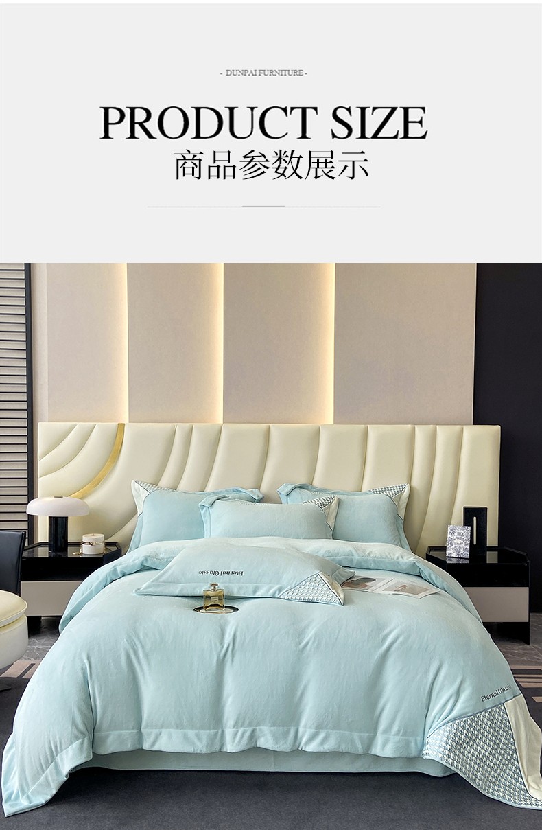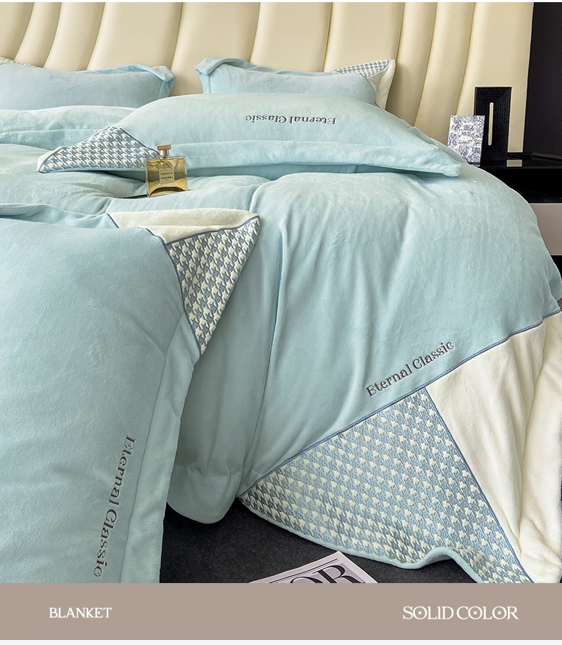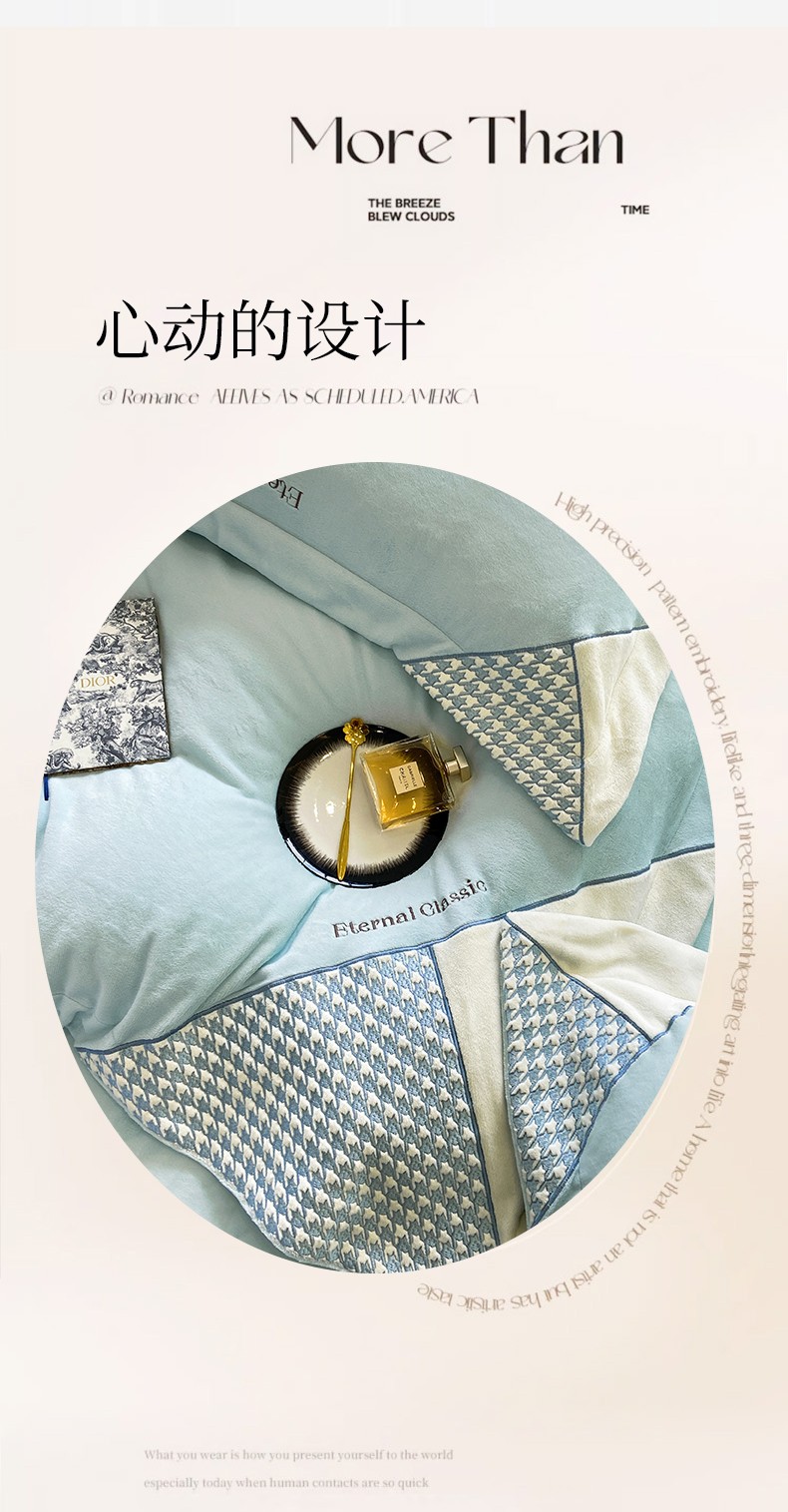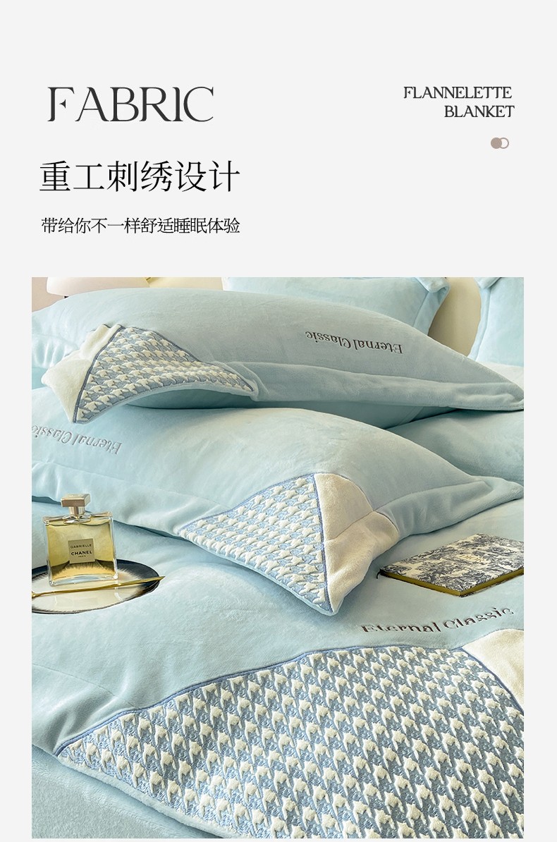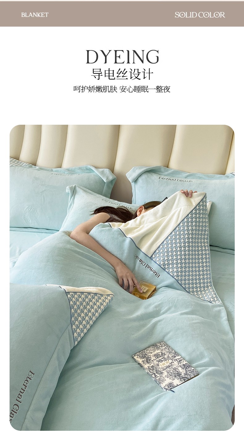 商品名称:家居1号 2024新款高克重牛奶绒四件套-露西系列 露西-星空蓝