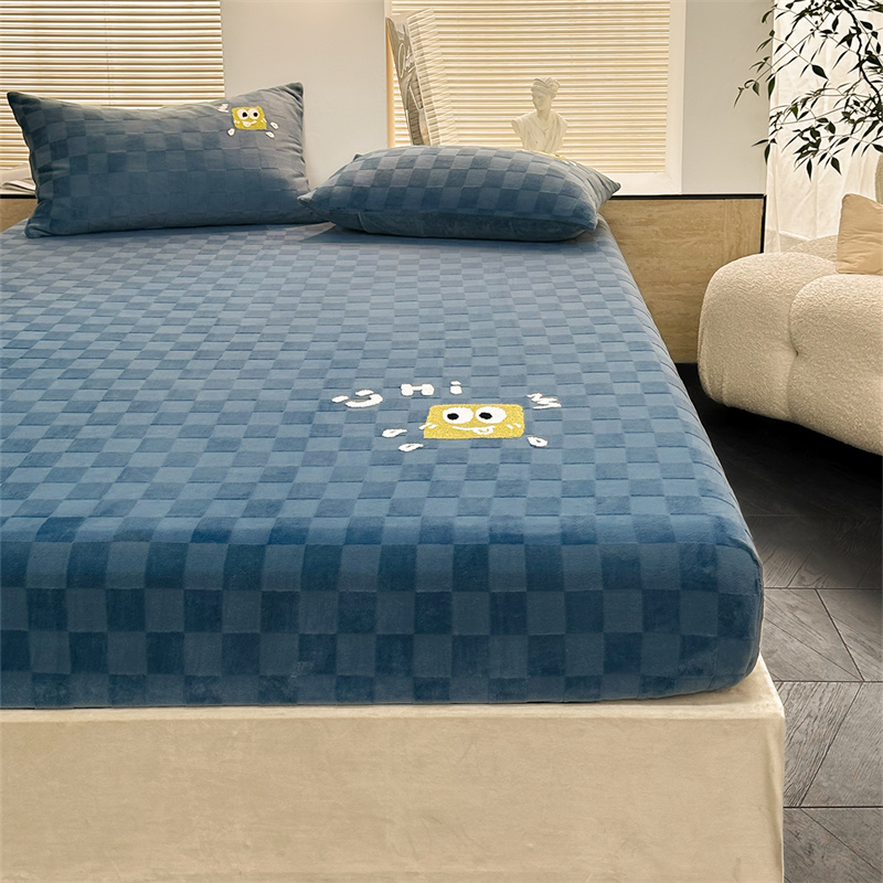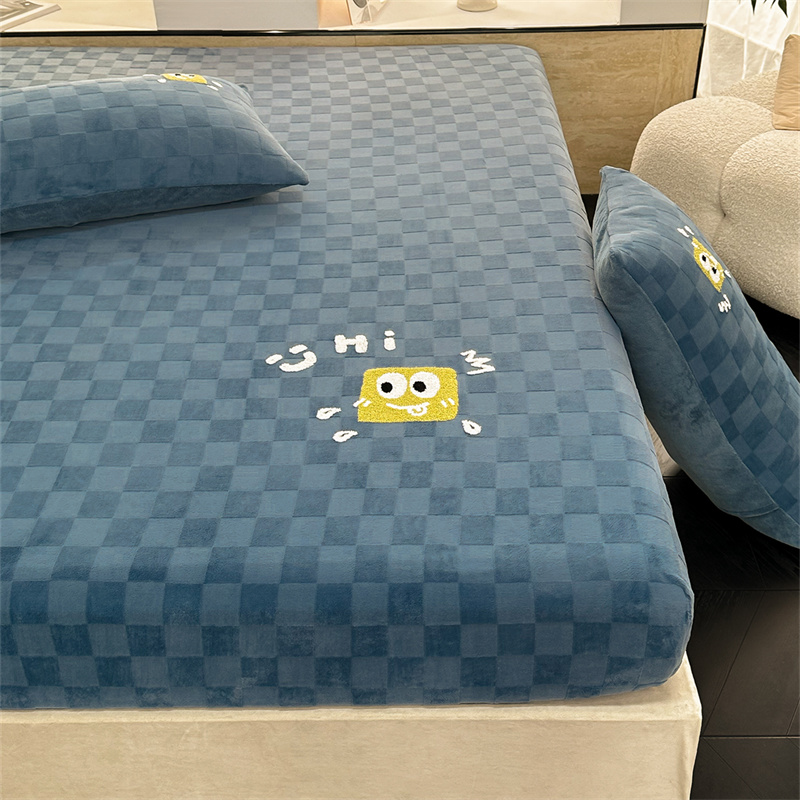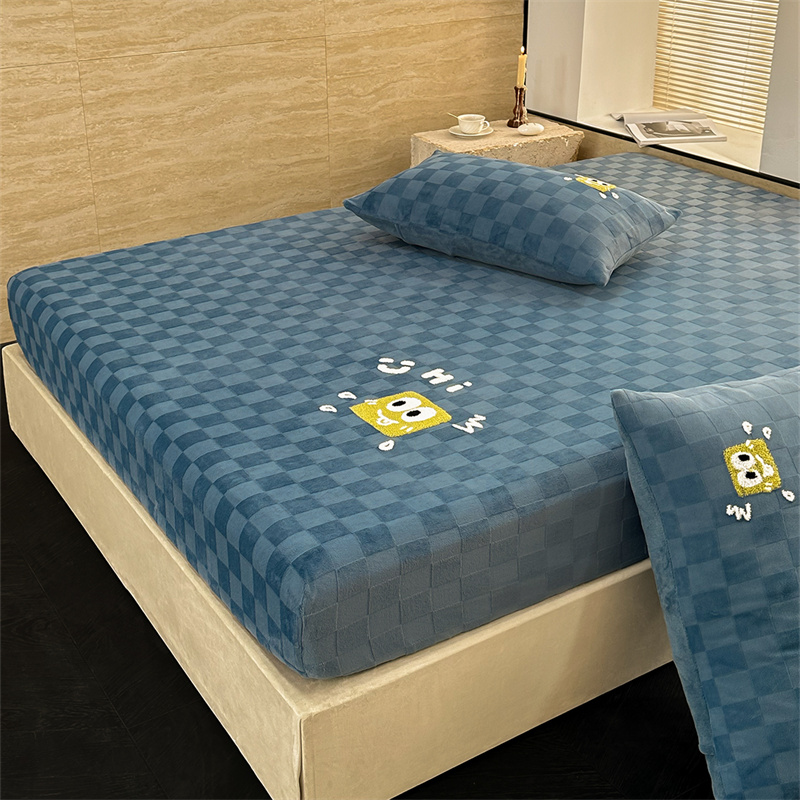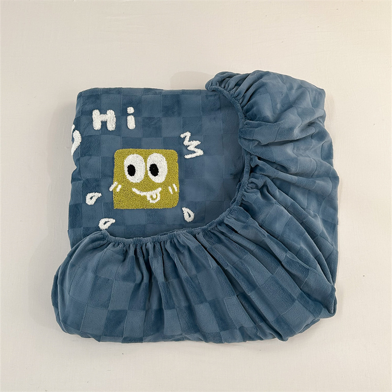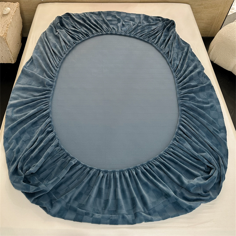 洋铭区(原狠狠爱)2023新款华夫格单品绒床笠 清格 蓝