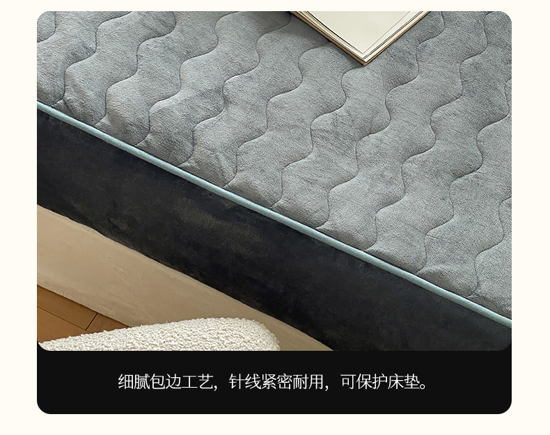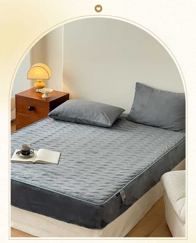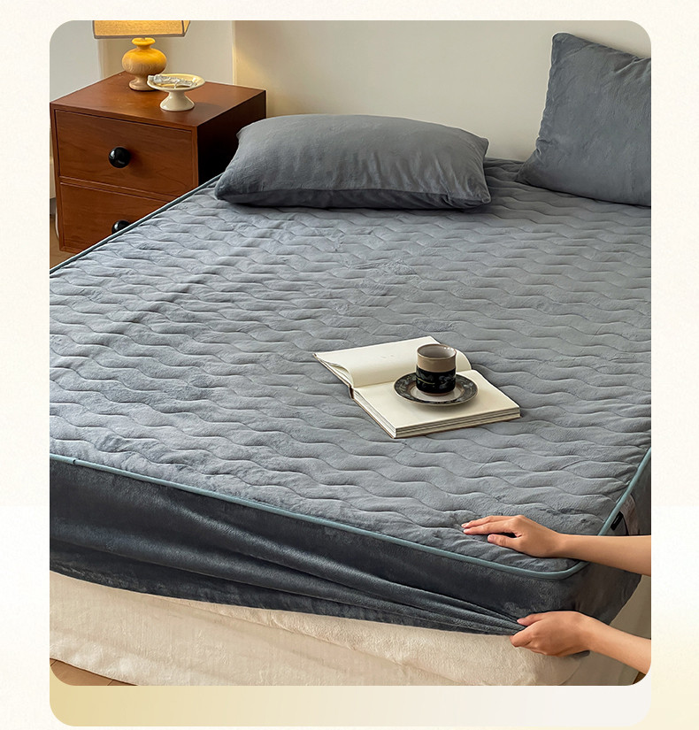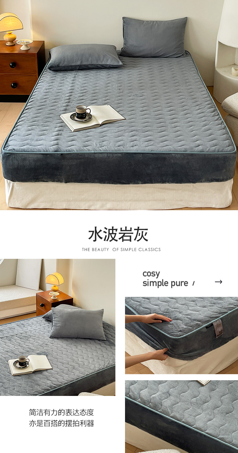 商品名称:三味舒屋 2024新款230g牛奶绒夹棉床笠 水波岩灰