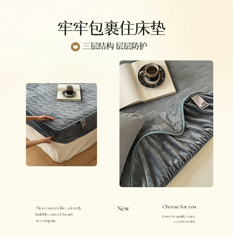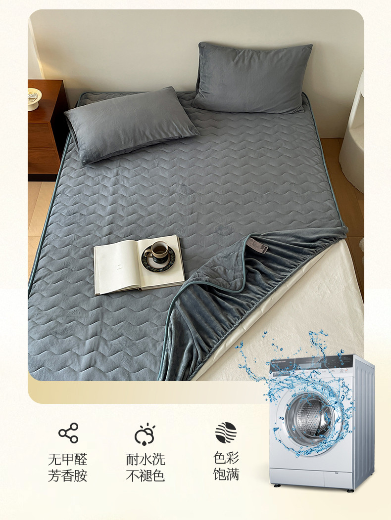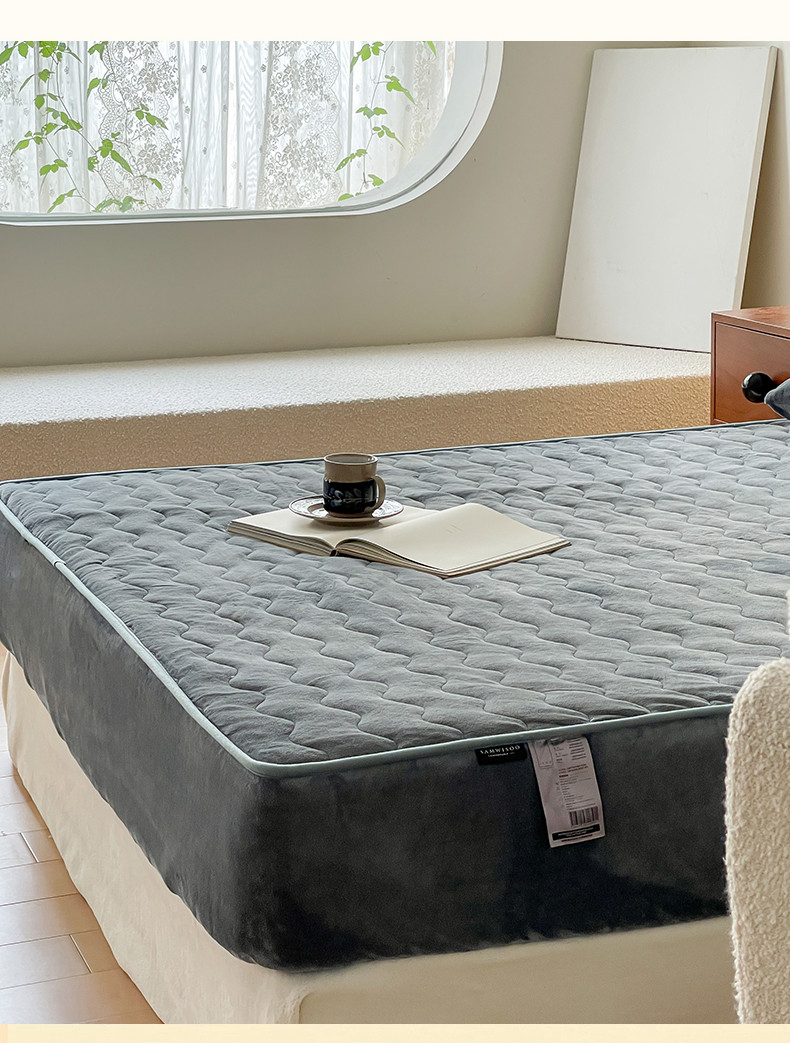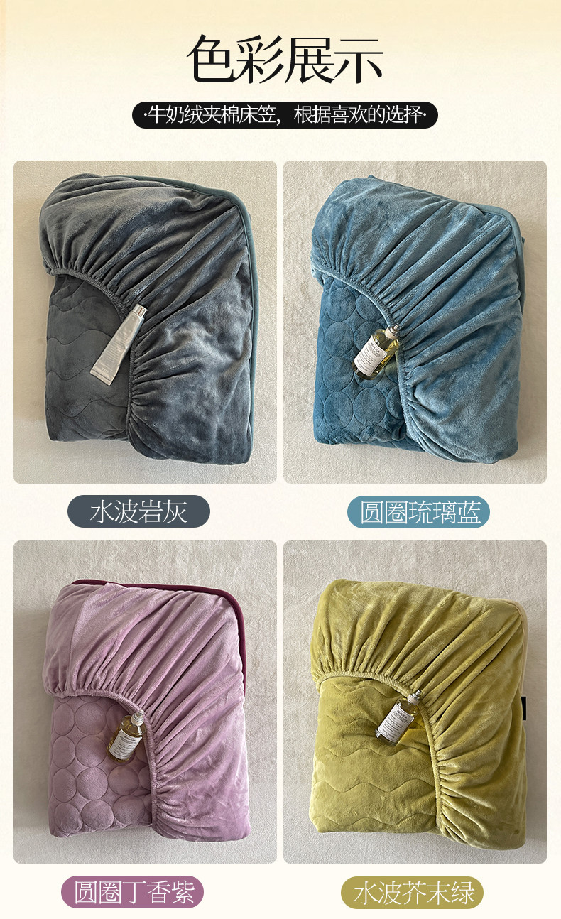 商品名称:三味舒屋 2024新款230g牛奶绒夹棉床笠 水波岩灰