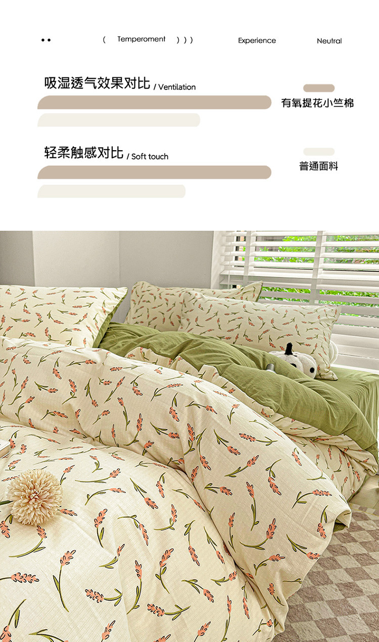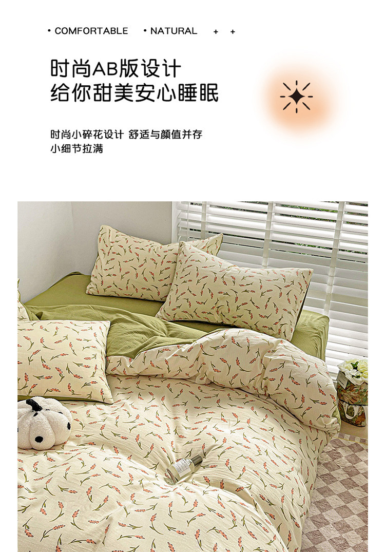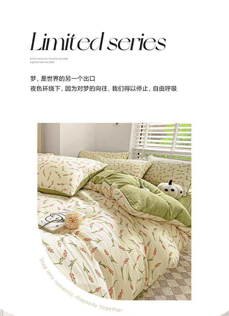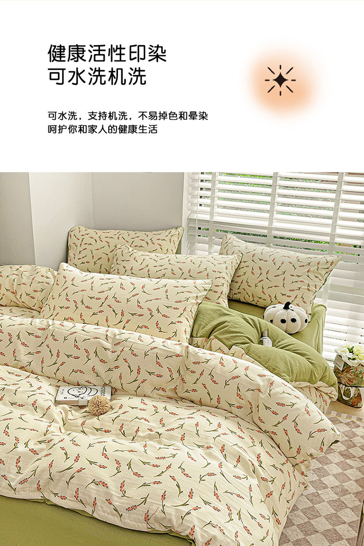 当前位置: 91家纺网 > 商品网购 > 床品套件 > 四件套 > 全棉普通四件套 > 暖芯优选2023新款超柔有氧小竺提花棉双层纱学生四件套 清风