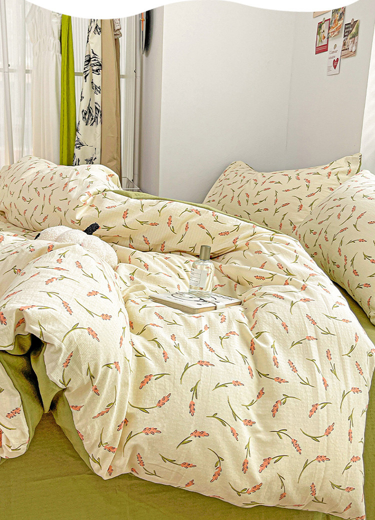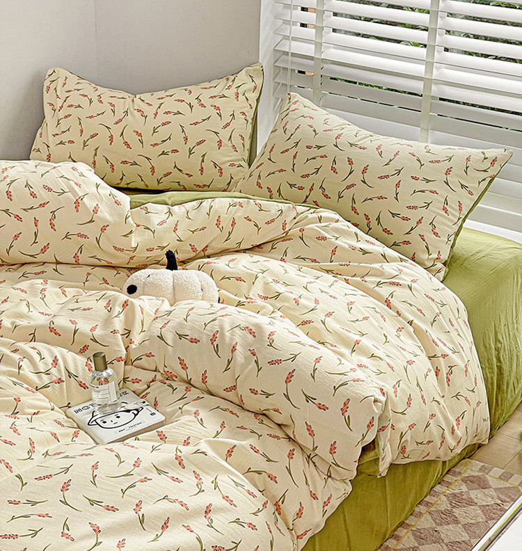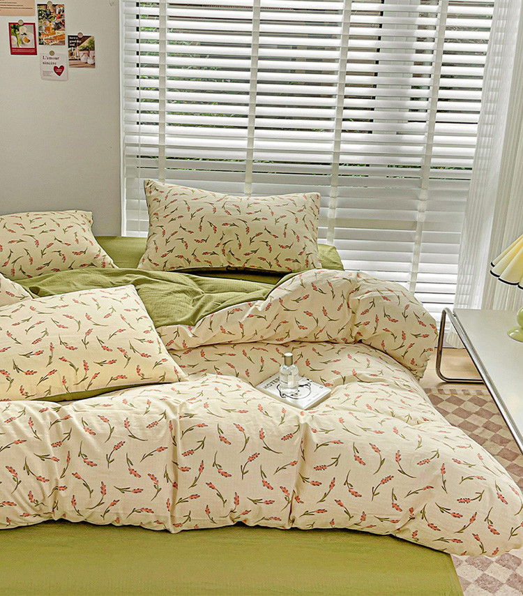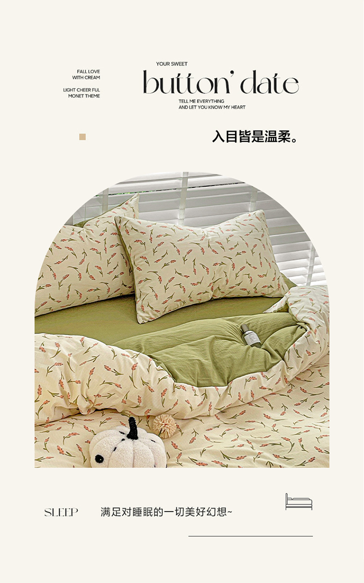 当前位置: 91家纺网 > 商品网购 > 床品套件 > 四件套 > 全棉普通四件套 > 暖芯优选2023新款超柔有氧小竺提花棉双层纱学生四件套 清风