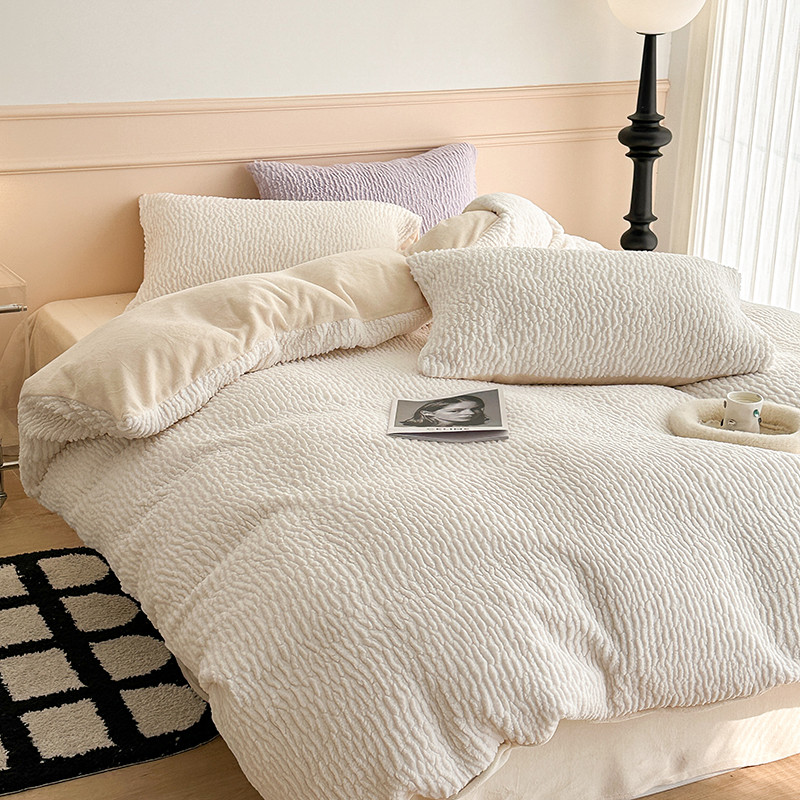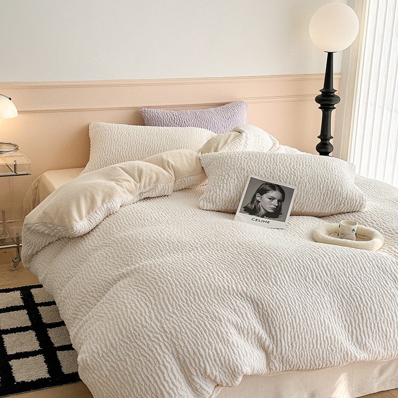 昔可 2023新款纯色泡芙云朵绒四件套 千金白