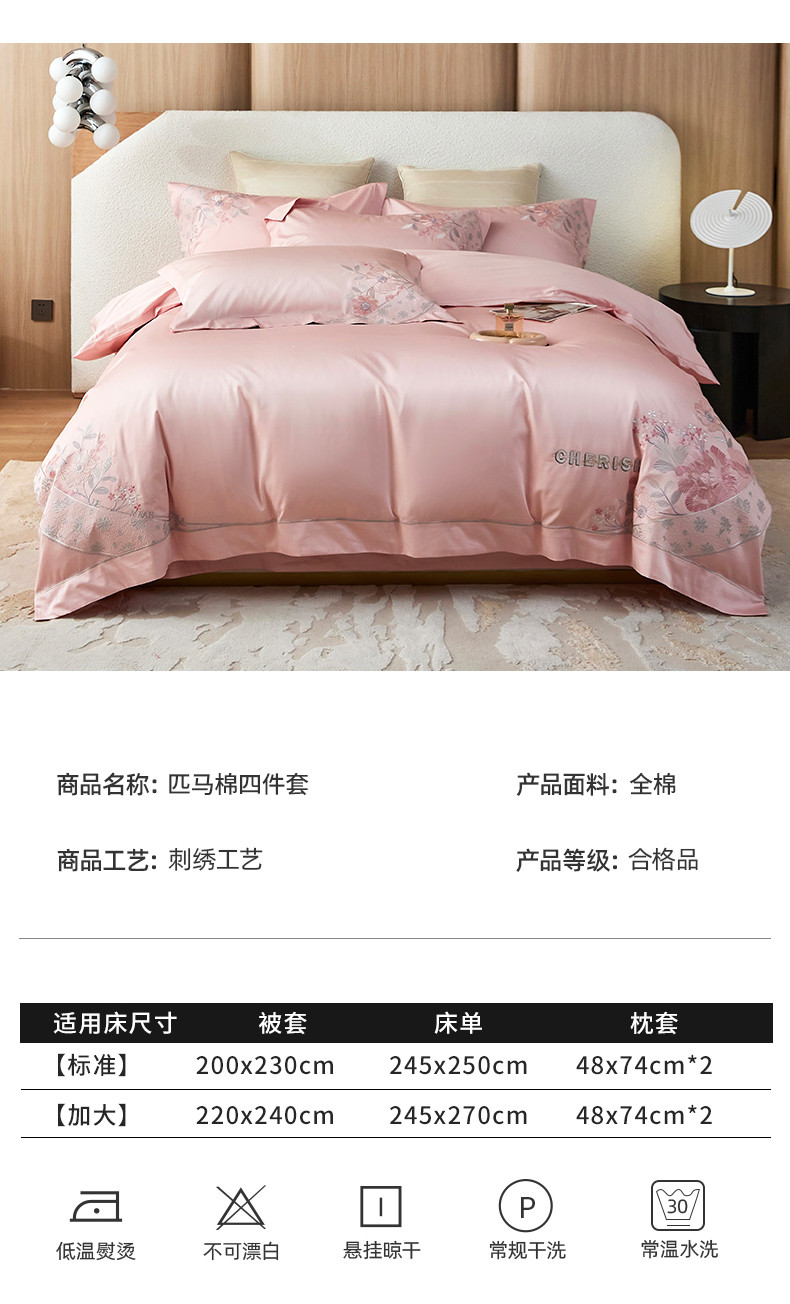 商品名称:宏羽纺 2023新款高支高密全棉绣花四件套--花间意境 美男粉