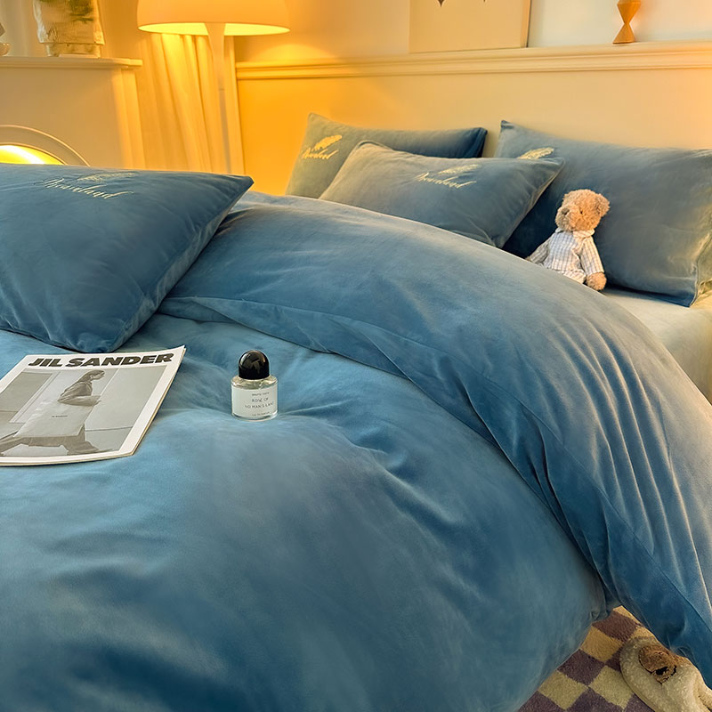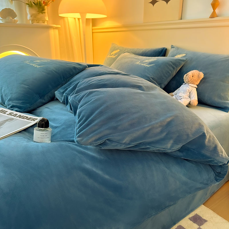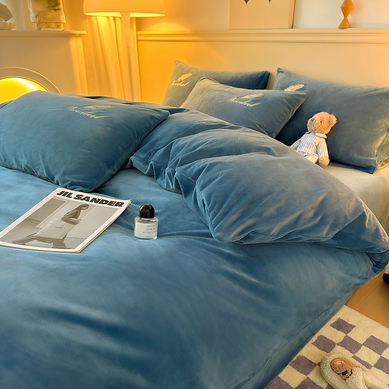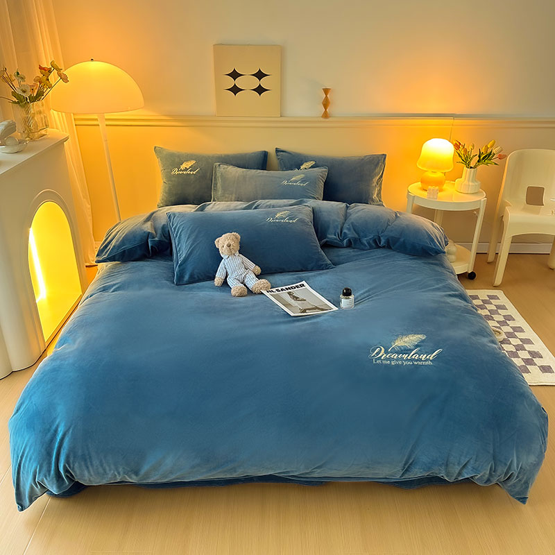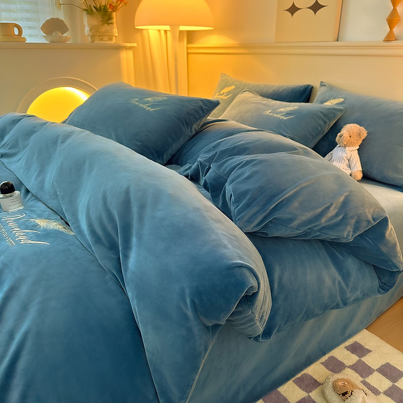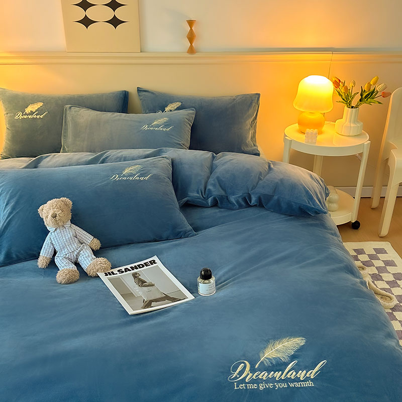 当前位置: 91家纺网 > 商品网购 > 床品套件 > 四件套 > 牛奶绒四件套 > yyds网供 新款牛奶绒羽毛刺绣水晶绒简约床单款床笠款单品套件-场景二 羽毛-宝蓝