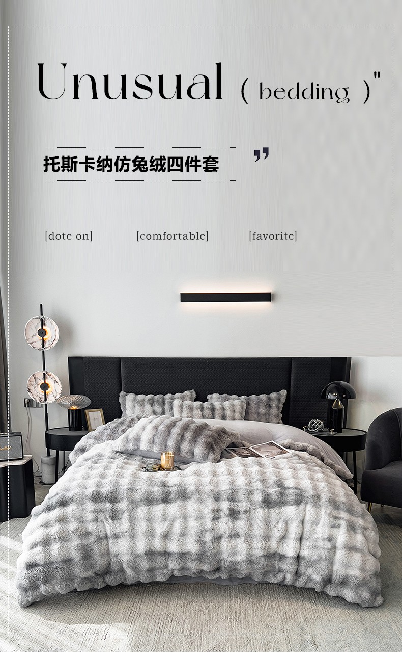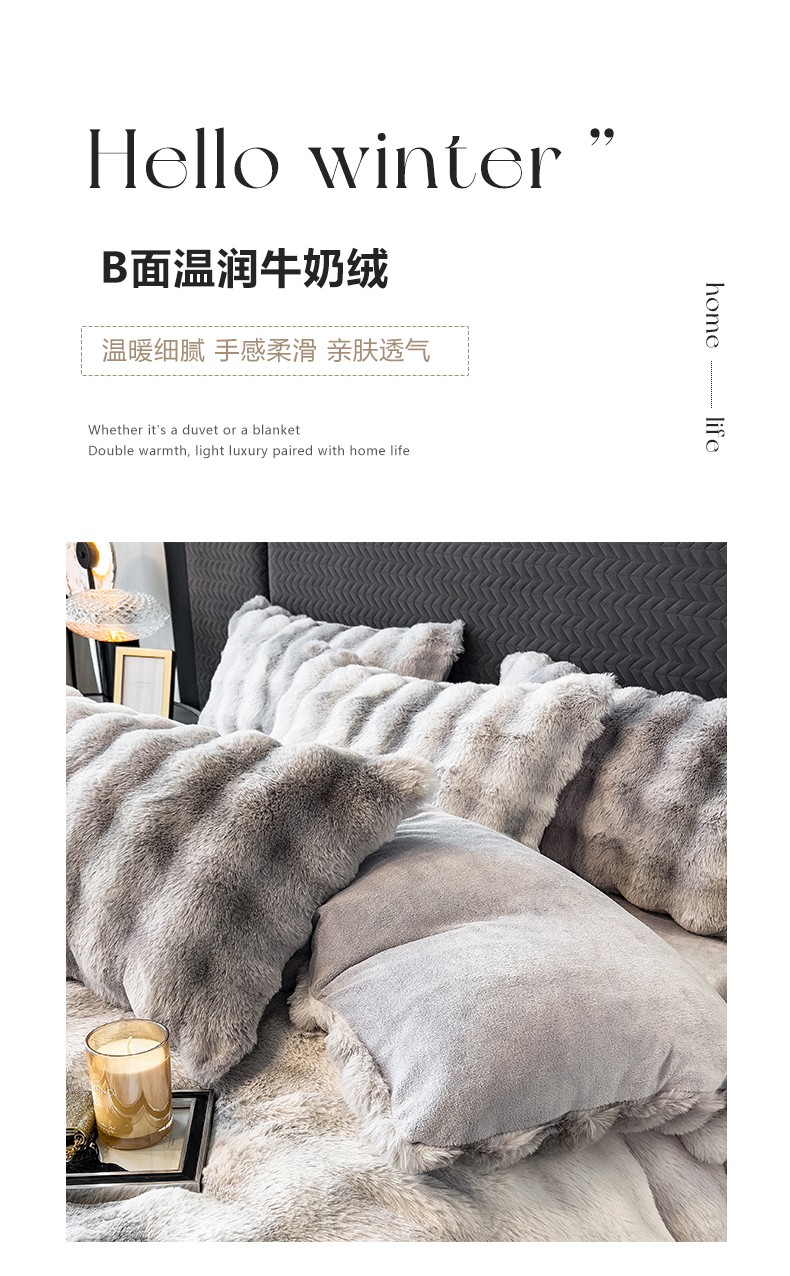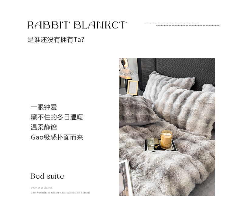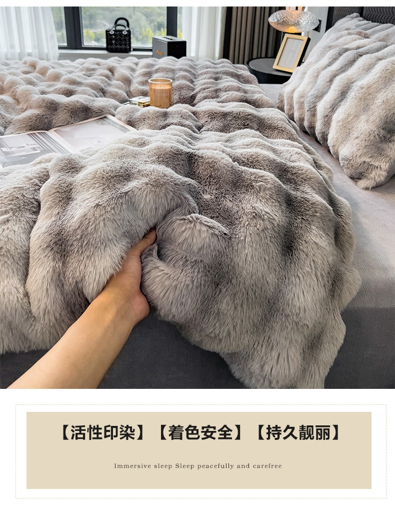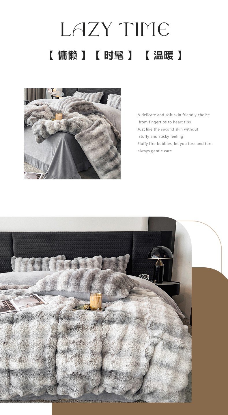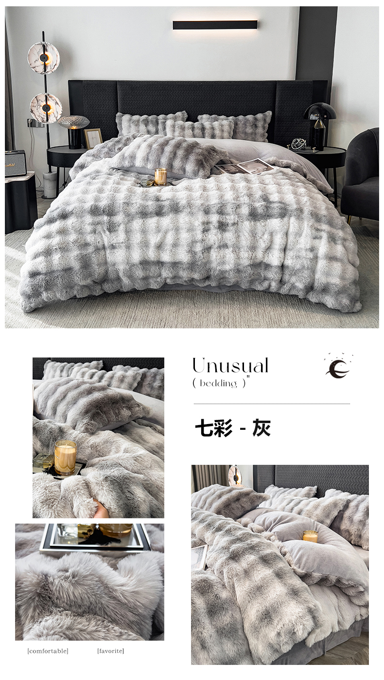 商品名称:宜代光年 2023新款兔毛绒小泡泡四件套-七彩系列 七彩-灰