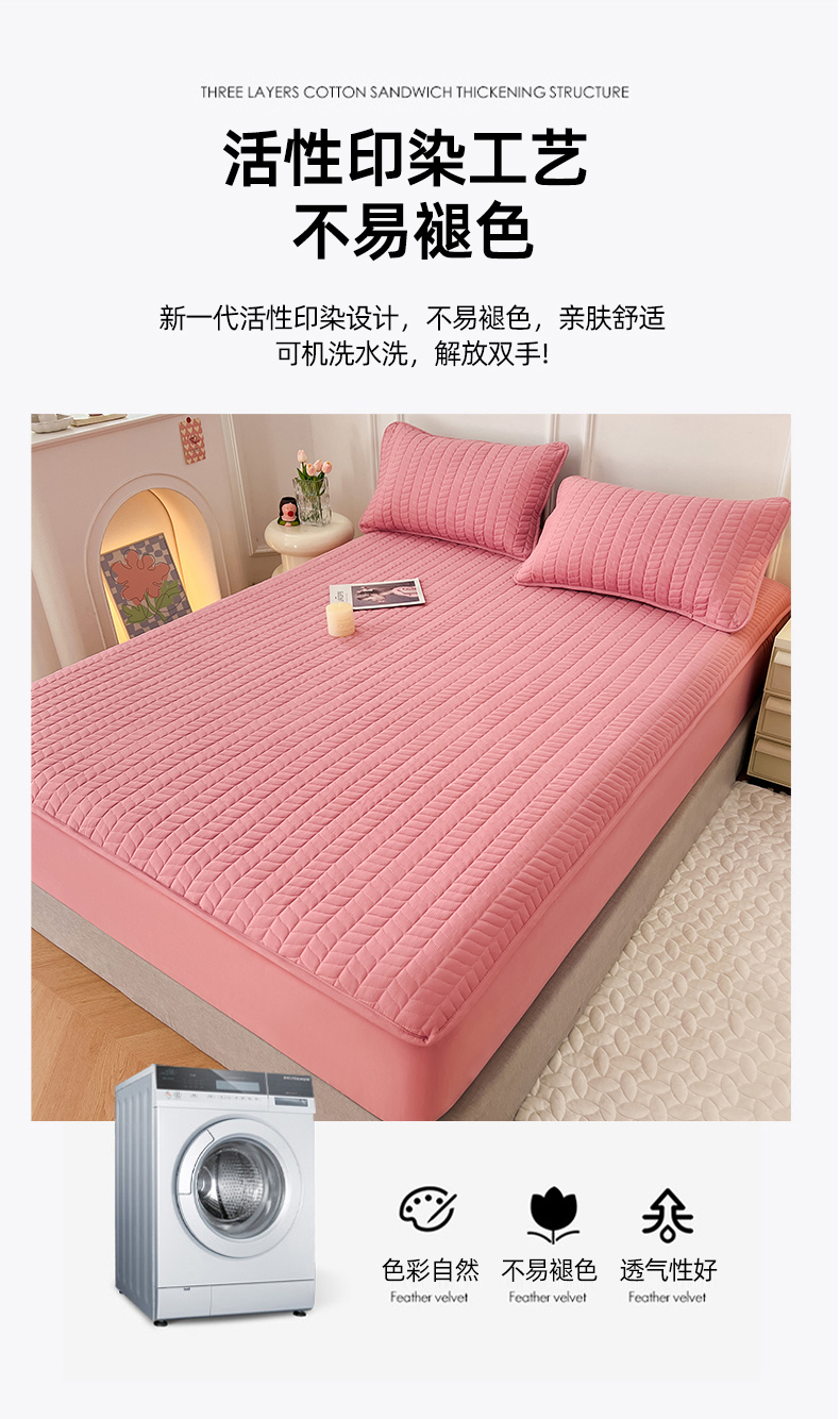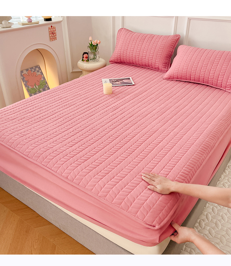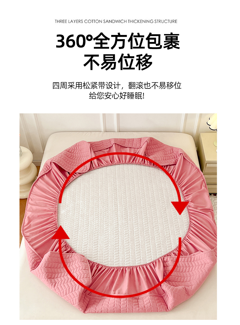 商品名称:梦舒羽 2025新款抗菌防水夹棉床笠-轻奢款 轻奢款-豆沙