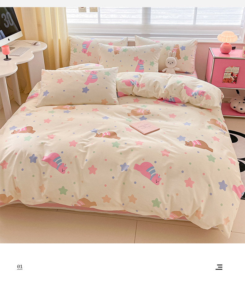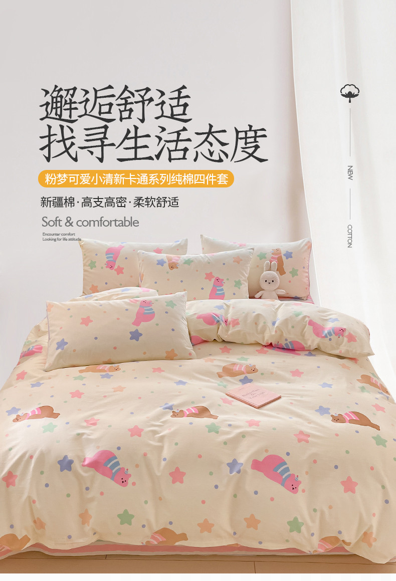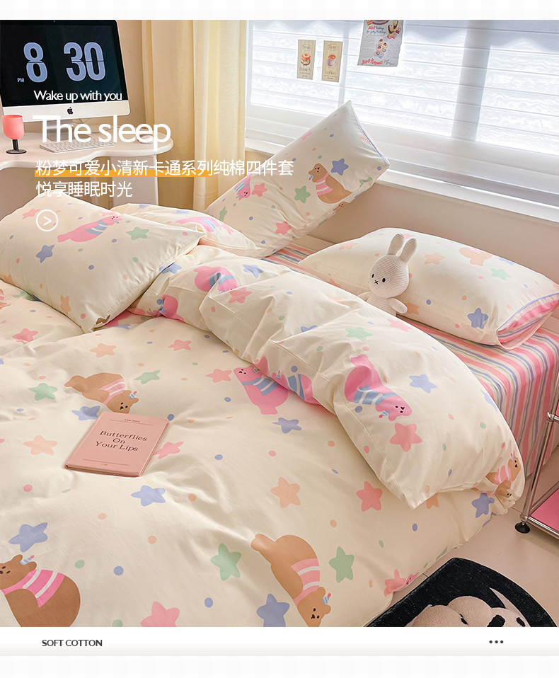 桃子家居 2024新款纯棉13372粉梦可爱小清新卡通系列四件套 棉-懒懒熊
