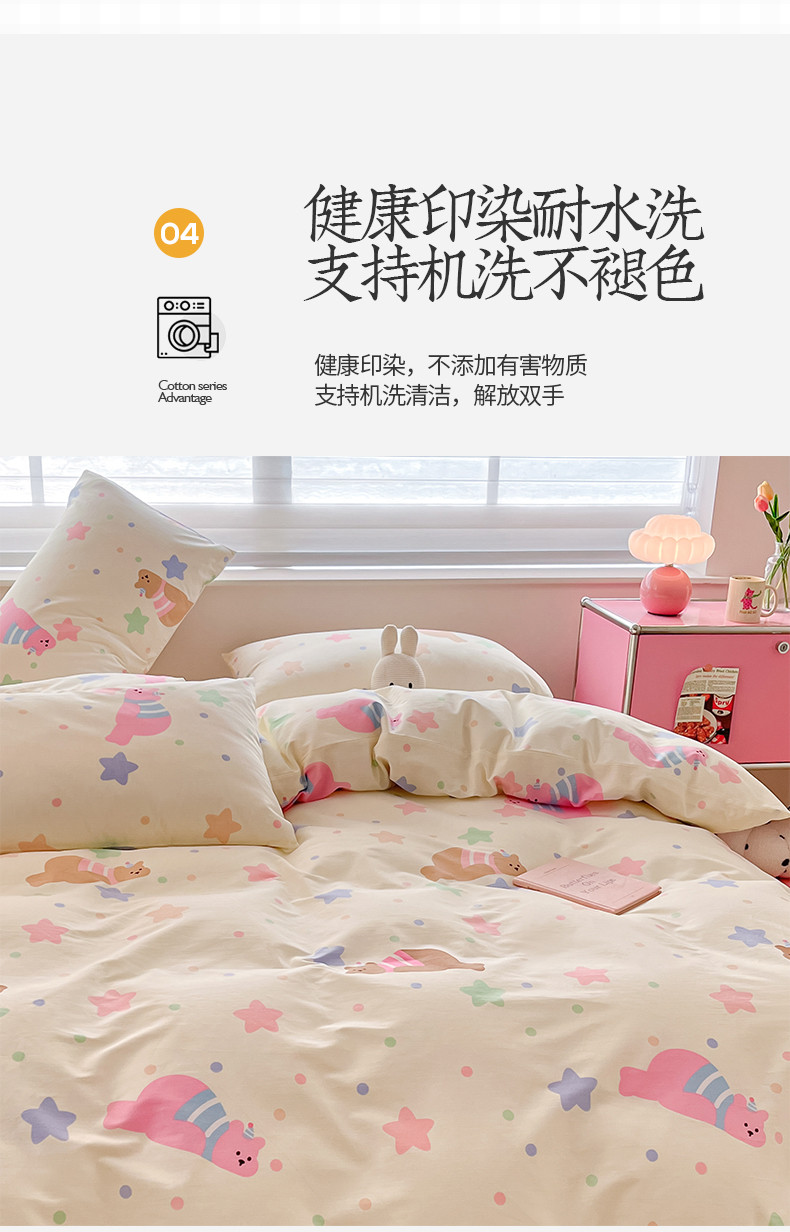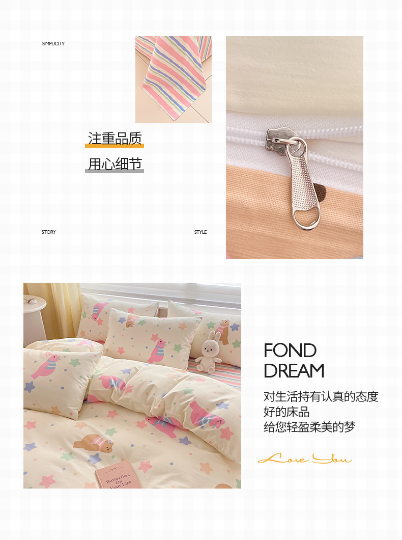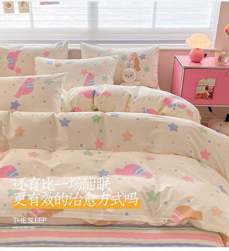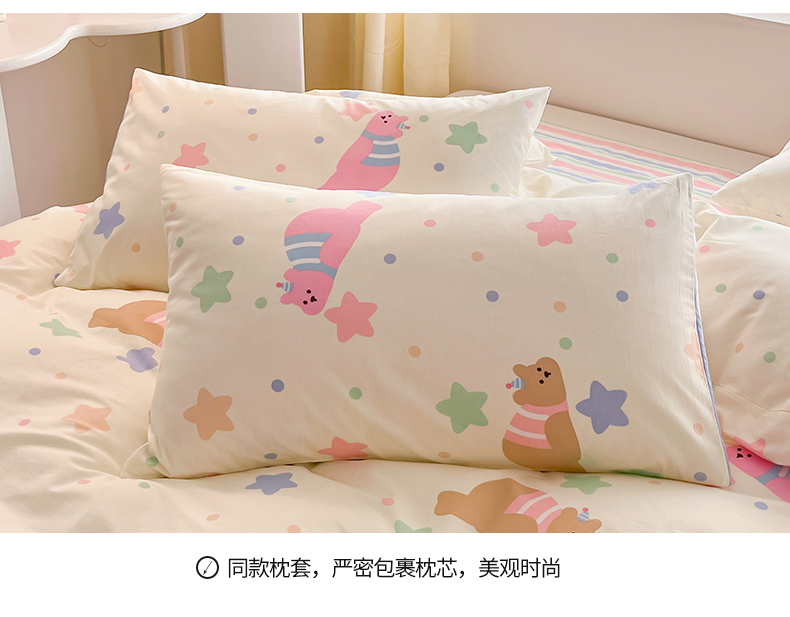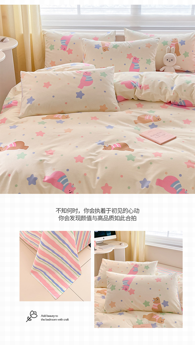 商品名称:桃子家居 2024新款纯棉13372粉梦可爱小清新卡通系列四件套 棉-懒懒熊
