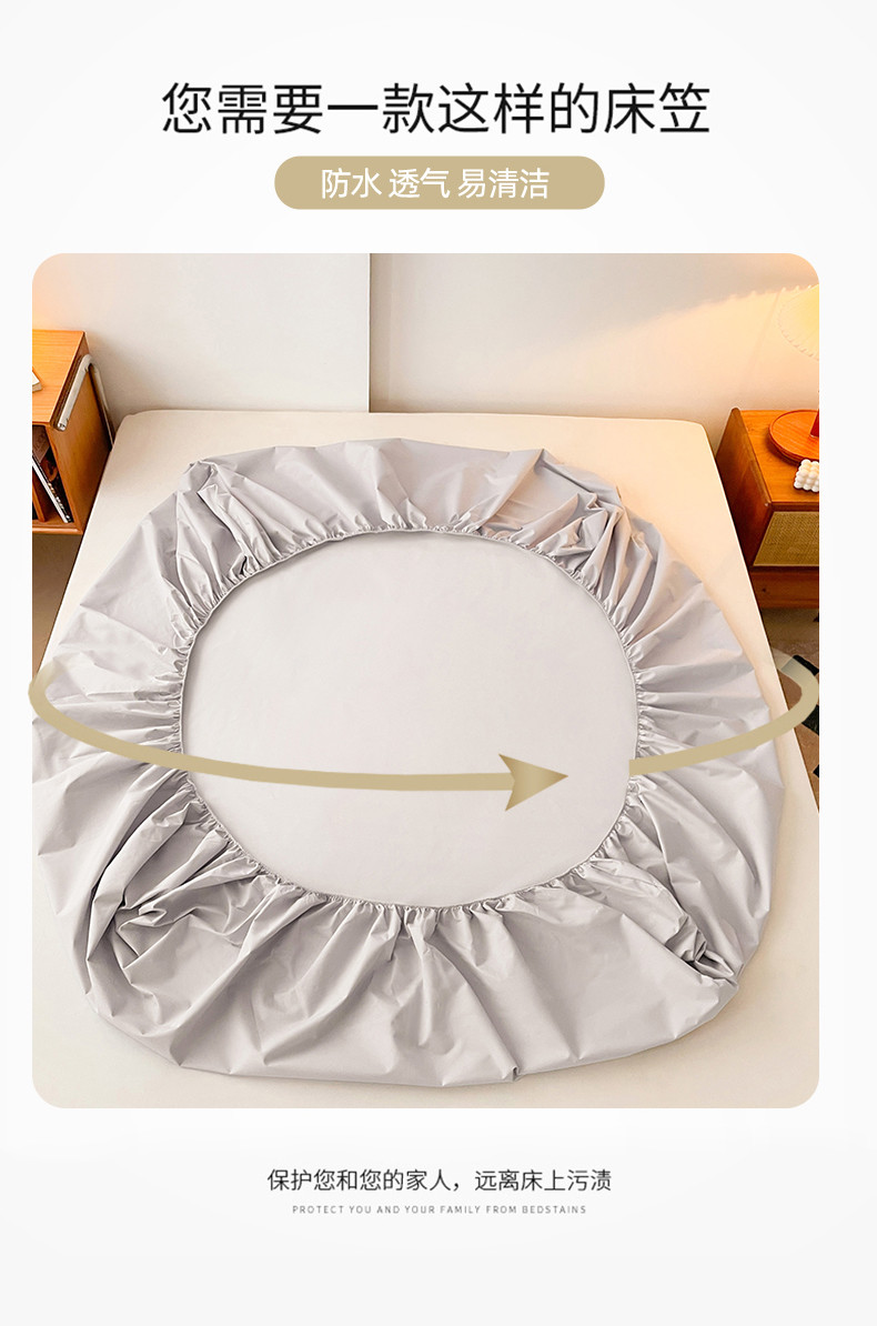 梦舒羽 新款抗菌隔尿防水四季款单层床笠床垫保护罩床垫套 银优灰
