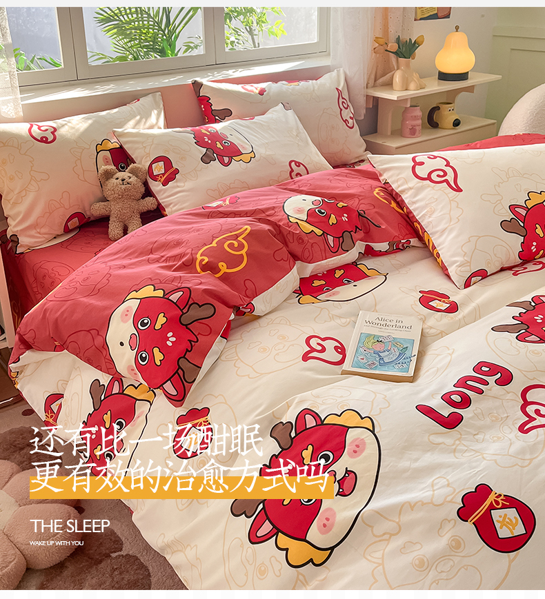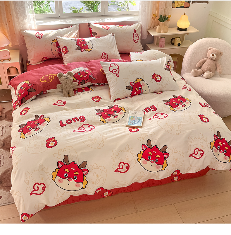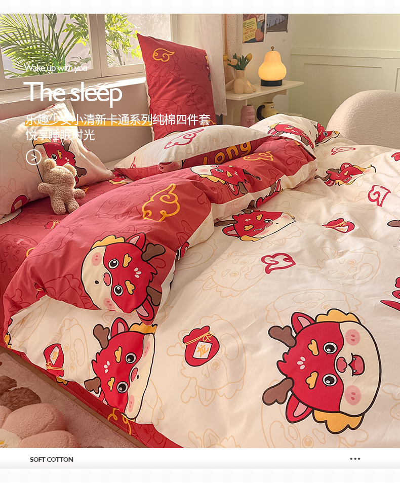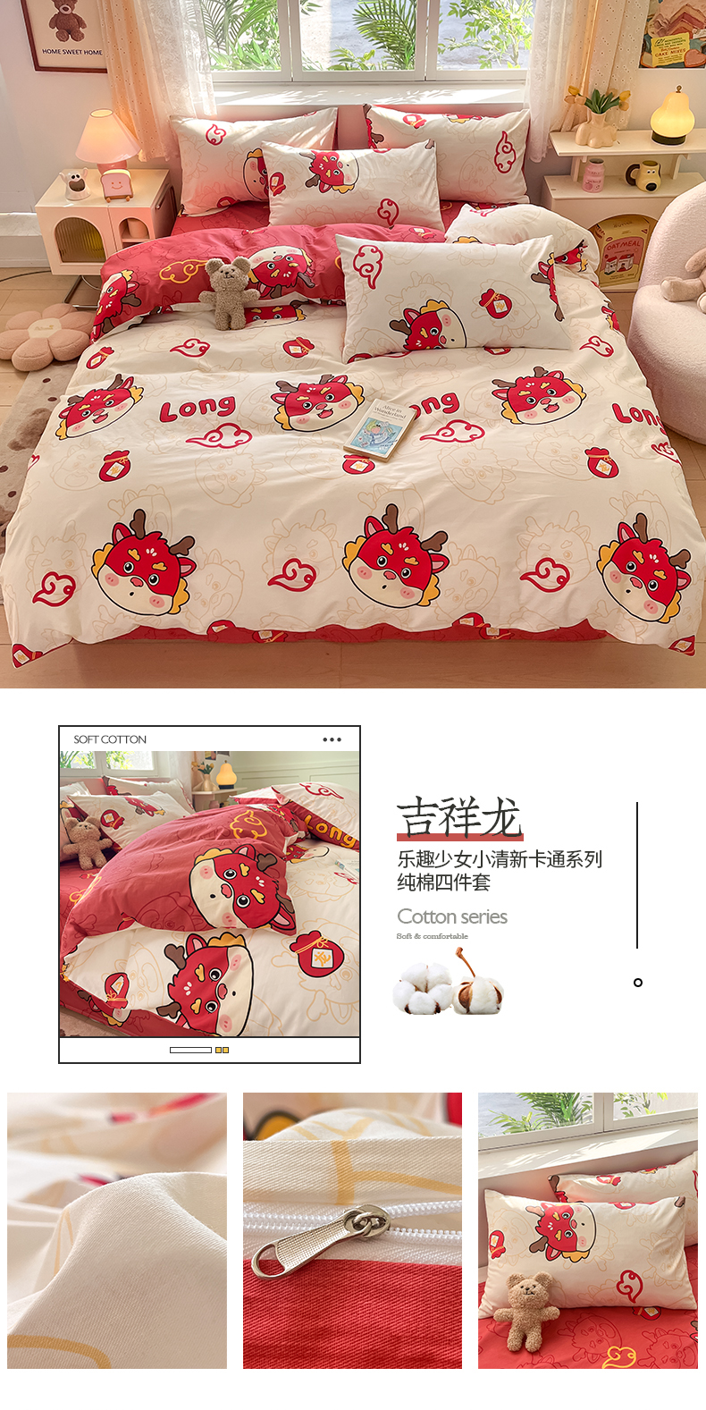 桃子 2024新款纯棉13372萌趣少女小清新卡通四件套第二批 棉-吉祥龙