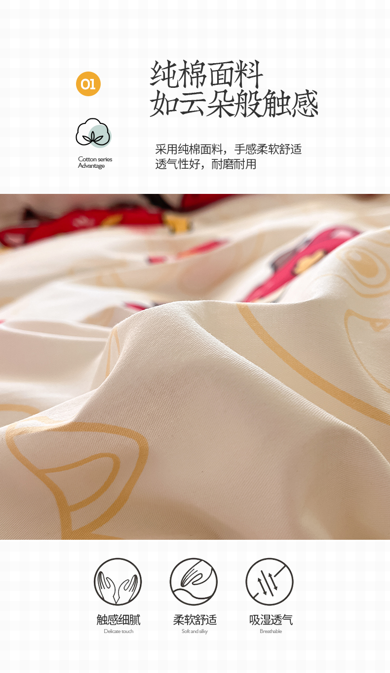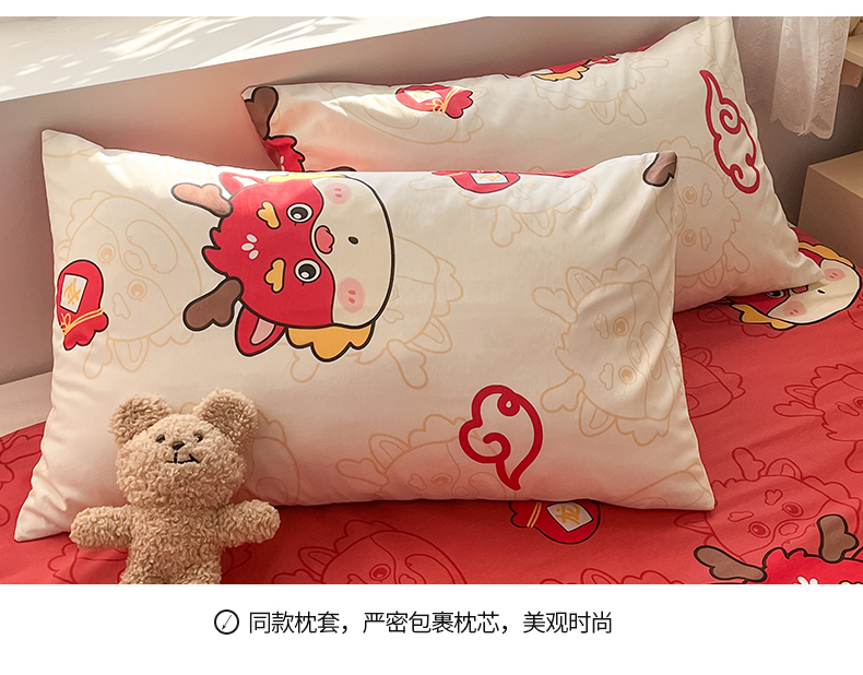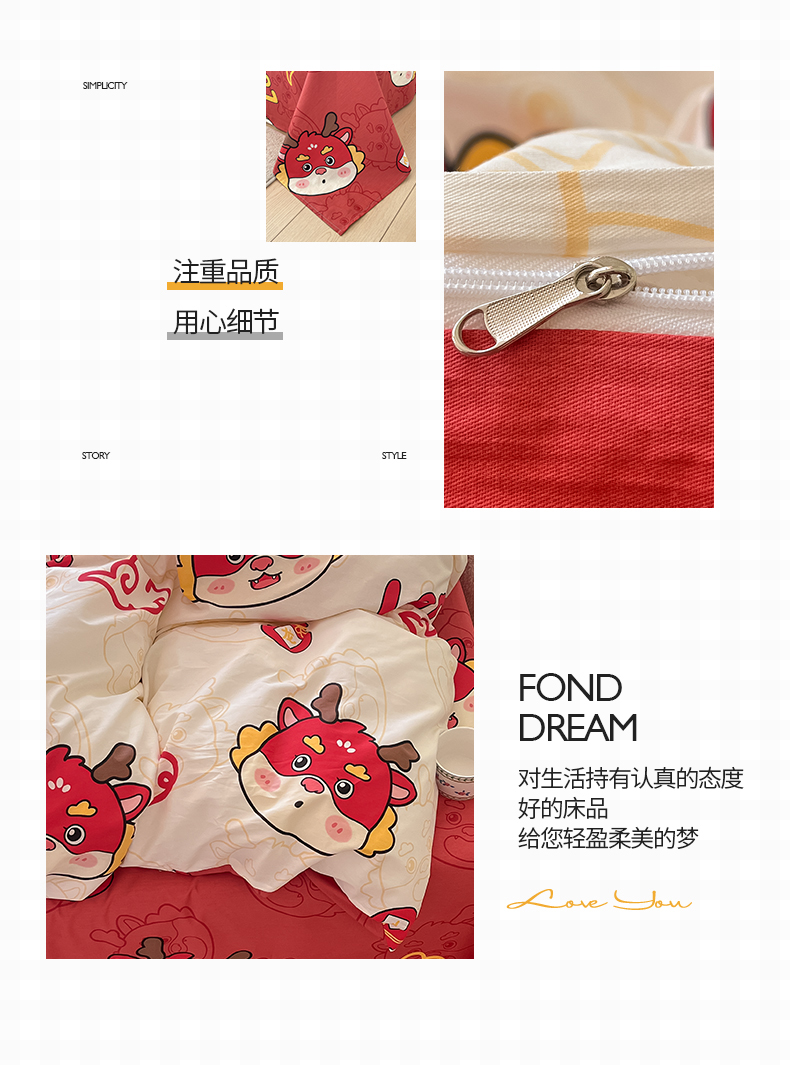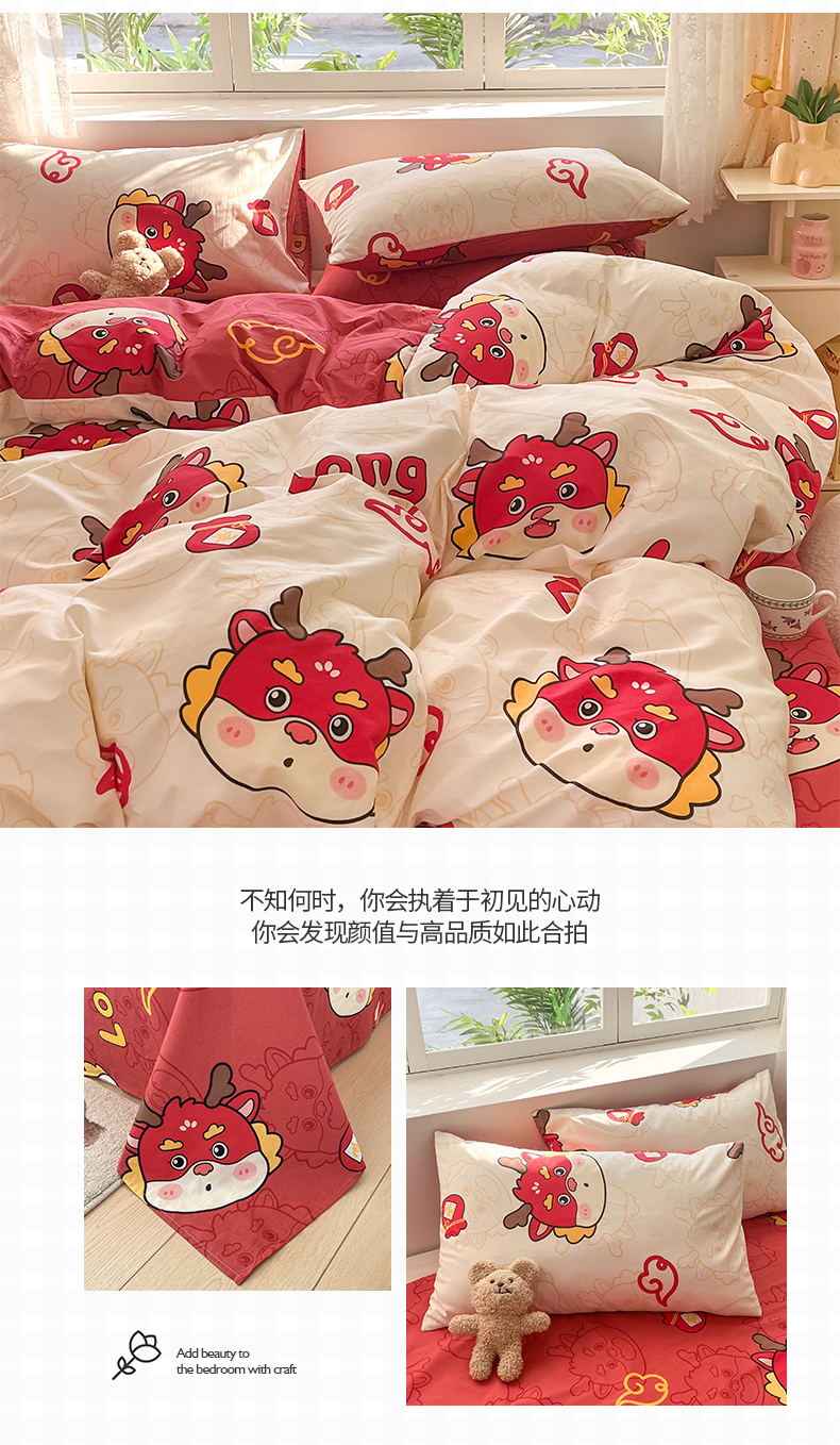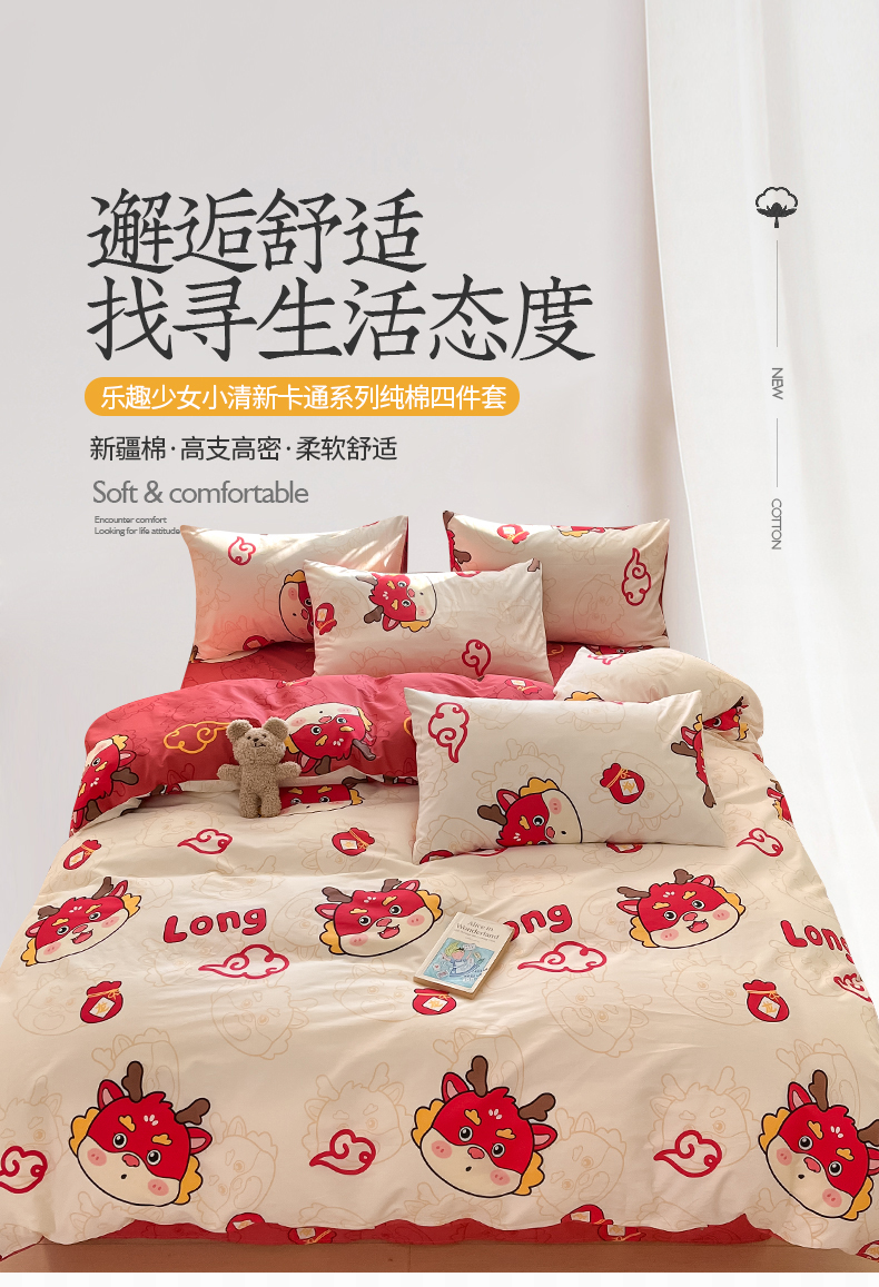 商品名称:桃子 2024新款纯棉13372萌趣少女小清新卡通四件套第二批 棉-吉祥龙