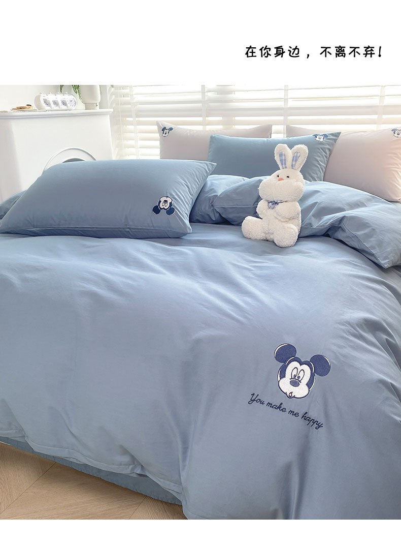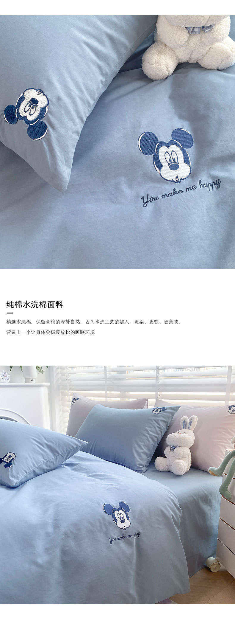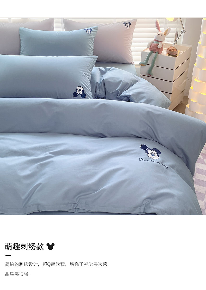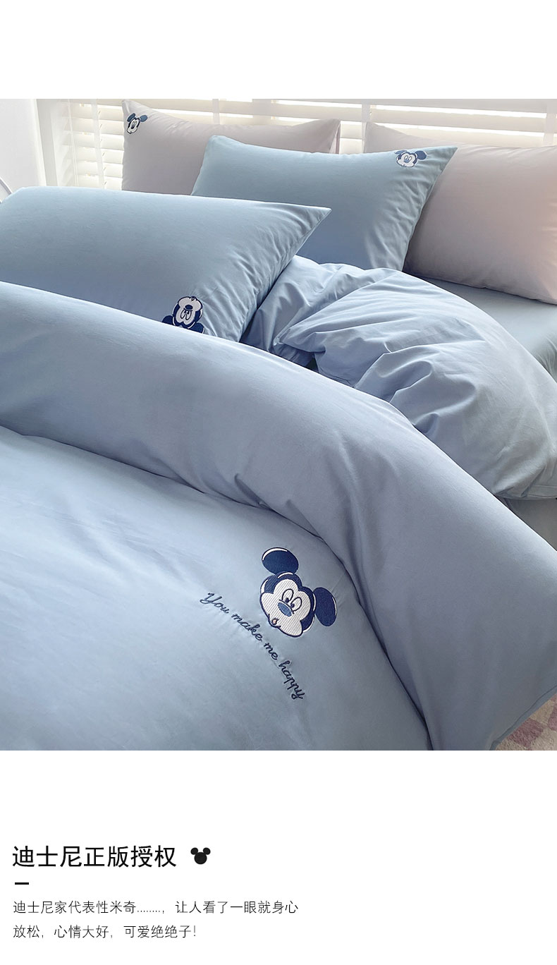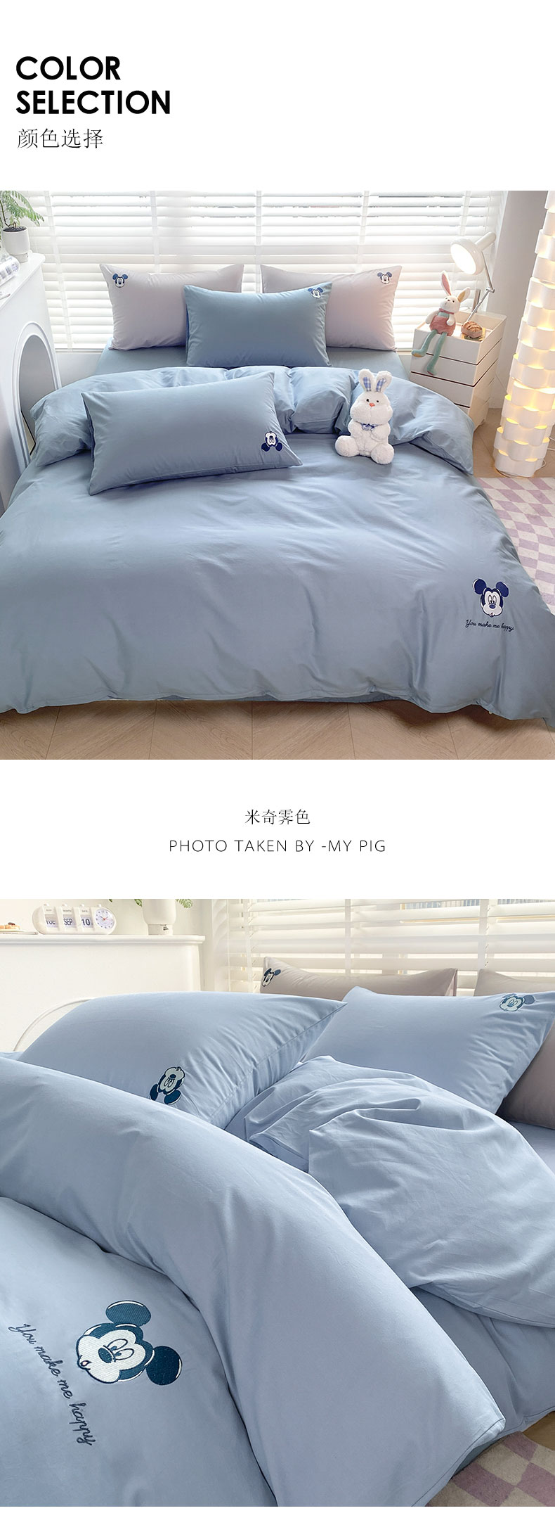 商品名称:猪先生 2024新款迪士尼全棉40支水洗棉绣花四件套 米奇霁色