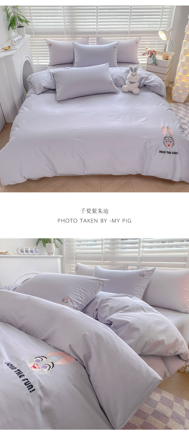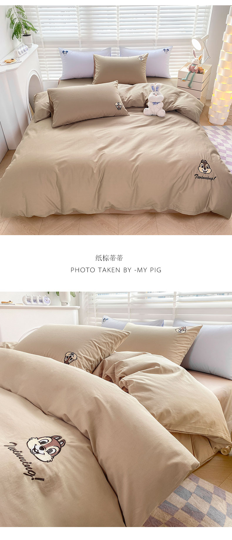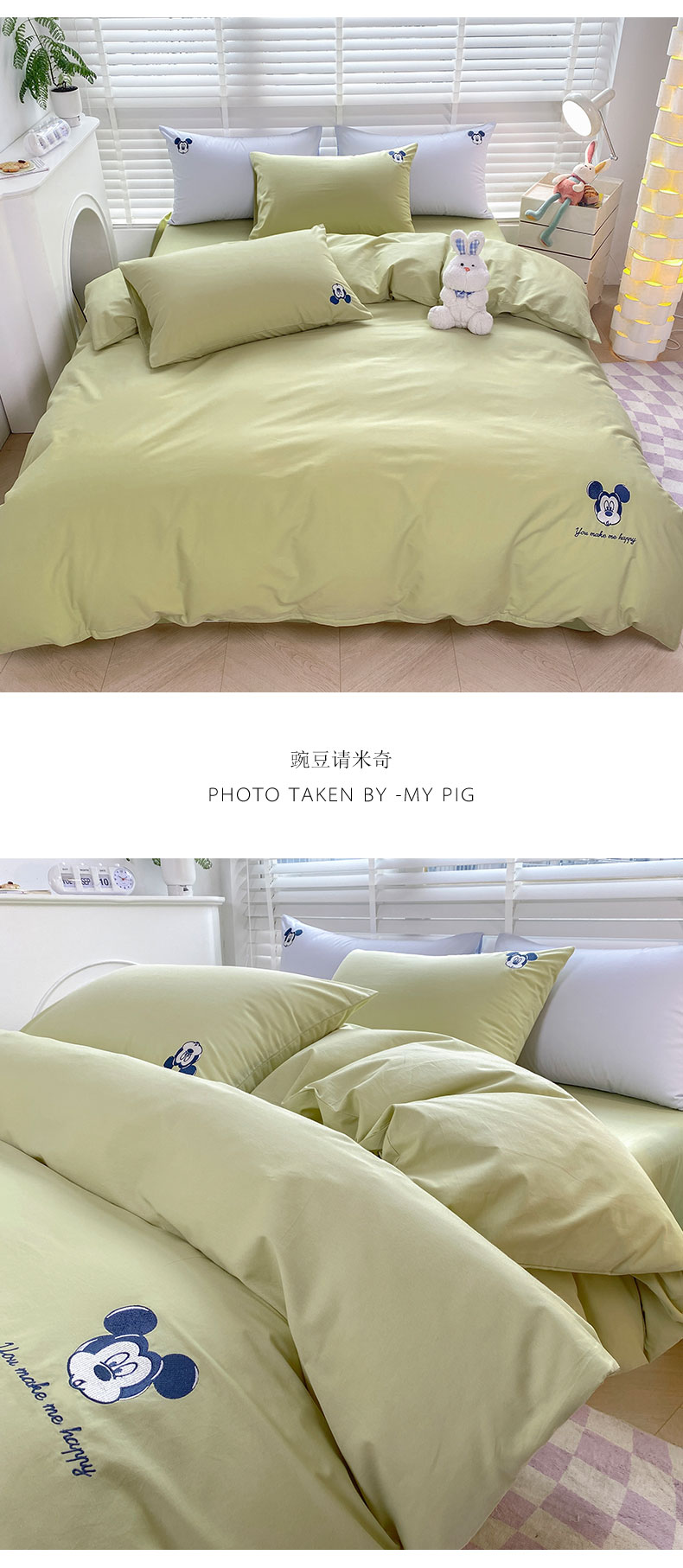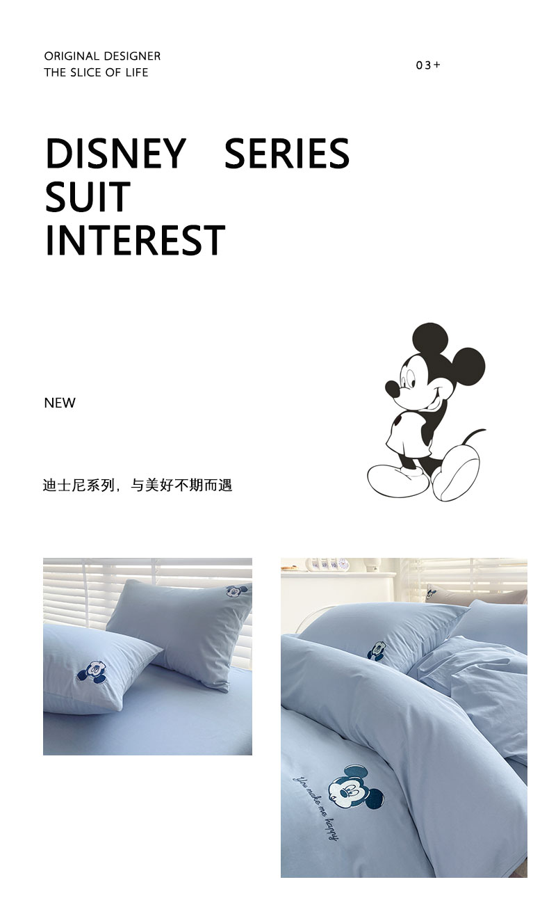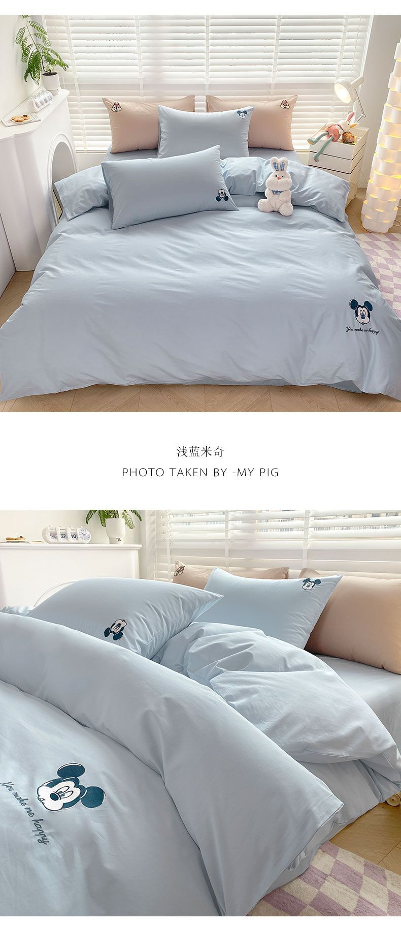商品名称:猪先生 2024新款迪士尼全棉40支水洗棉绣花四件套 米奇霁色