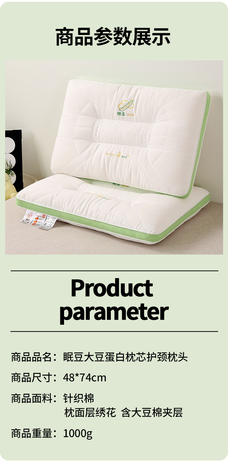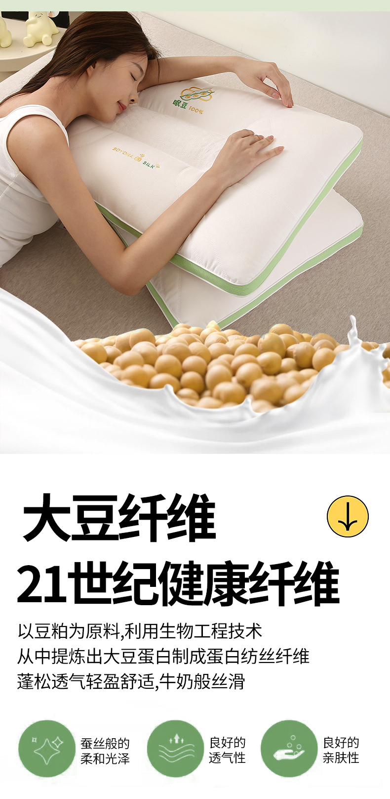 商品名称:(总)梦叶草 2024新款眠豆大豆蛋白枕芯护颈枕头