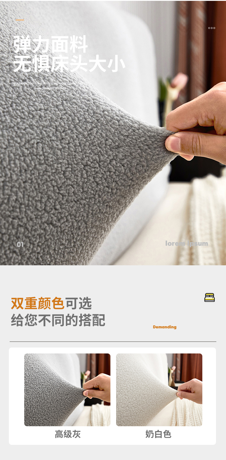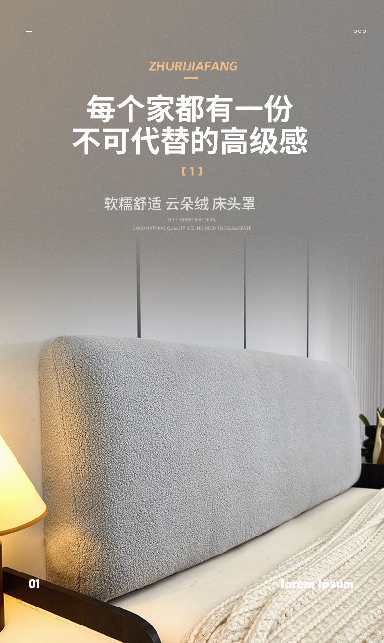 商品名称:逐日沙发套 2024新款云朵绒纯色系列床头罩 云朵绒纯色-高级灰