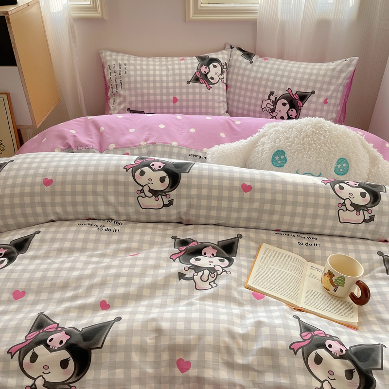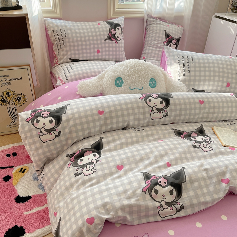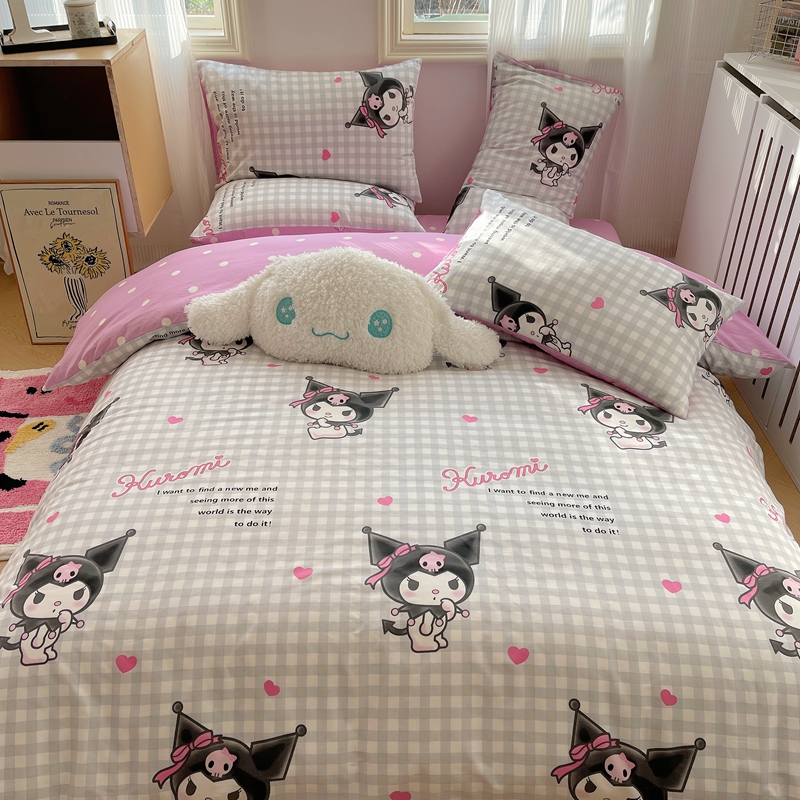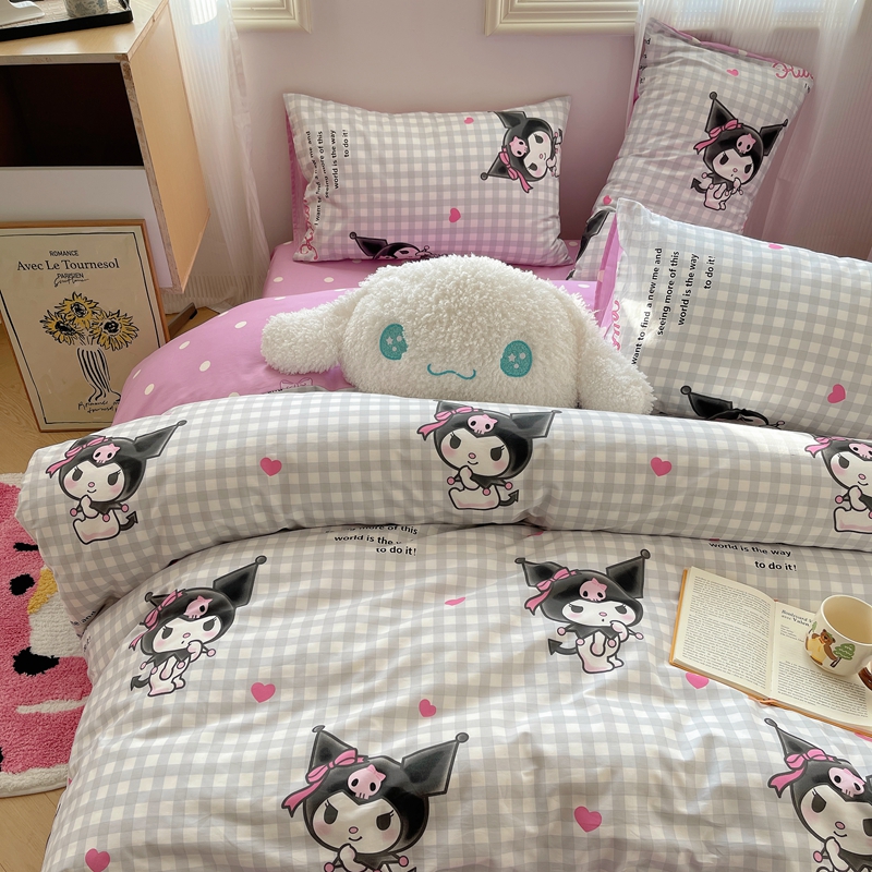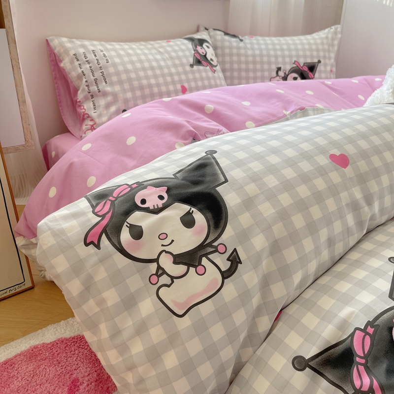 商品名称:桃喜 2024新款三丽鸥40支13372全棉四件套-库洛米 格子库洛米