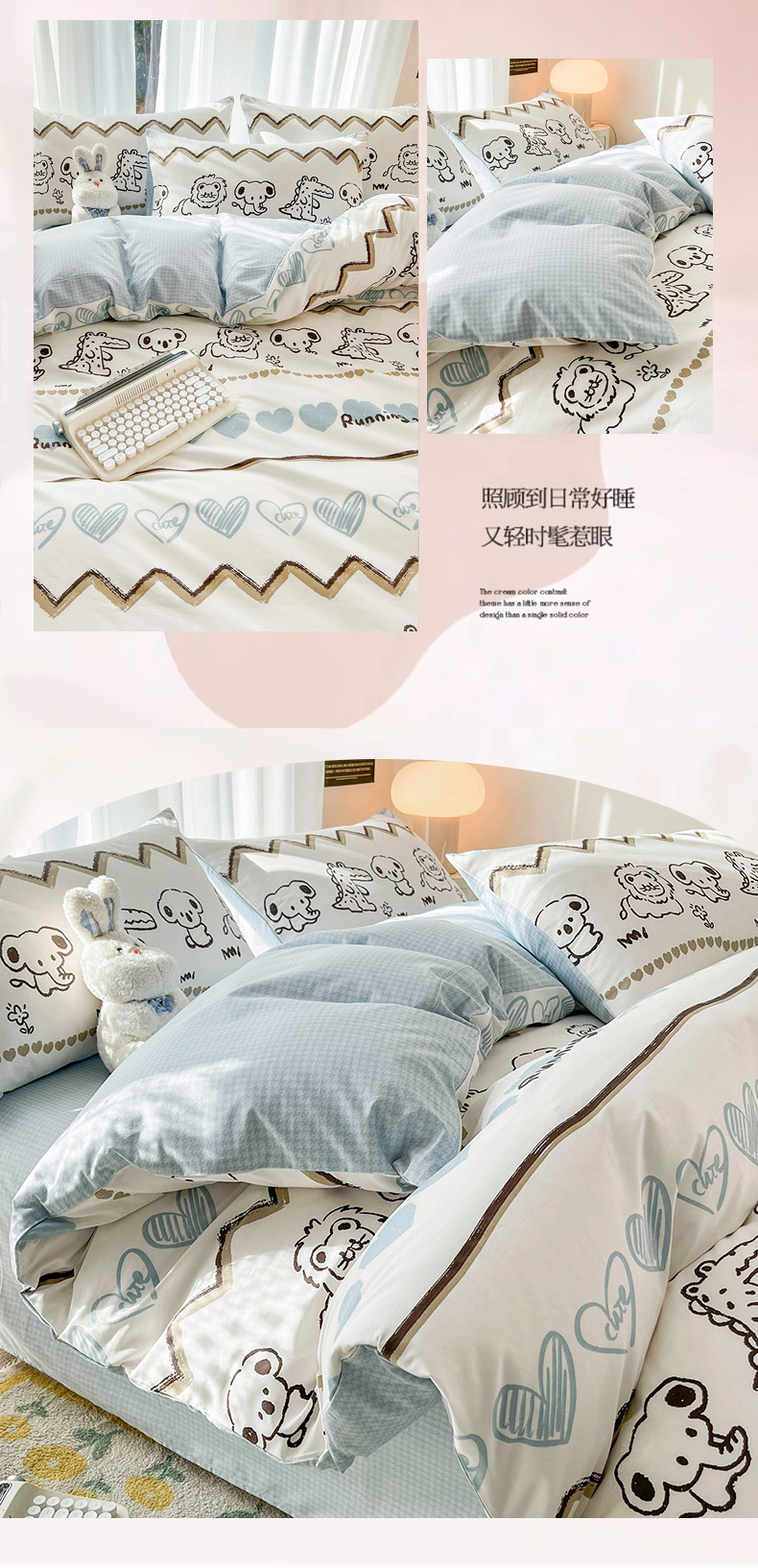 (总)倾慕 2025新款6D立体雪花绒系列四件套,北欧小熊,波波兔,波点头像,格格狗,欢乐小虎,活泼小兔,咖啡熊兔,礼物小狗,萌宠小兔,奶茶小龙灰,奶茶小龙蓝,奶茶小熊,汽车小熊,森林公园,时光小狗,时尚猫咪,小皮皮