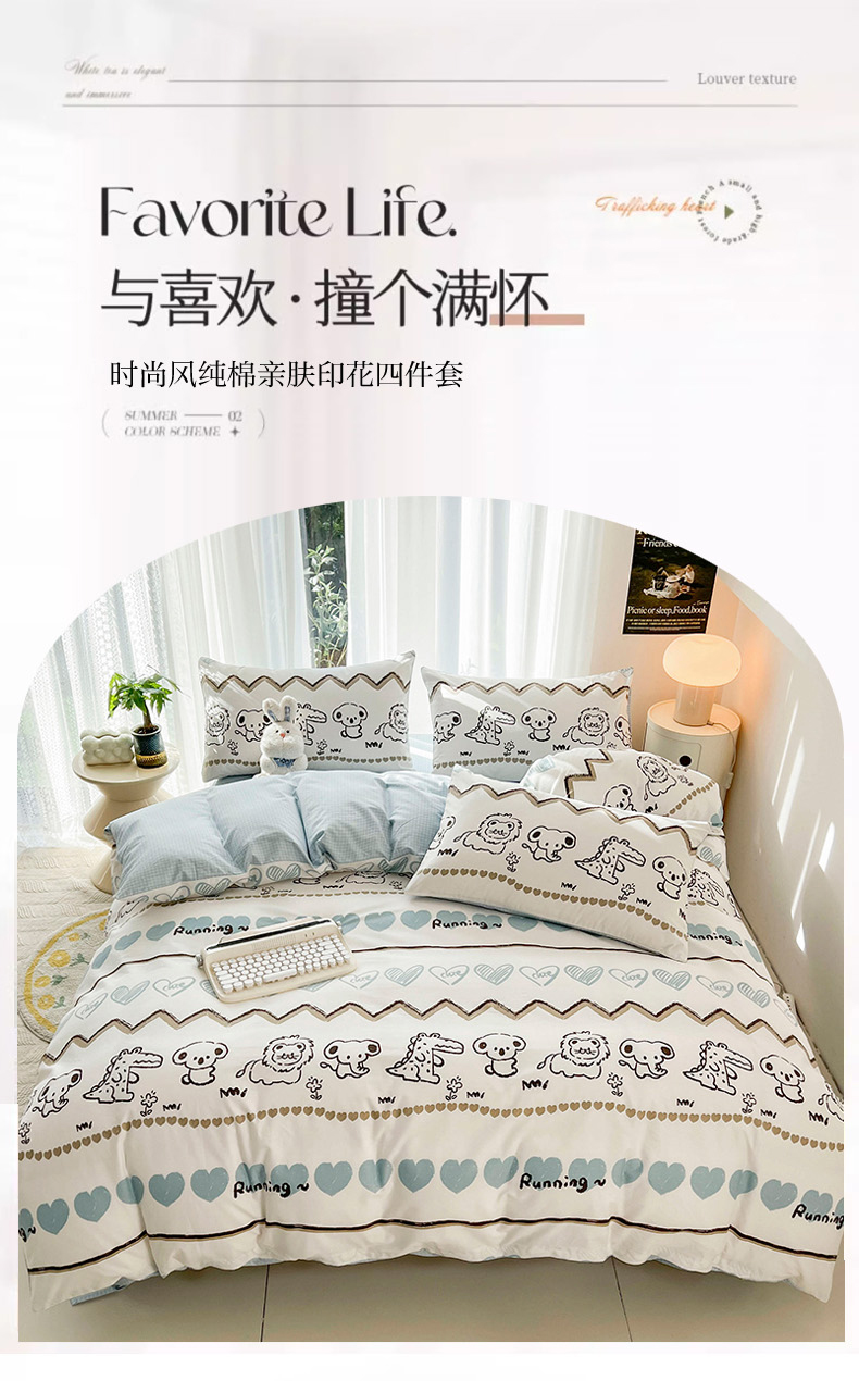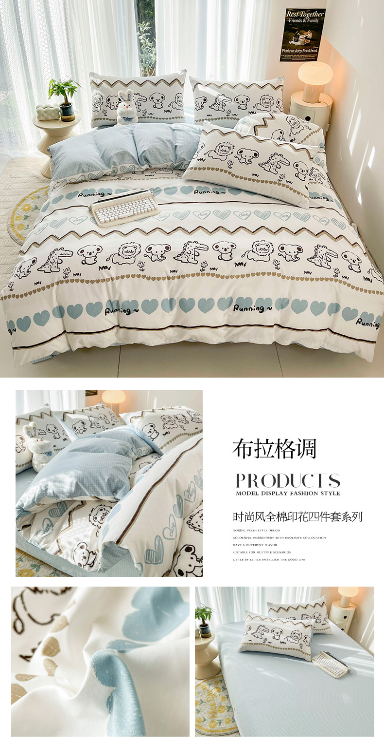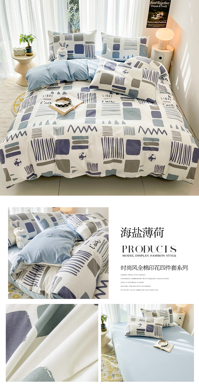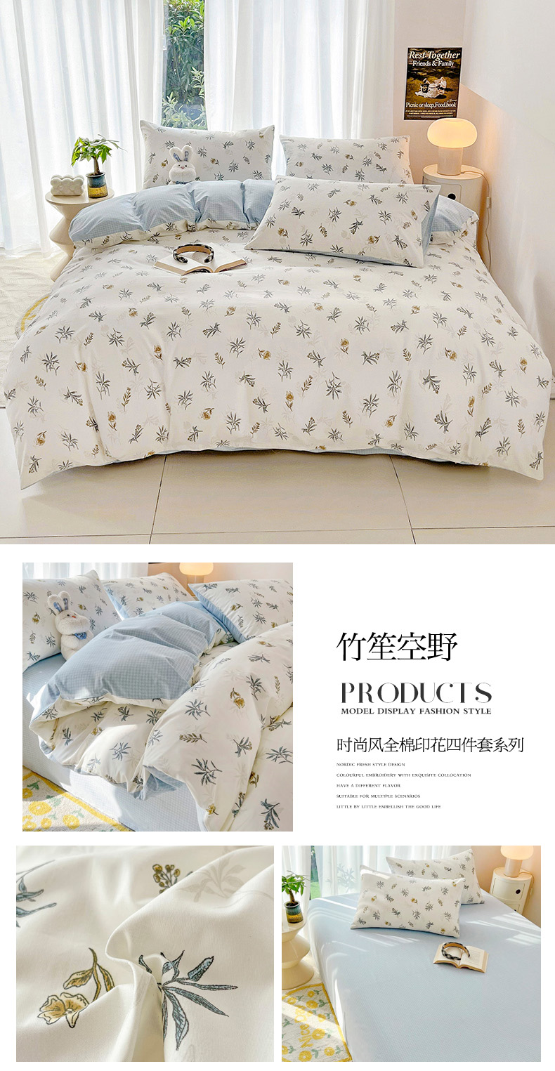 商品名称:(总)倾慕家纺 2024新款时尚风全棉13070亲肤印花系列四件套