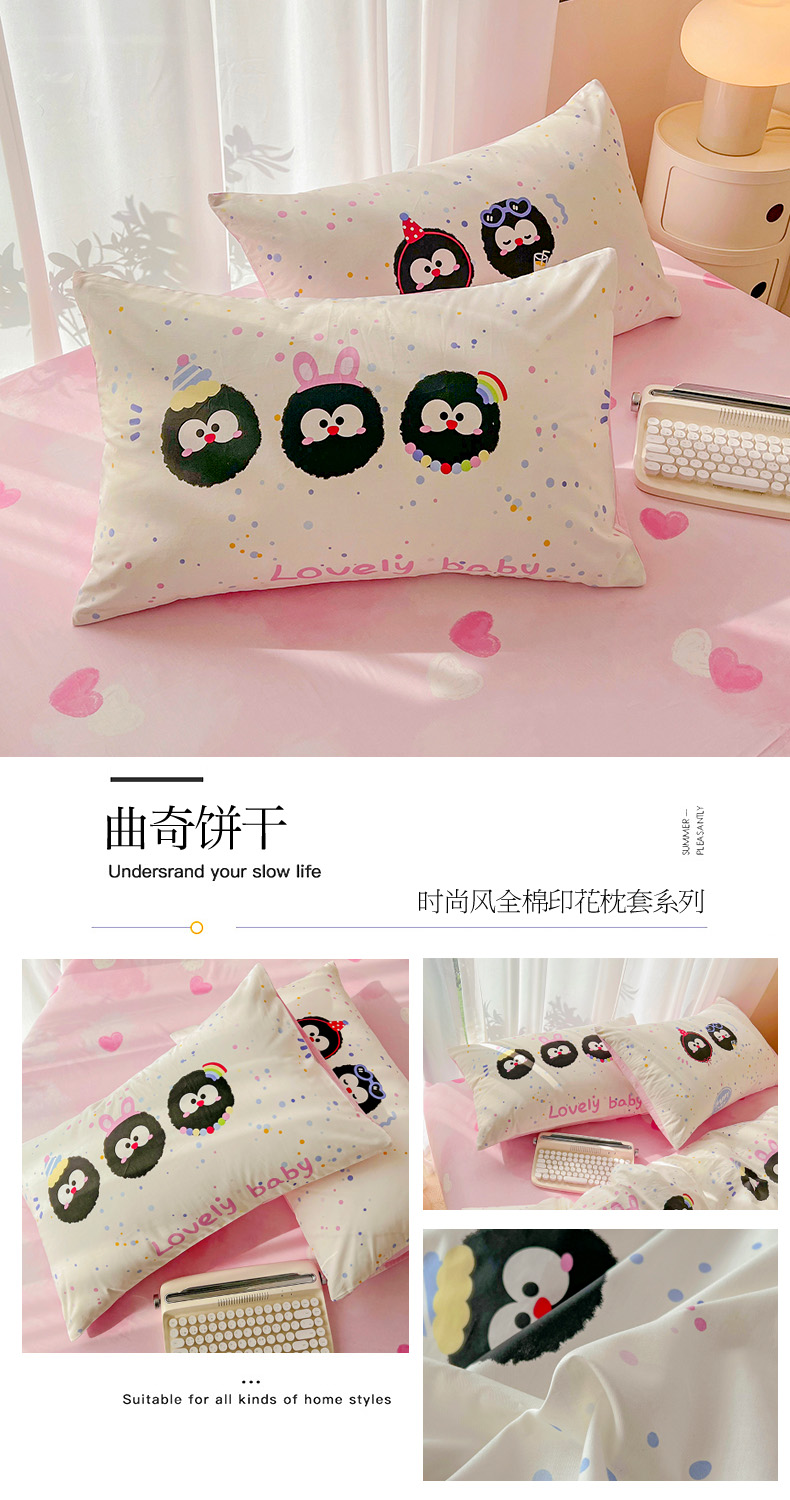 商品名称:倾慕家纺 2024新款时尚风全棉13070亲肤印花系列单枕套 曲奇饼干