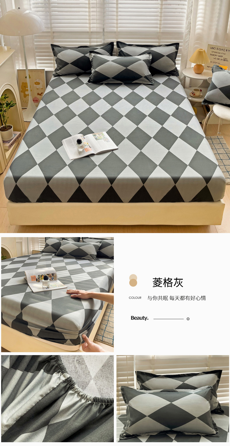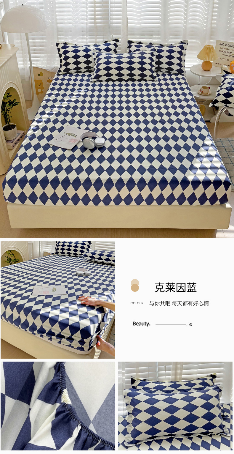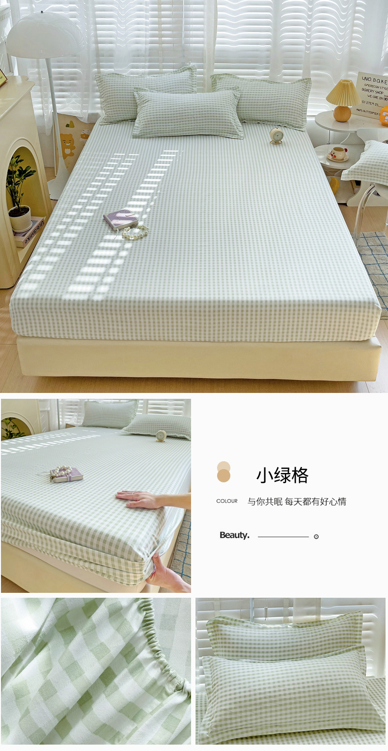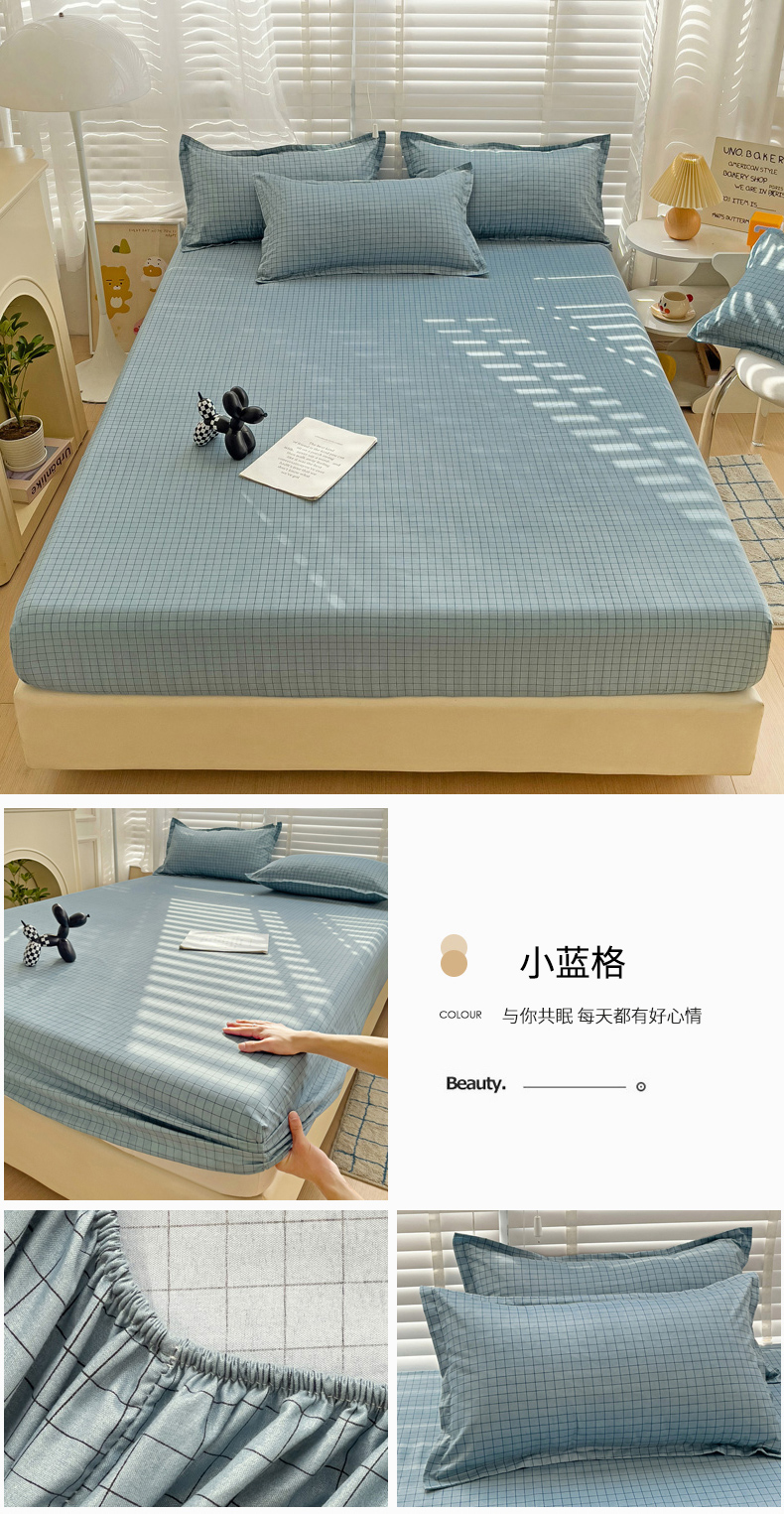 (总)楠沐家纺 2026新款无印风单层床笠床垫保护套,布丁格蓝,粉色波点,海蓝大格,蓝大格,勒夫,洛可可灰,炫彩蓝格
