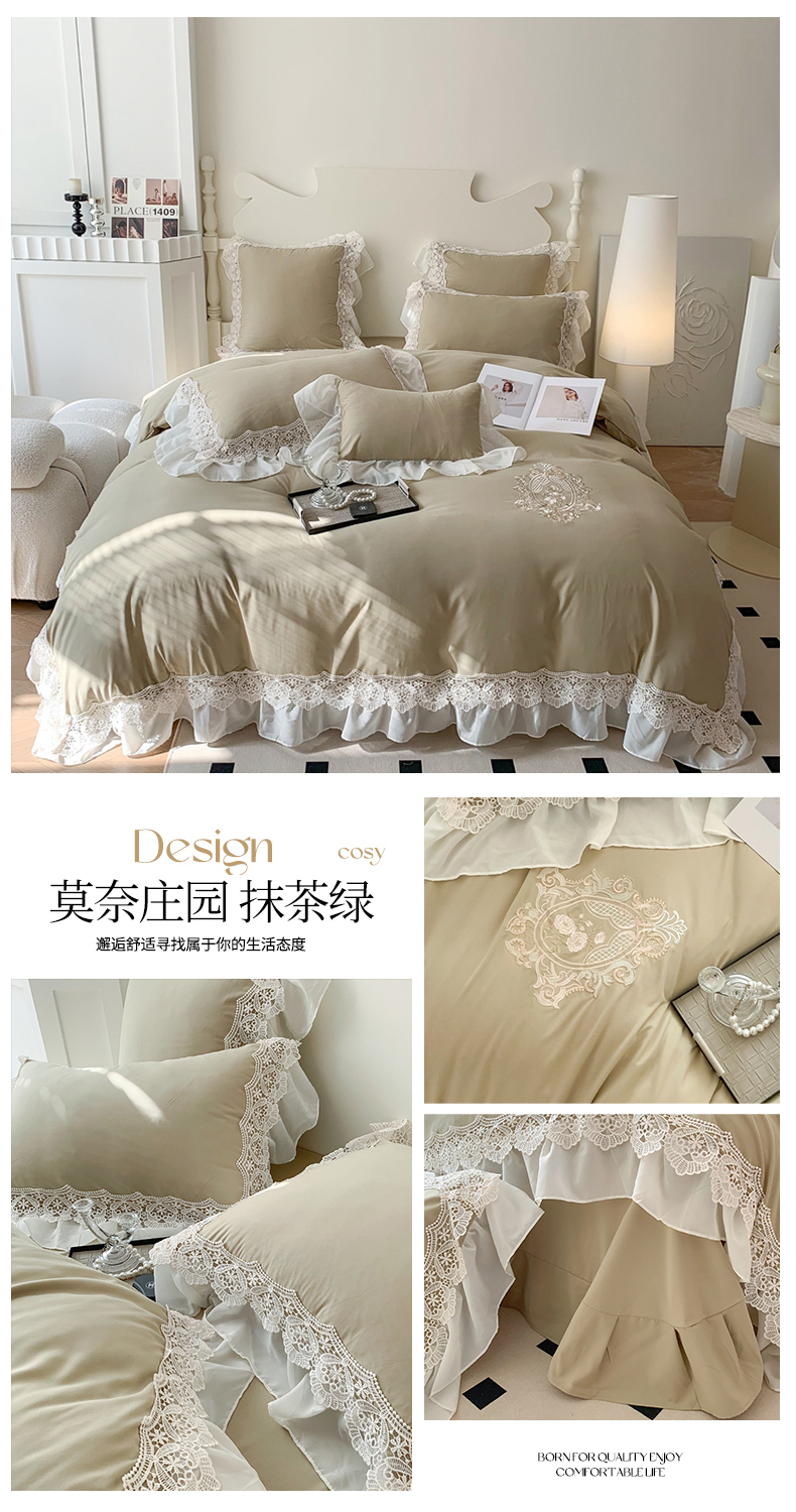 商品名称:吾欢心 2025新款莫奈庄园高端蕾丝刺绣四件套 莫奈花园 抹茶绿