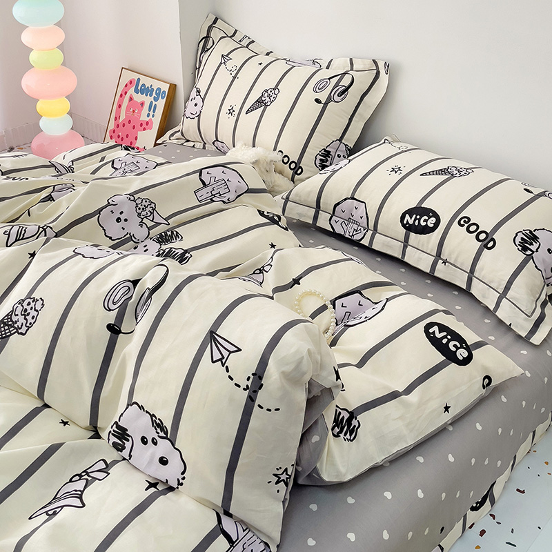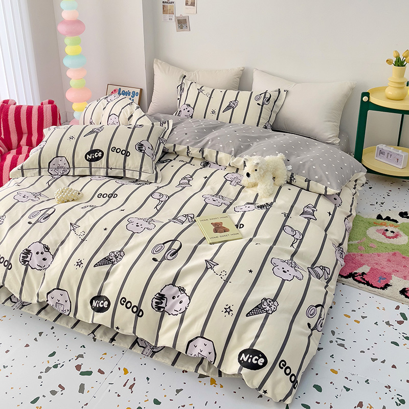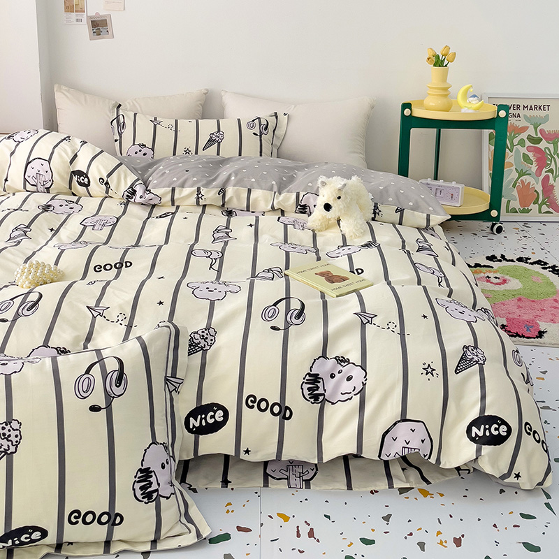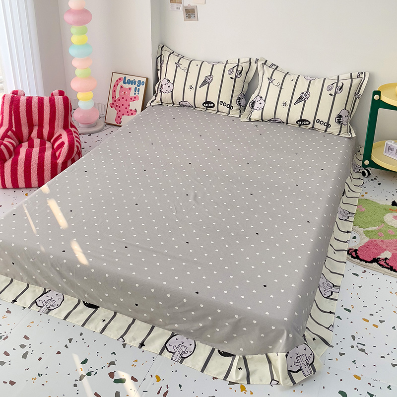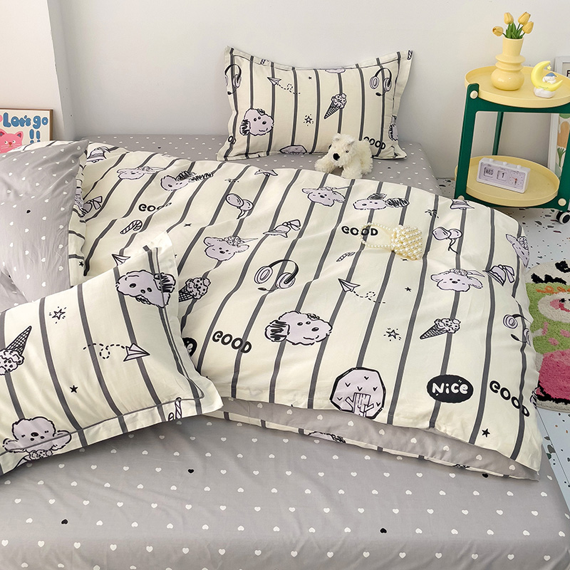 乐童 2024新款直播爆款13070纯棉印花吊边款一字绣四件套 动感地带