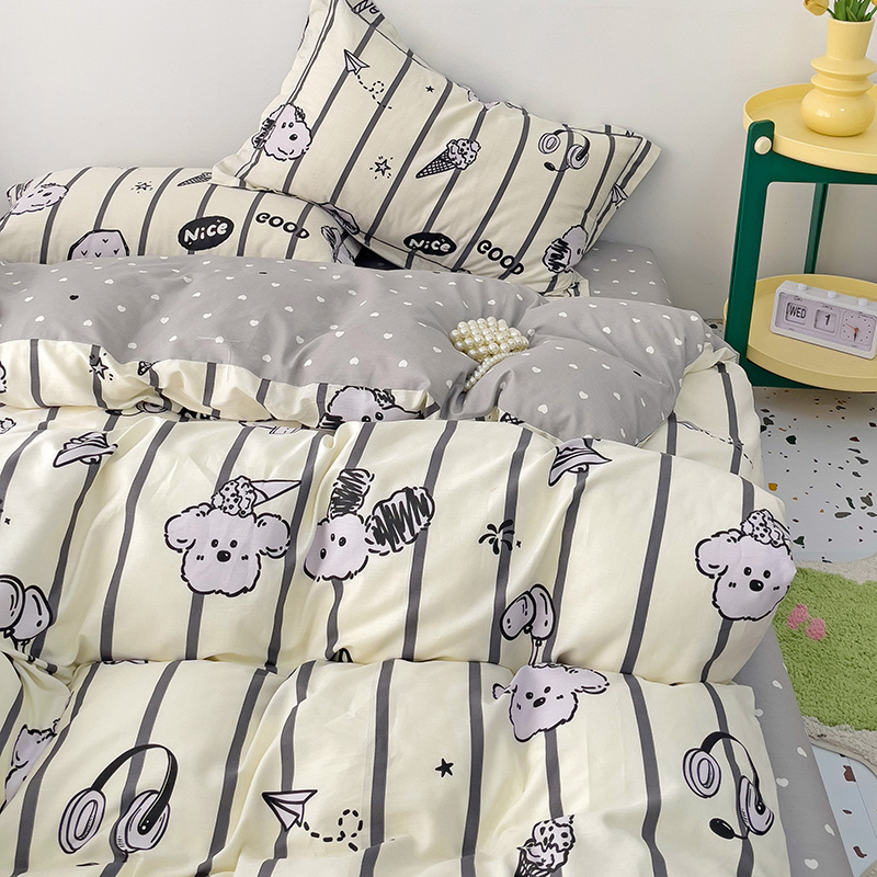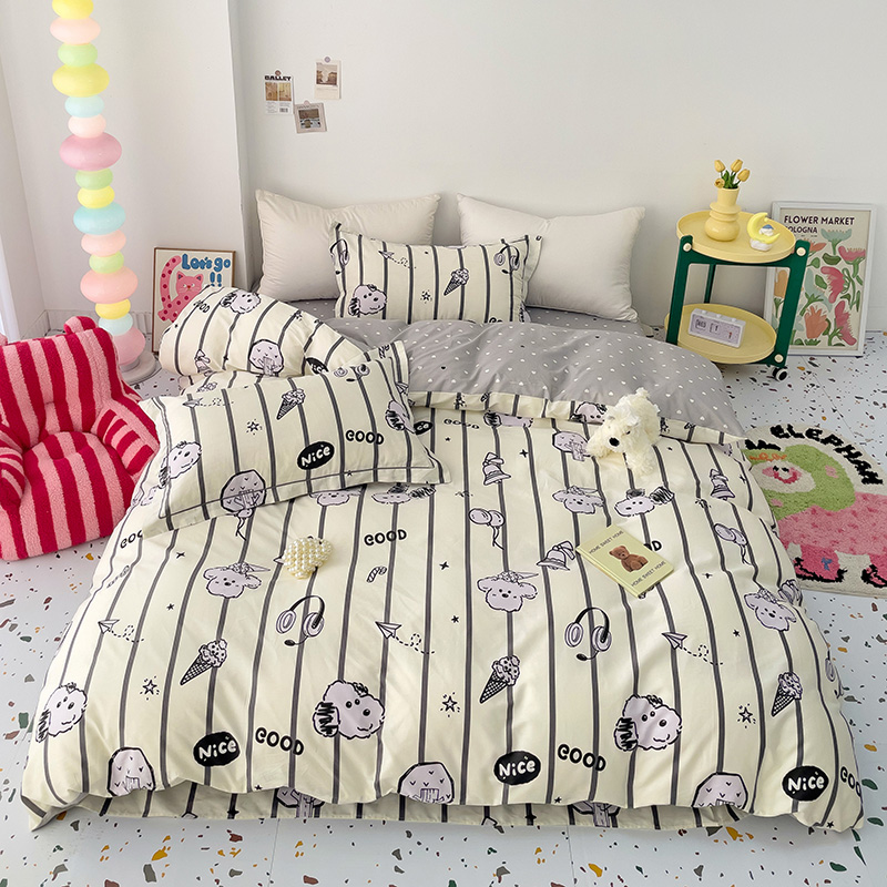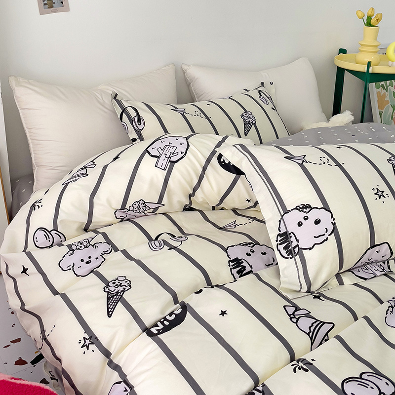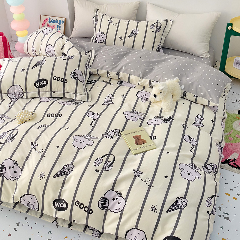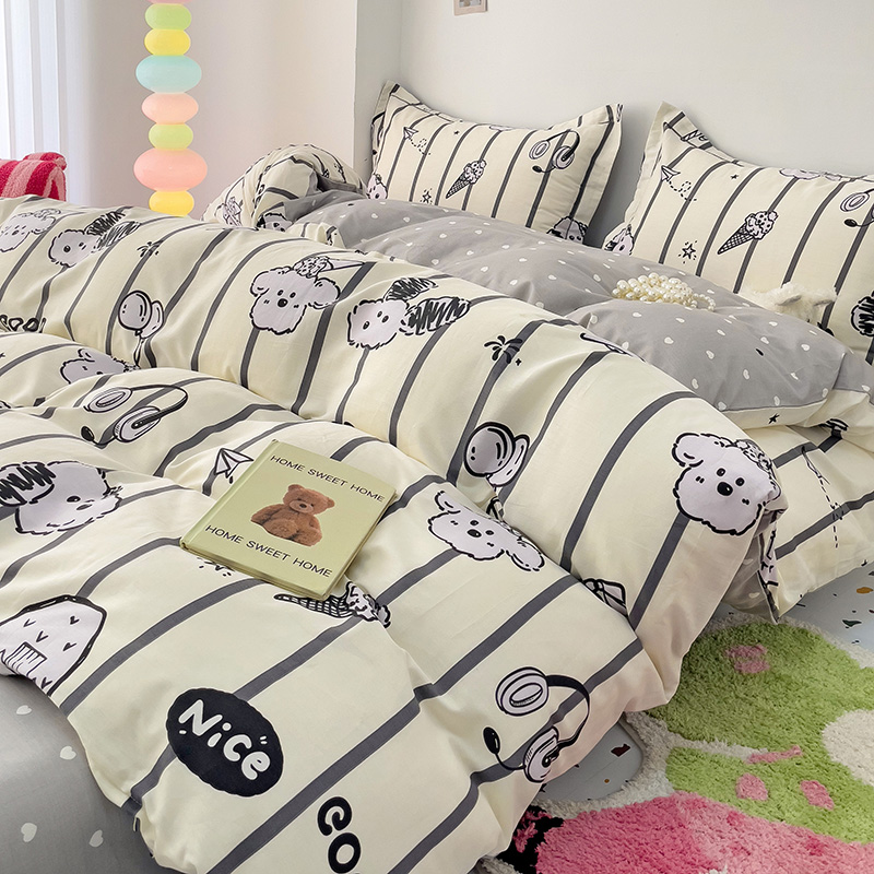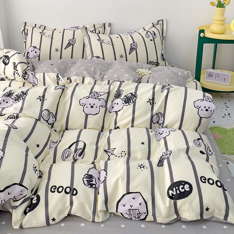 乐童 2024新款直播爆款13070纯棉印花吊边款一字绣四件套 动感地带