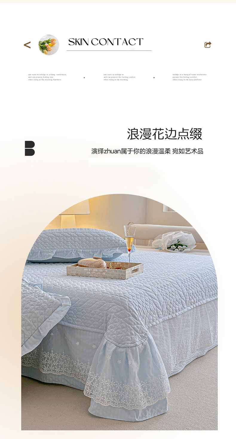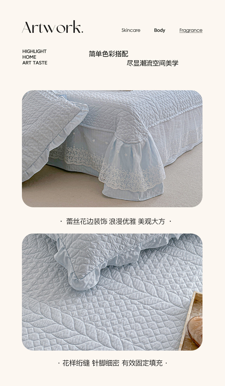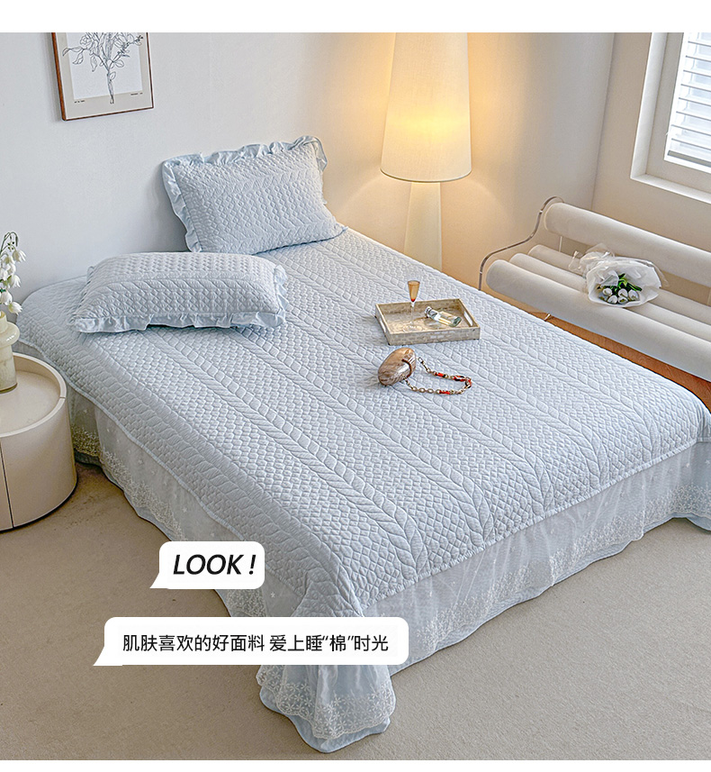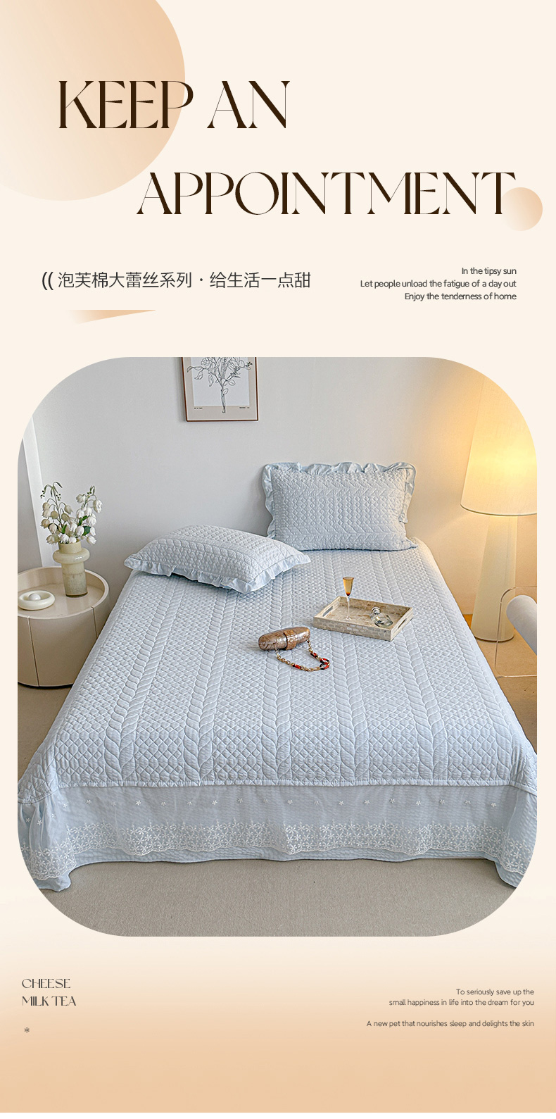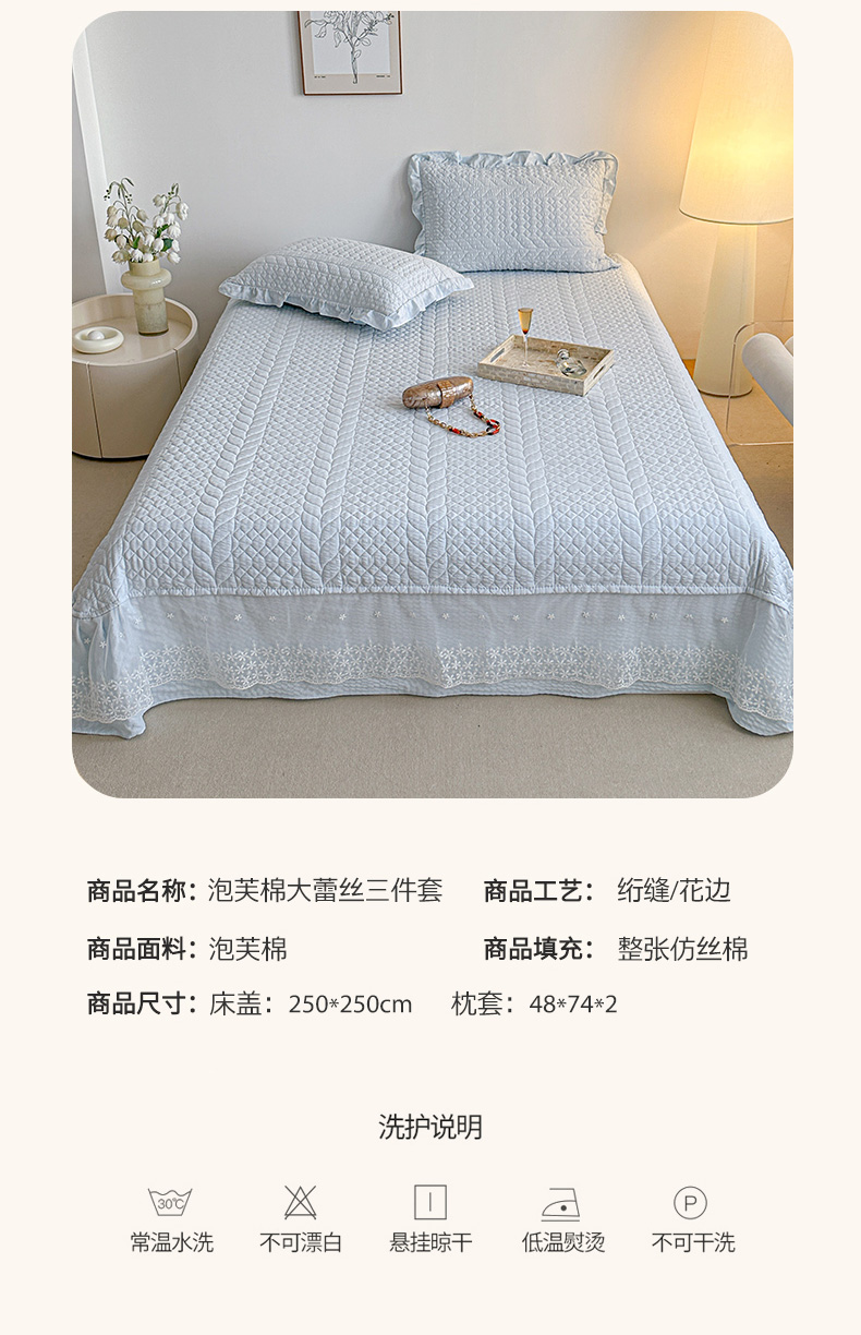 商品名称:源舜家纺 2025新款泡芙棉大蕾丝床盖款三件套 花边蓝色