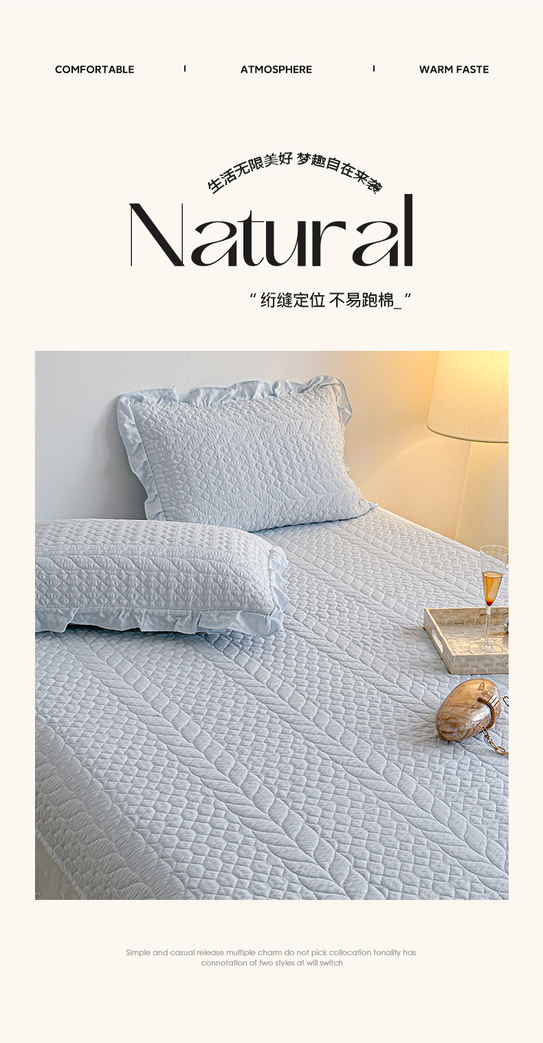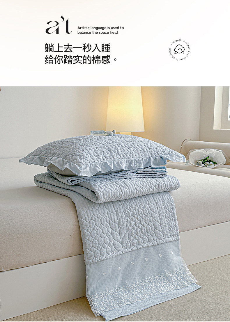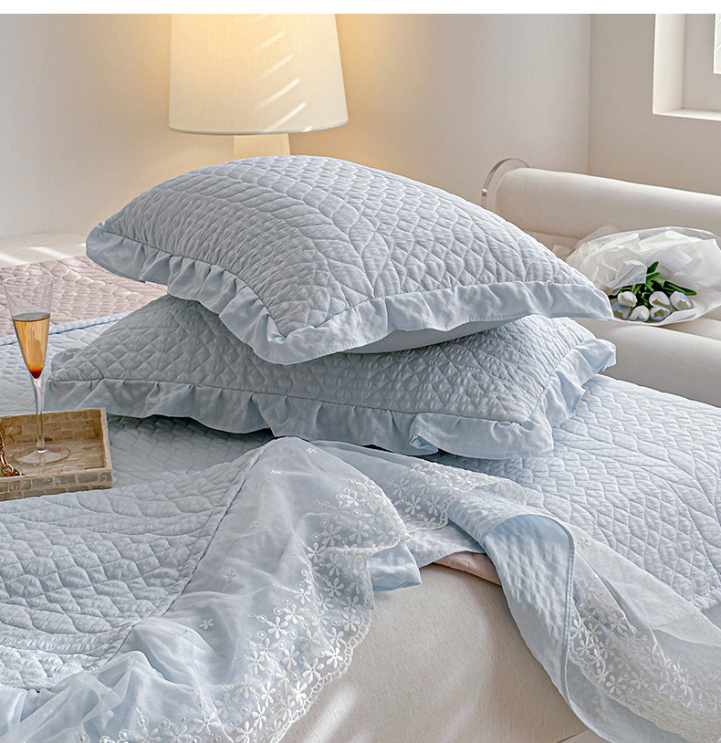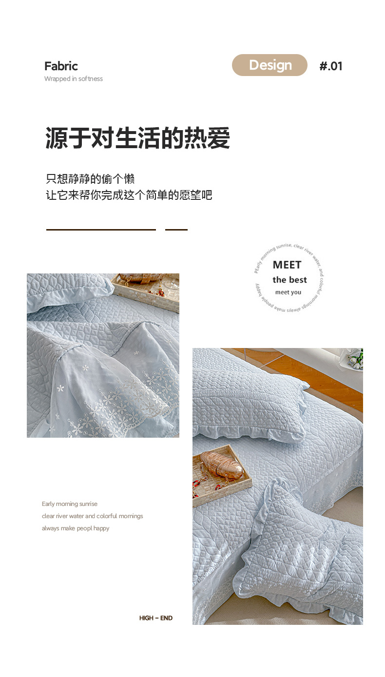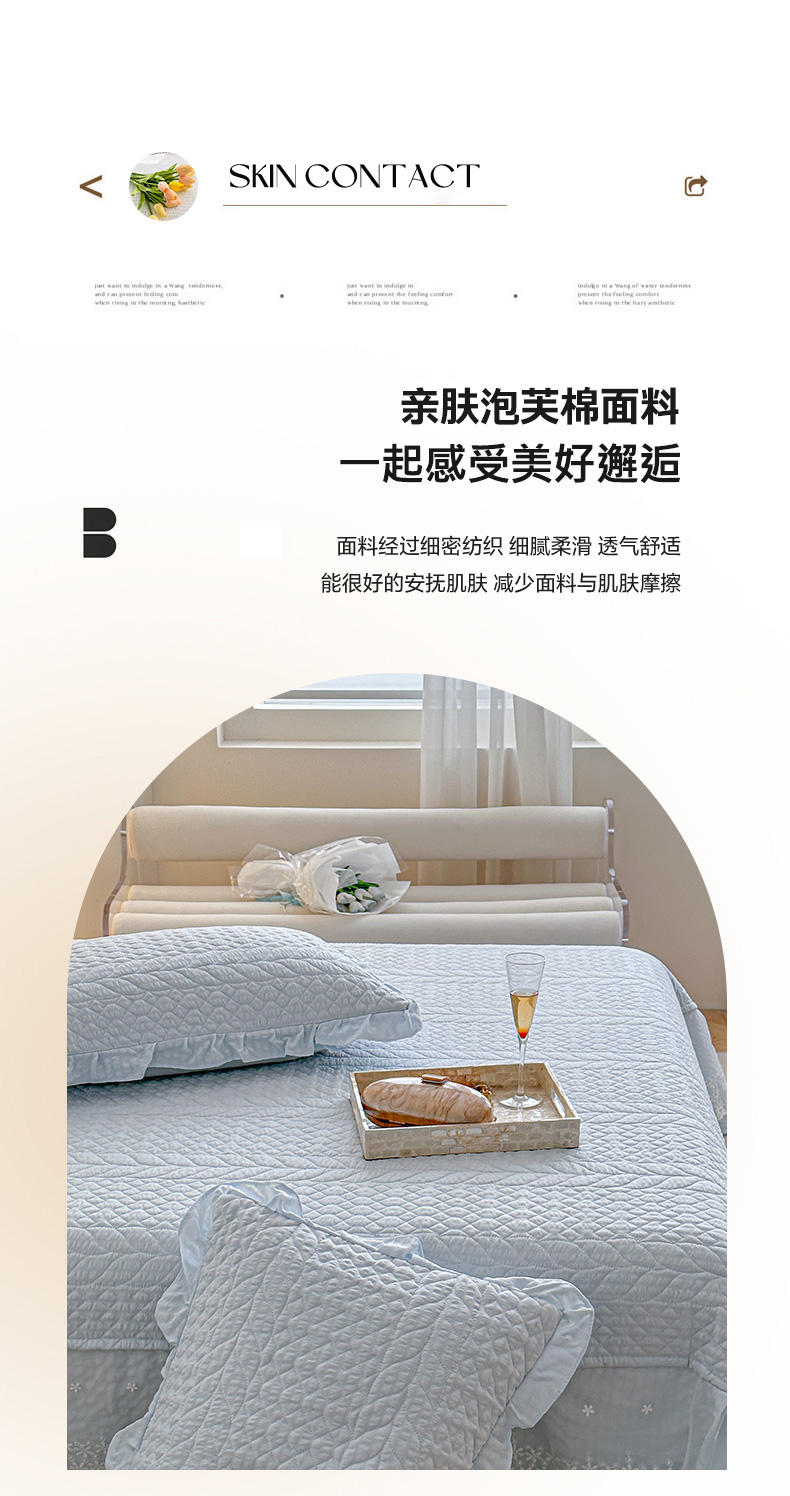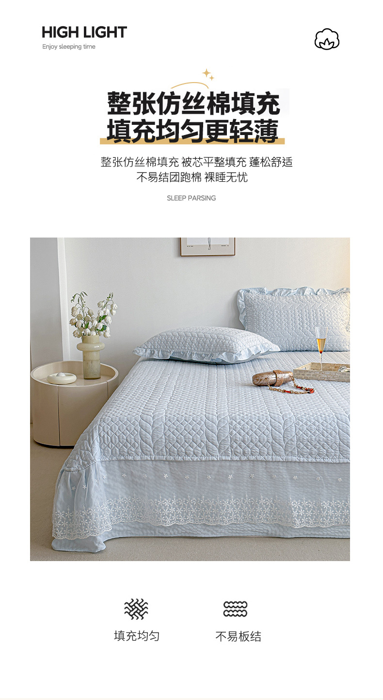 商品名称:源舜家纺 2025新款泡芙棉大蕾丝床盖款三件套 花边蓝色