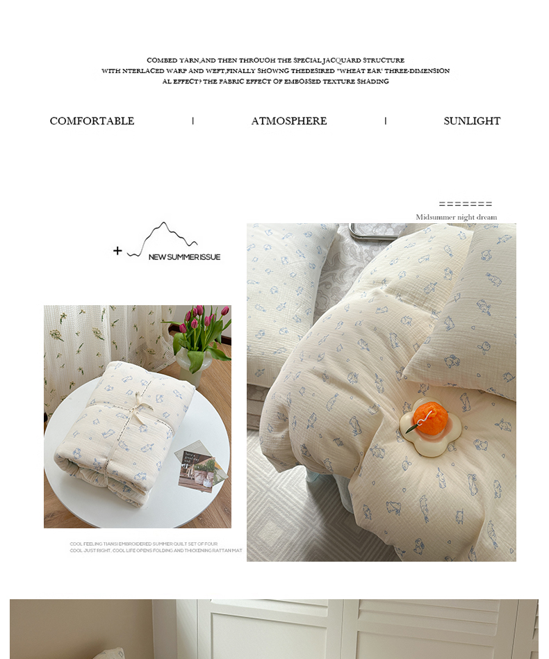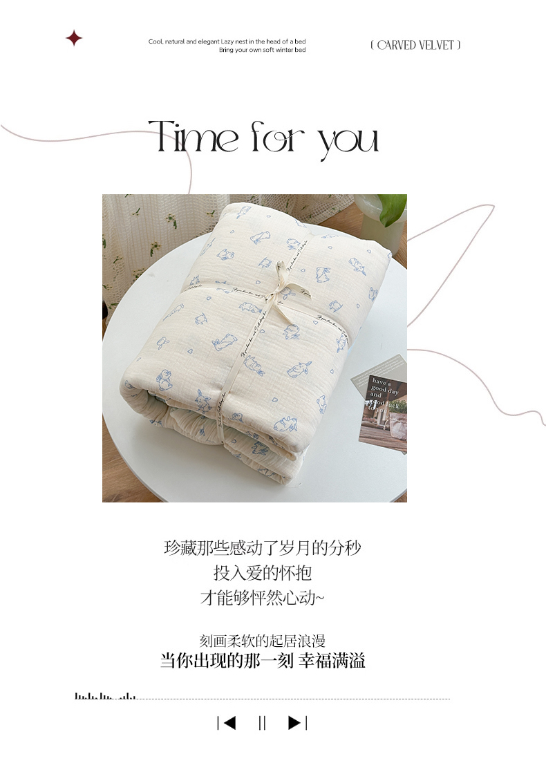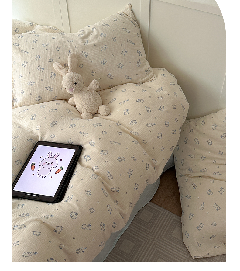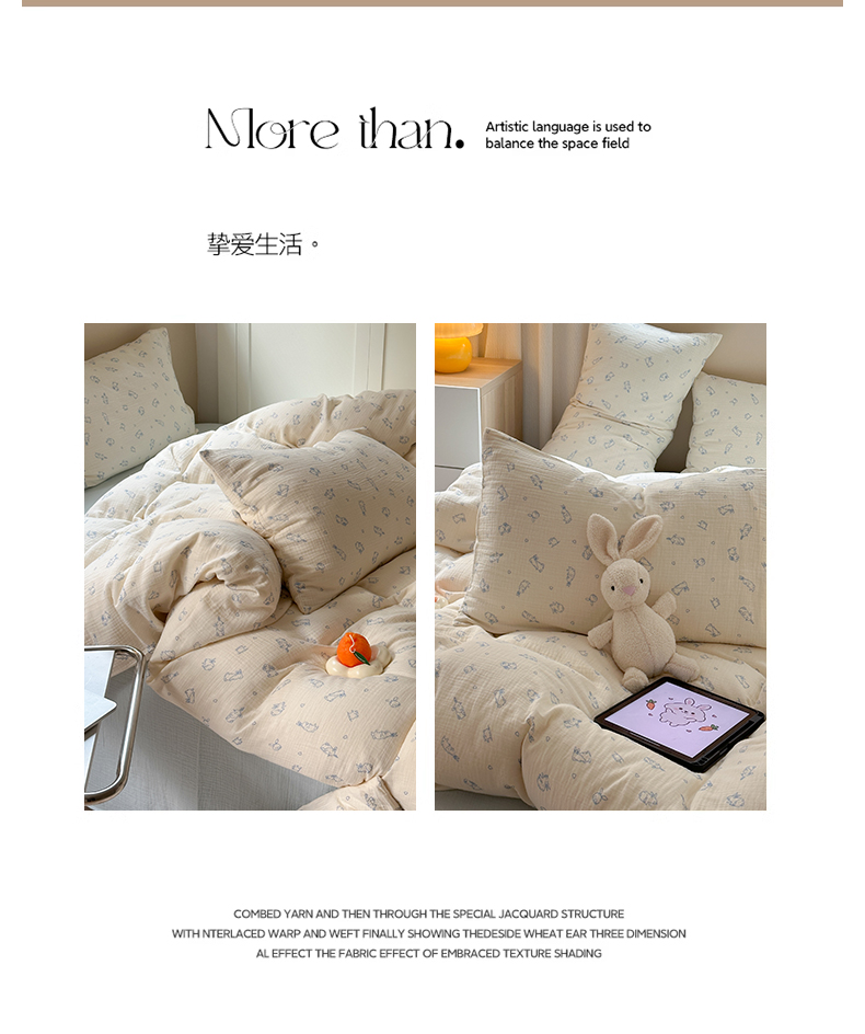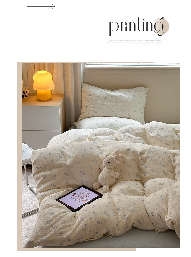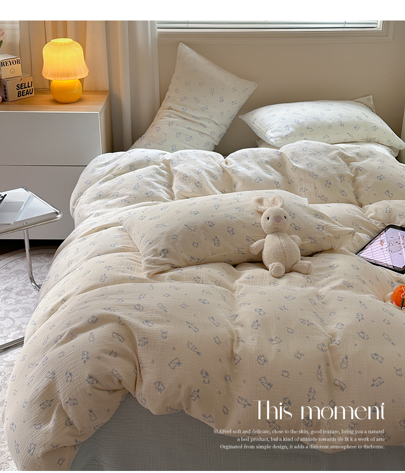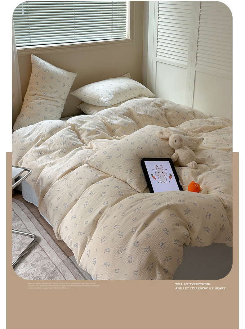 萝莉家纺 2025新款全棉双层皱皱纱四件套 玉兔