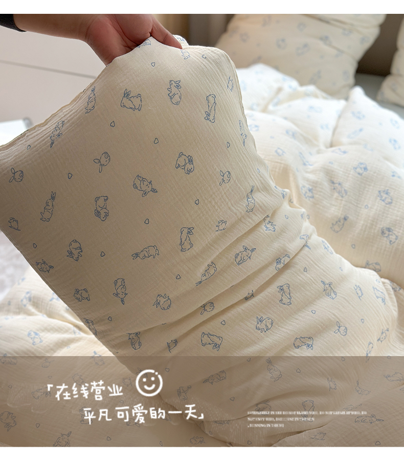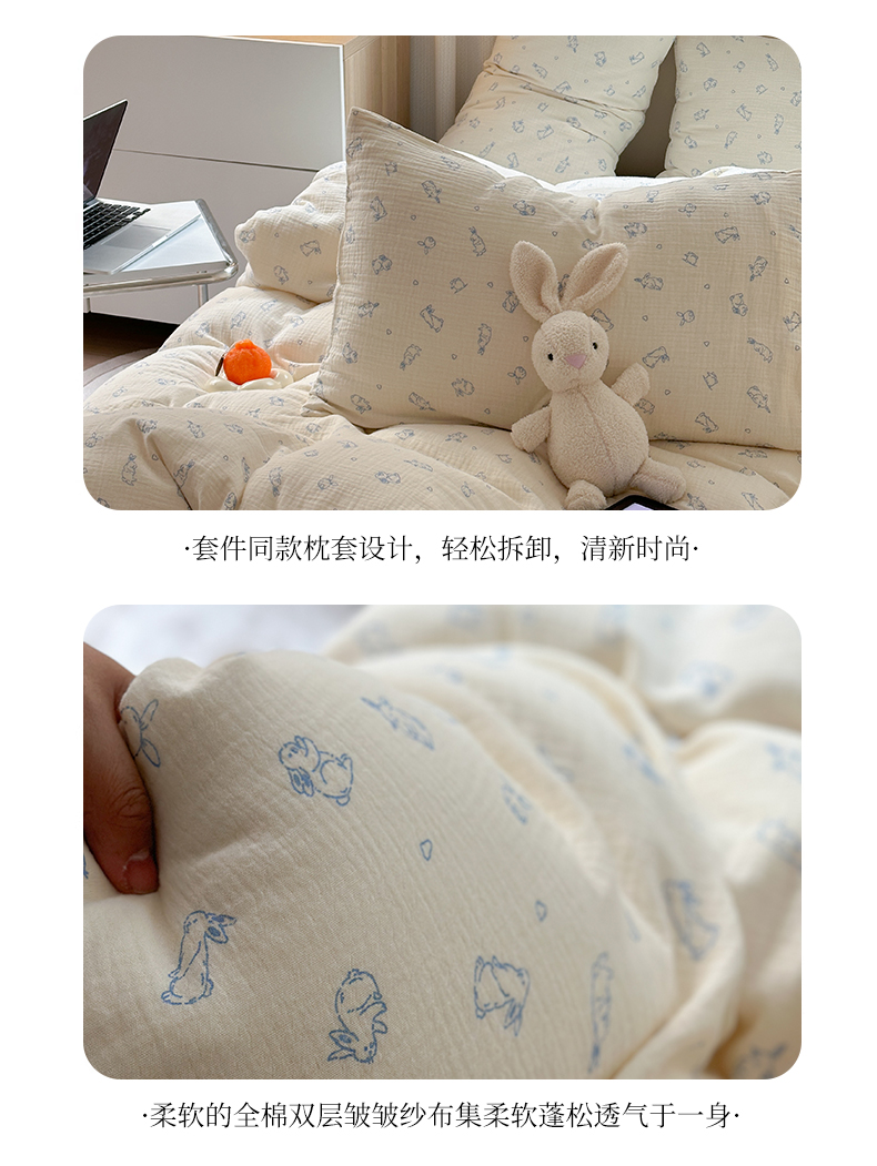 商品名称:萝莉家纺 2025新款全棉双层皱皱纱四件套 玉兔