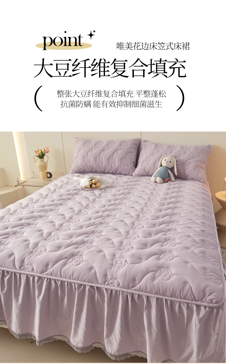 商品名称:3C 2024新款玫瑰水洗棉床裙式床笠 优雅紫