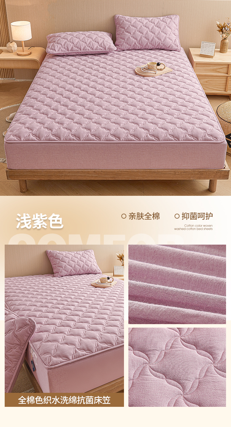 3C 2024新款全棉水洗棉棉花床笠 优雅紫,优雅紫