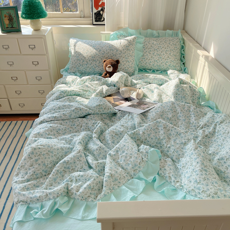商品名称:顾里家纺 2024新款韩系治愈小清新花边氧气泡泡棉夏被四件套 蓝海之恋